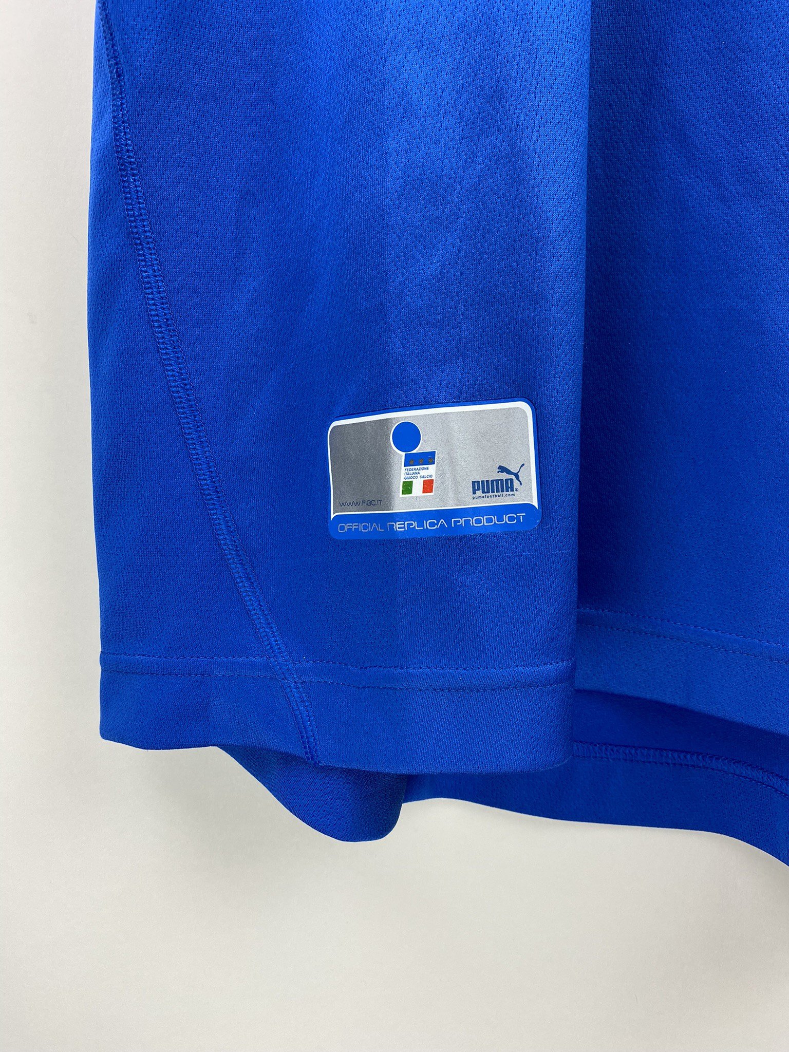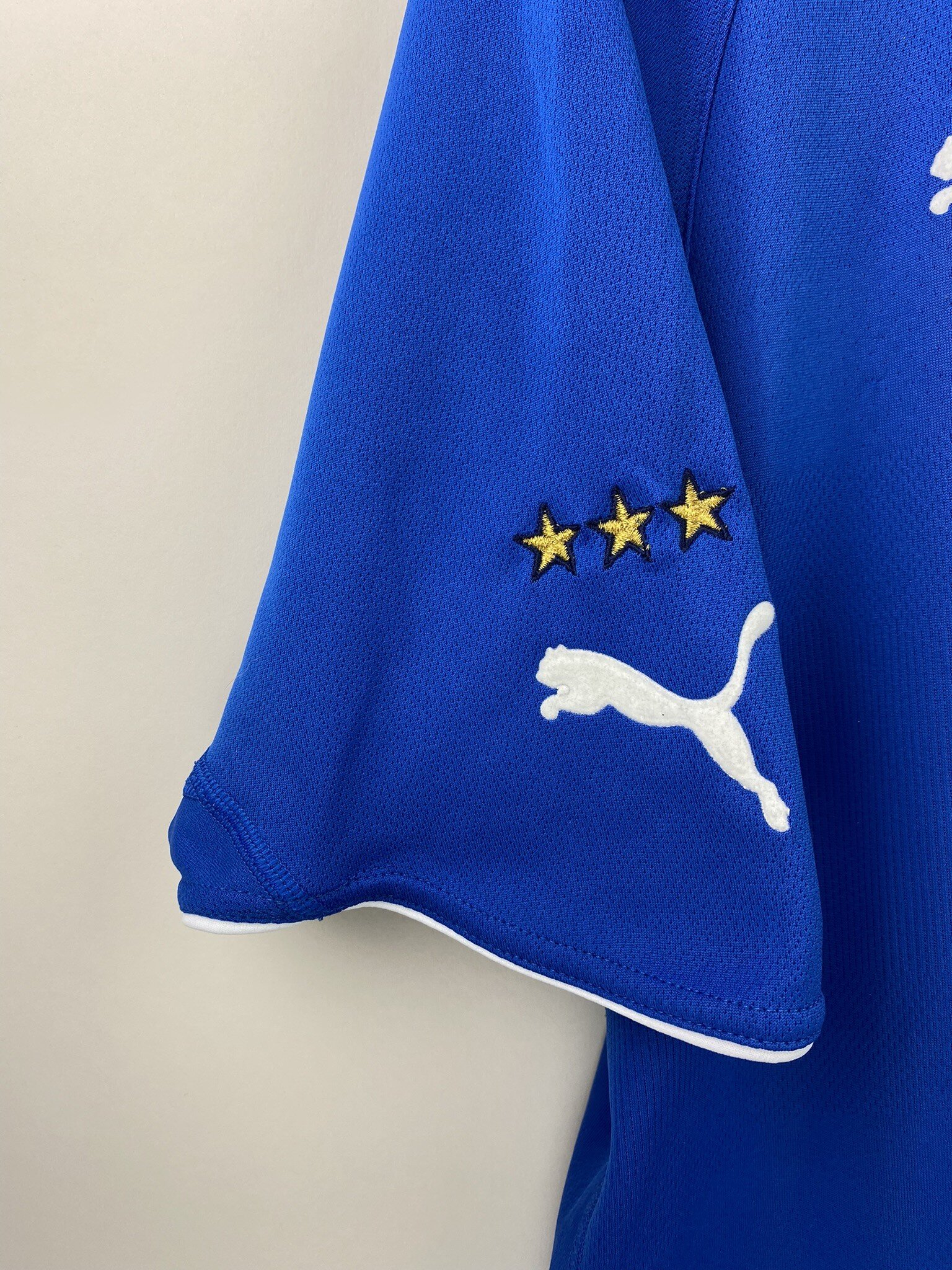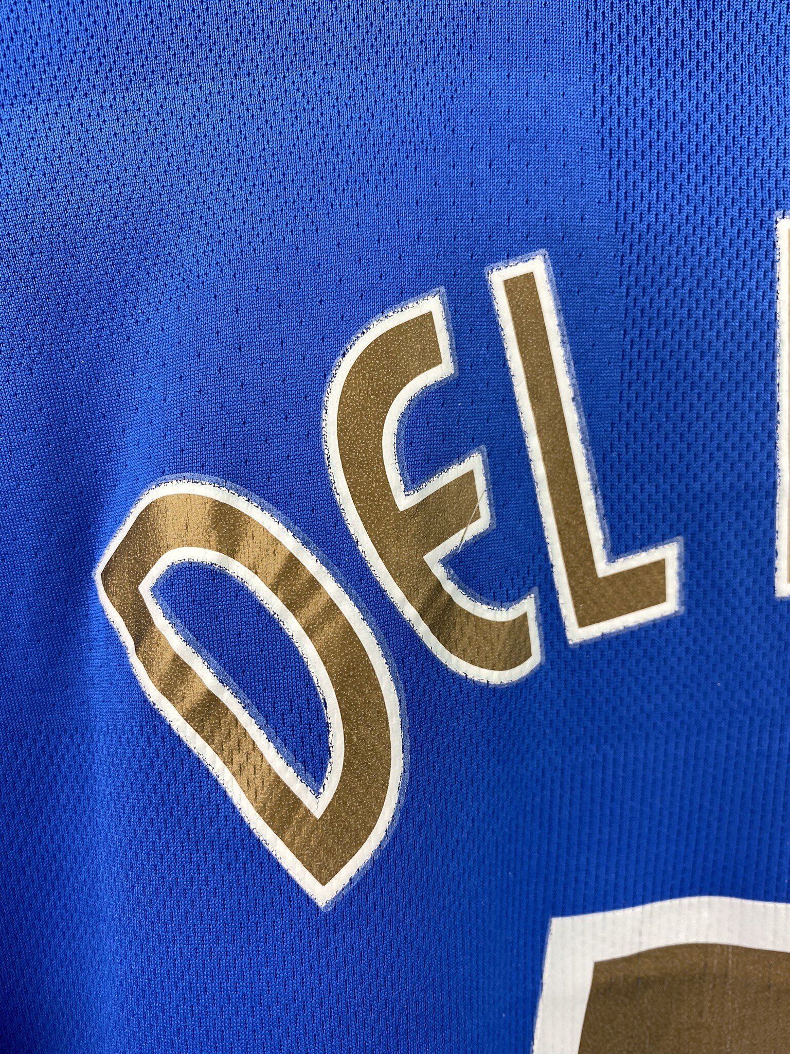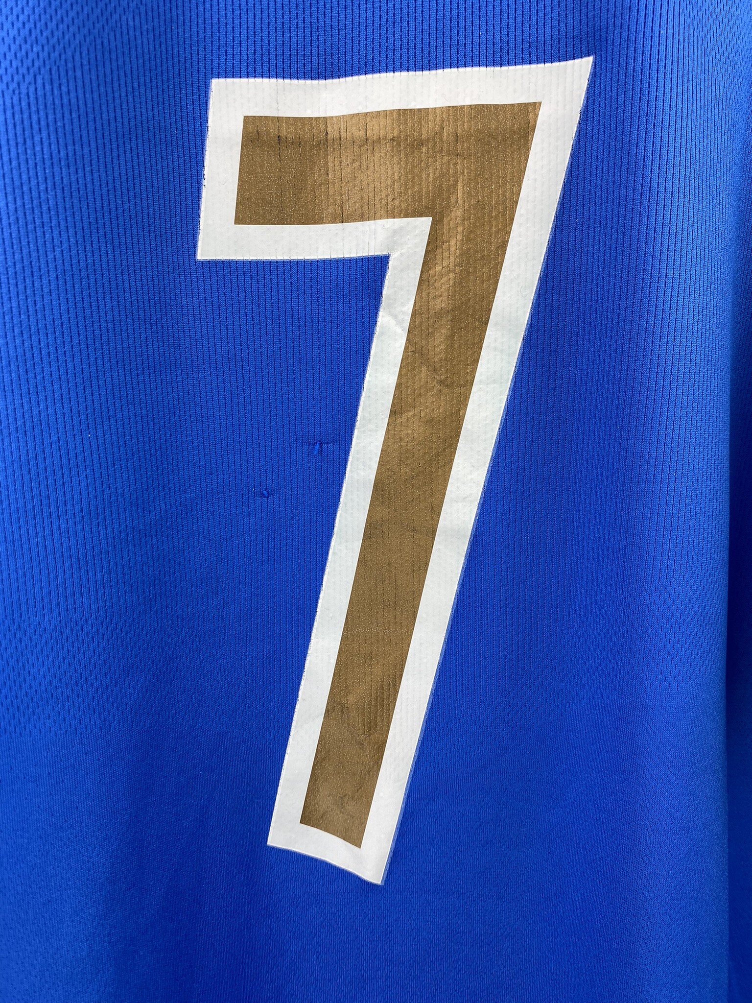 Stan: Zadowalający – koszulka posiada delikatne rozcięcie materiału na karku, mikro zabrudzenia, dwa niewielkie zaciągnięcia przy numerze oraz delikatnie uszkodzoną jedną literkę w nazwisku.