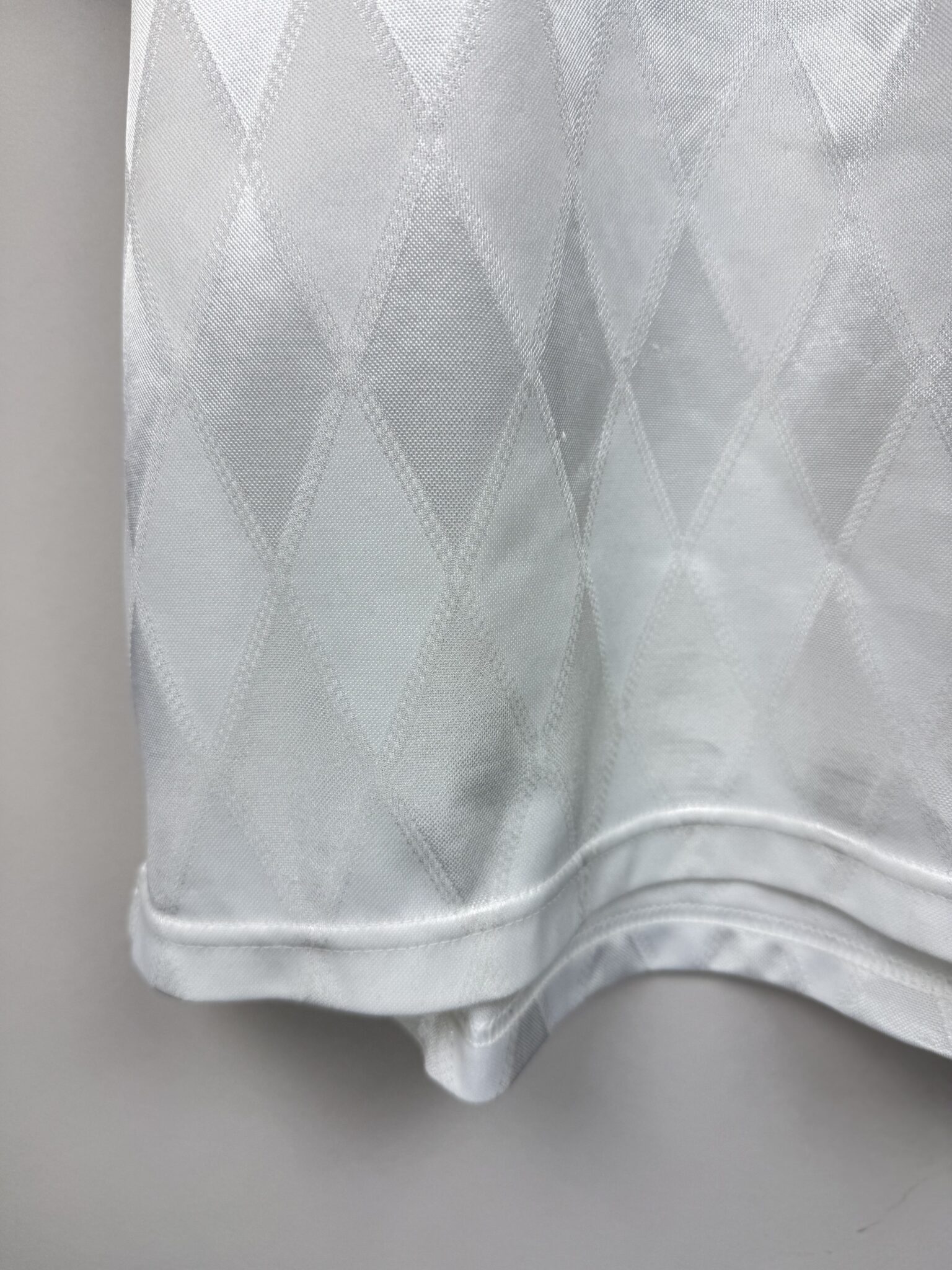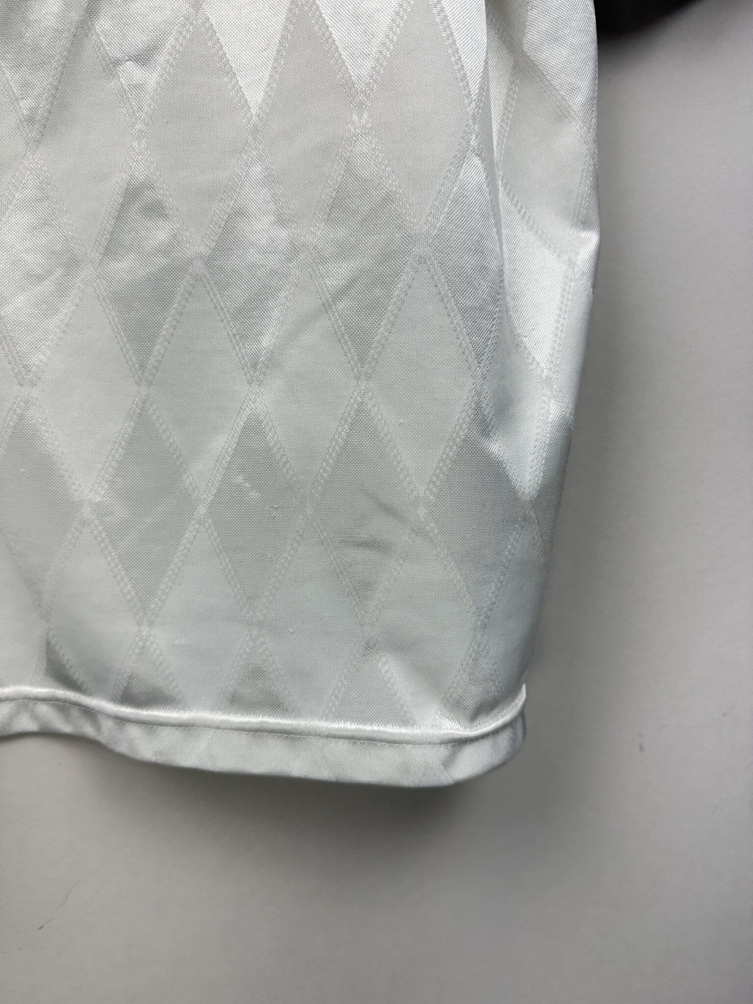 Model wykonany jest z solidnego, lekko błyszczącego, grubego charakterystycznego dla projektów Adidasa z połowy lat 90 materiału, z klasycznym kołnierzykiem i kultowymi trzema paskami na rękawach. To oryginalna koszulka piłkarska Bayernu Monachium, która łączy w sobie historię i wyjątkowy design – obowiązkowy element dla każdego kolekcjonera i fana retro futbolu, szczególnie tych, którzy cenią wkład Klinsmanna w sukcesy bawarskiego klubu.