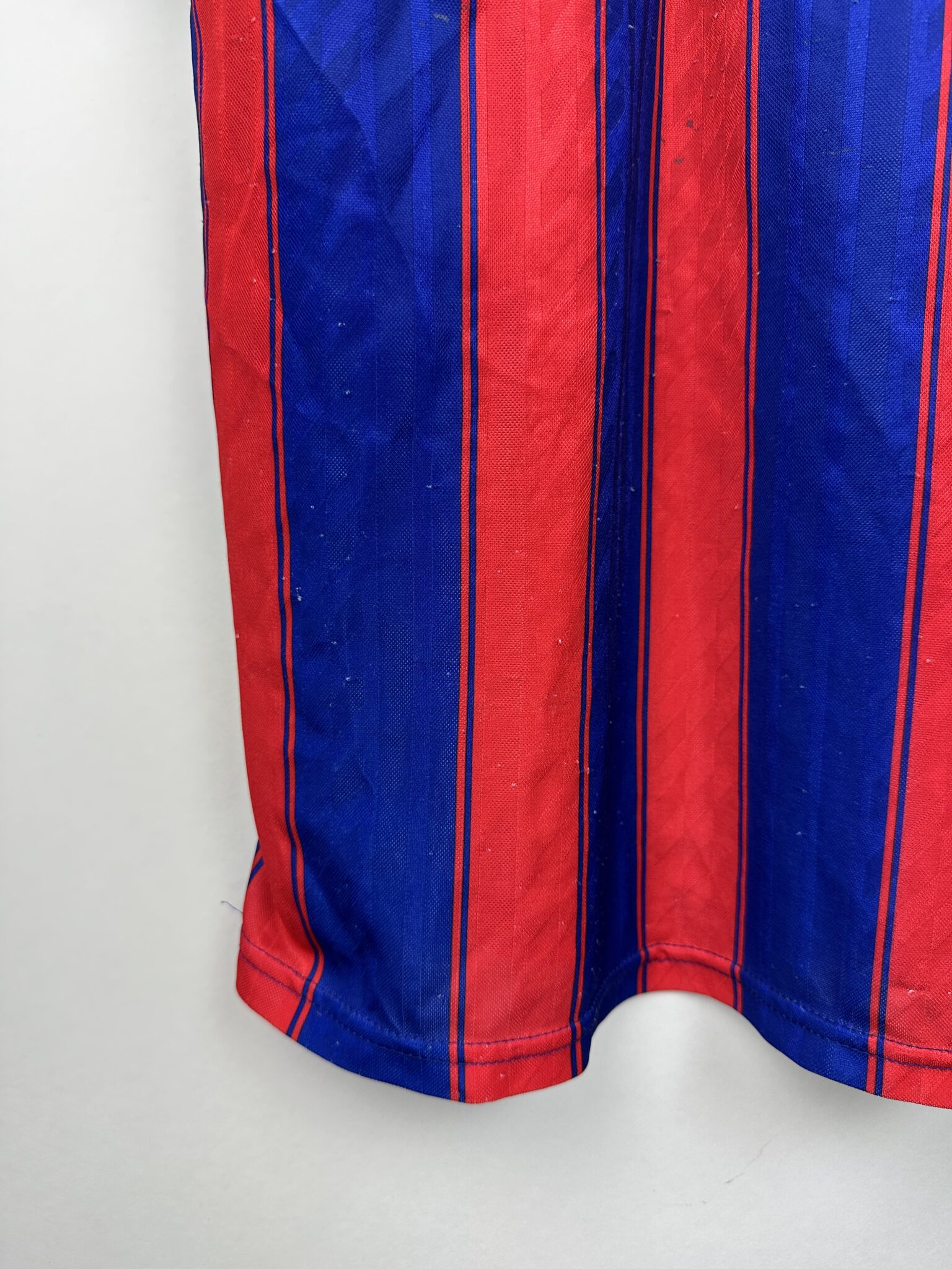 Stan: Zadowalający – kilka mikro zabrudzeń na froncie oraz bardzo duża ilość mikro zaciągnięć, zarówno z przodu jak i z tyłu koszulki.