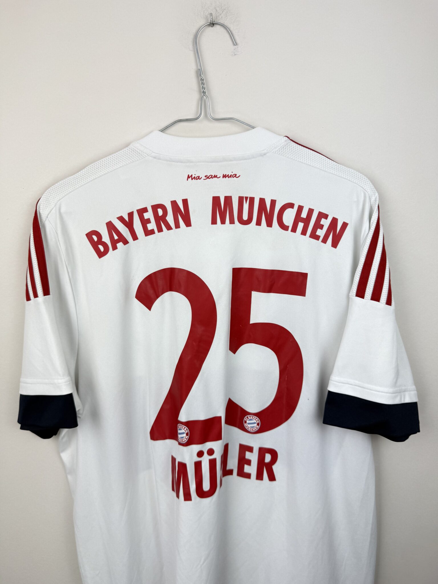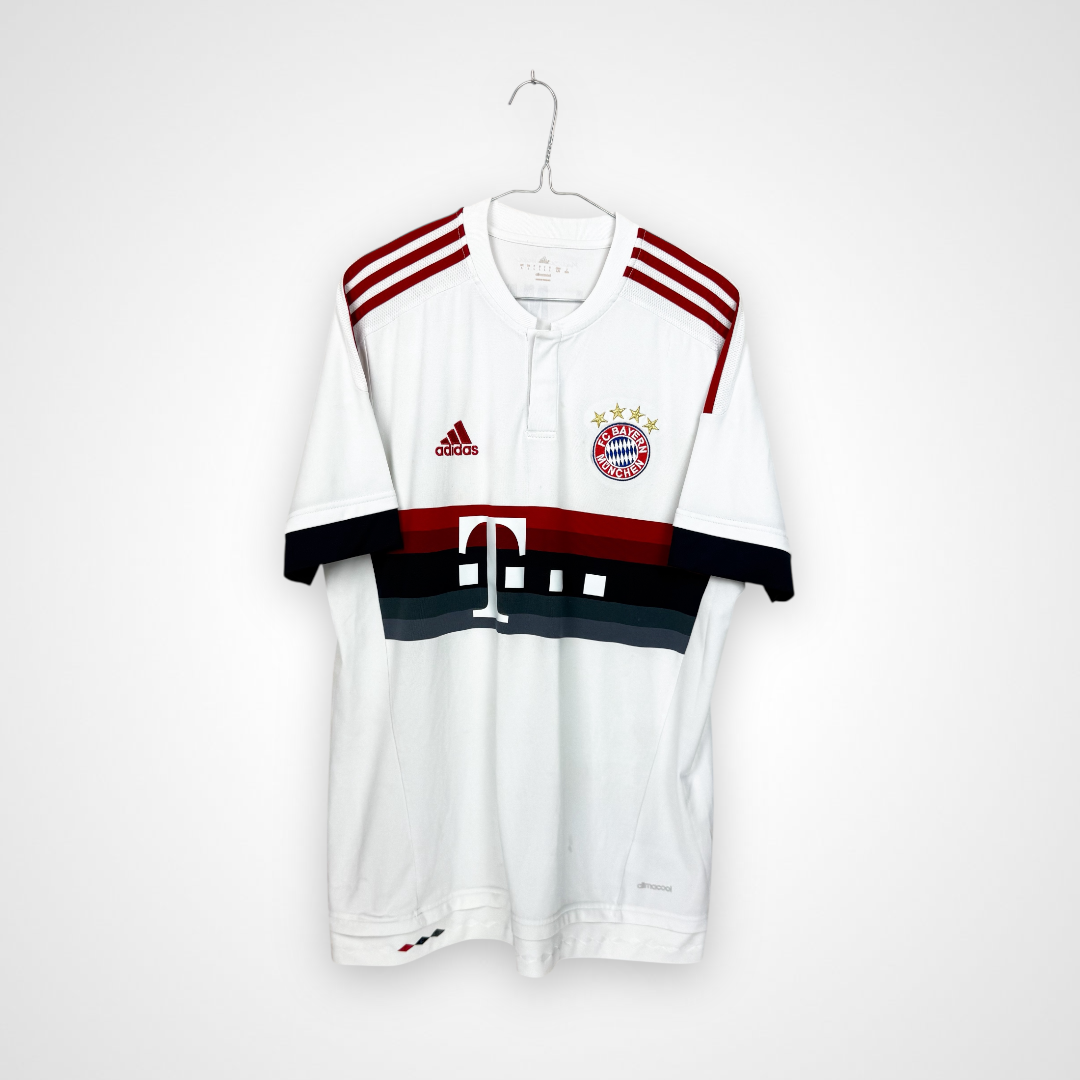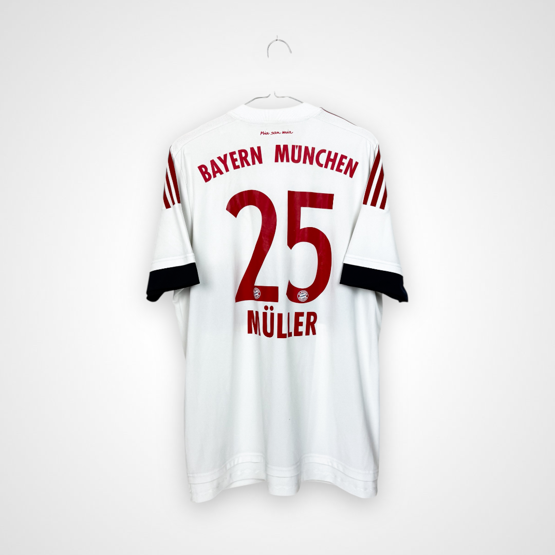 Oryginalna wyjazdowa koszulka piłkarska Bayernu Monachium – Adidas 2015/16 z nadrukiem Thomasa Müllera.