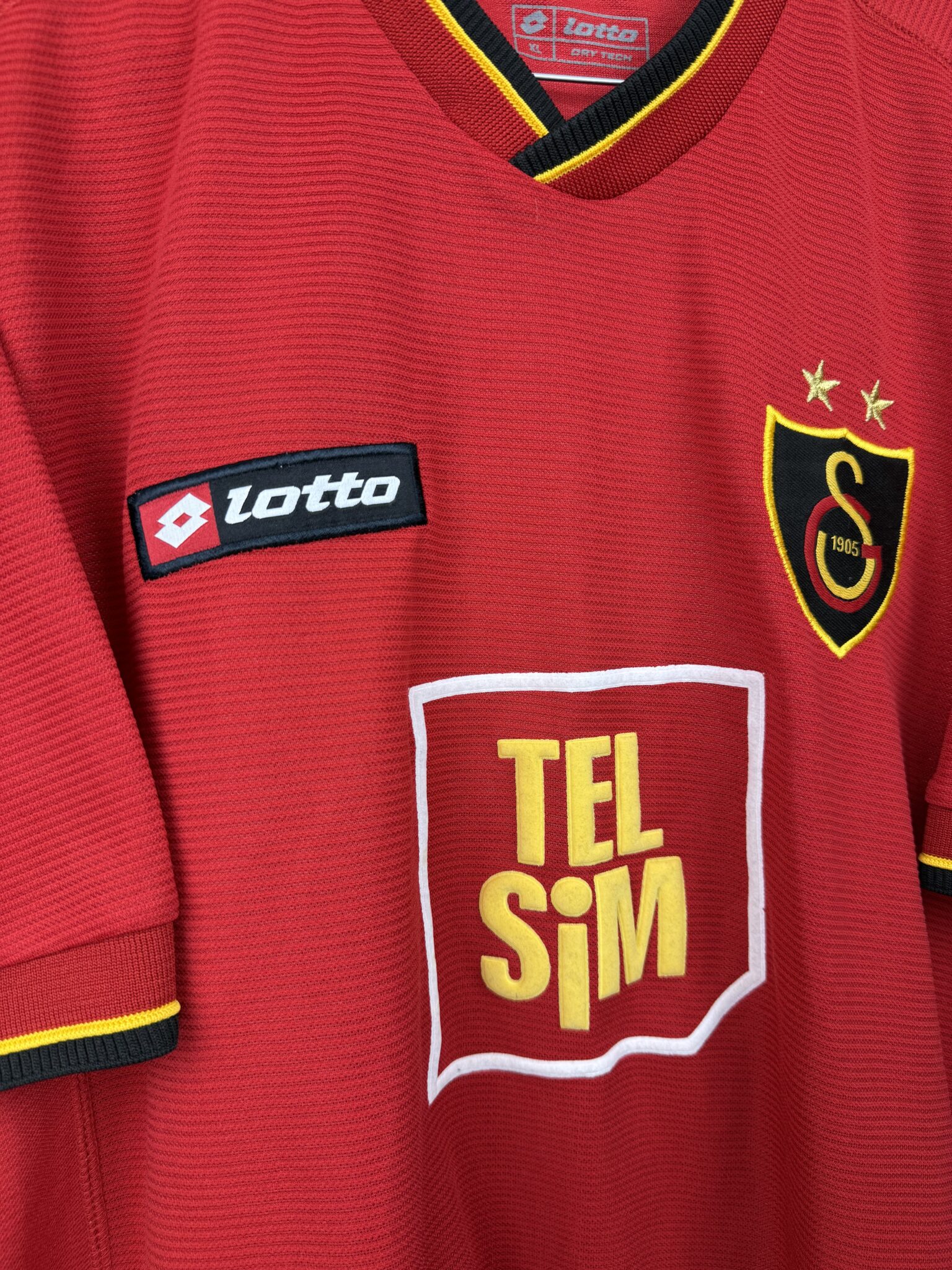 Na piersi widnieje pięknie haftowany herb Galatasaray, a obok niego logo Lotto – producenta, który słynął z tworzenia koszulek o wysokiej jakości, z charakterystycznym włoskim stylem. Materiał zastosowany w tym modelu był przewiewny, lekki i przyjemny w dotyku, co zapewniało komfort zarówno na boisku, jak i podczas codziennego noszenia.