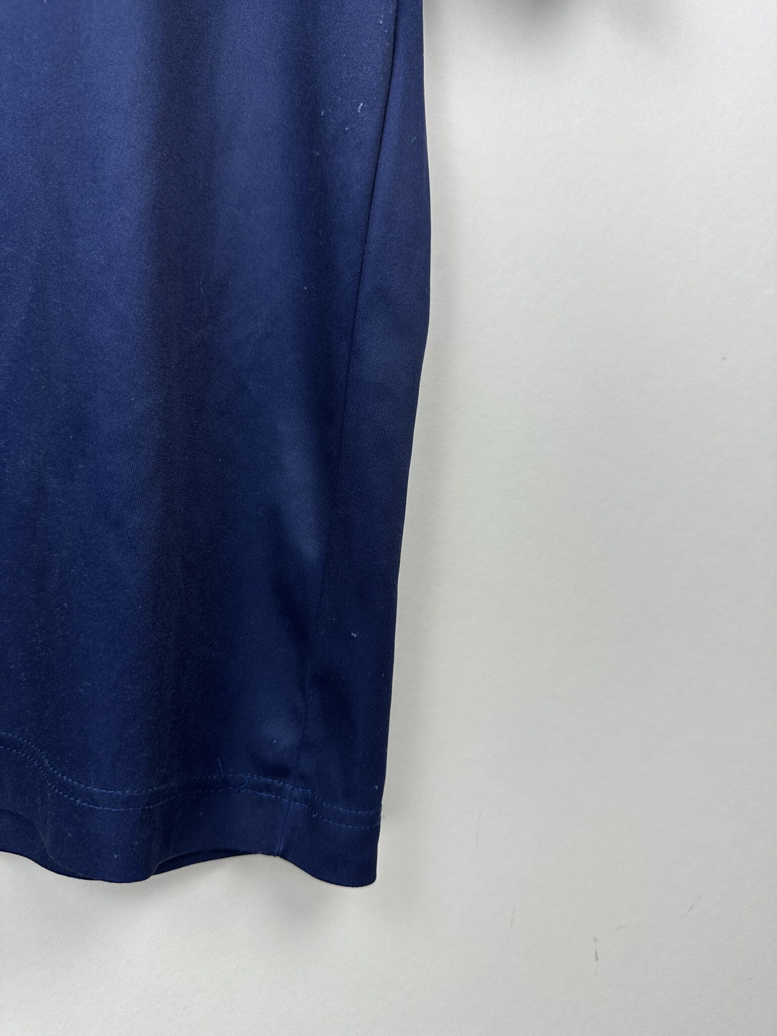 Stan: Słaby – gdzieniegdzie występujące zaciągnięcia oraz urwany szew u dołu koszulki.