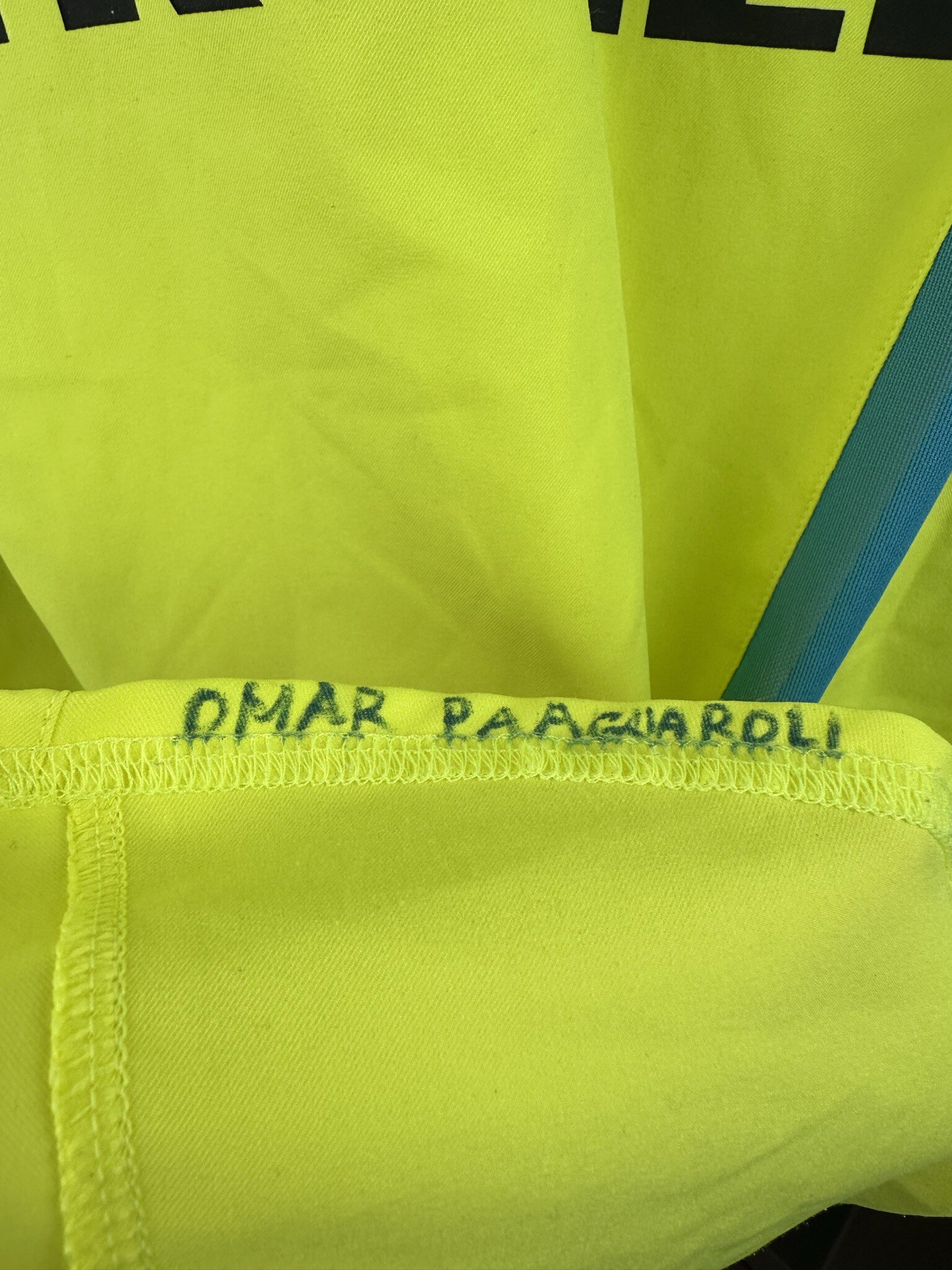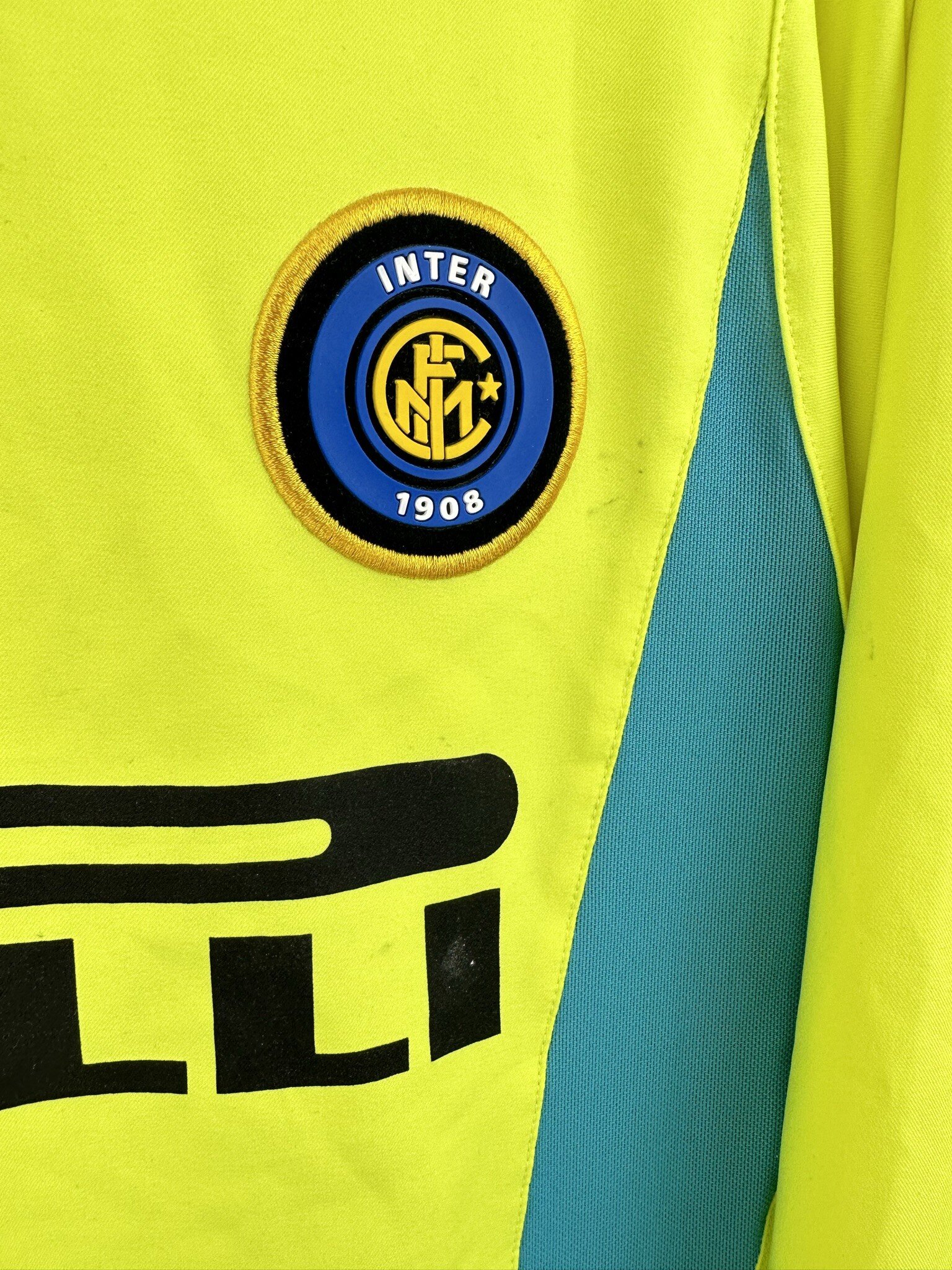 Dodatkowe informacje: Koszulka używana przez drużynę młodzików Interu, ta należała do Omara Paagliaroliego, o czym świadczą zapisane markerem jego imię i nazwisko na wewnętrznej stronie koszulki.
