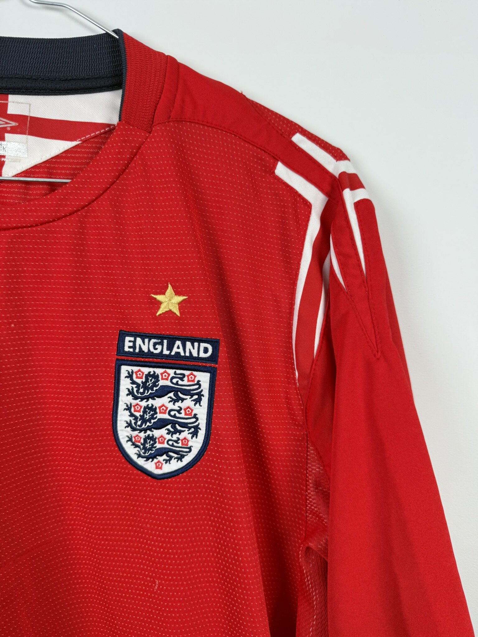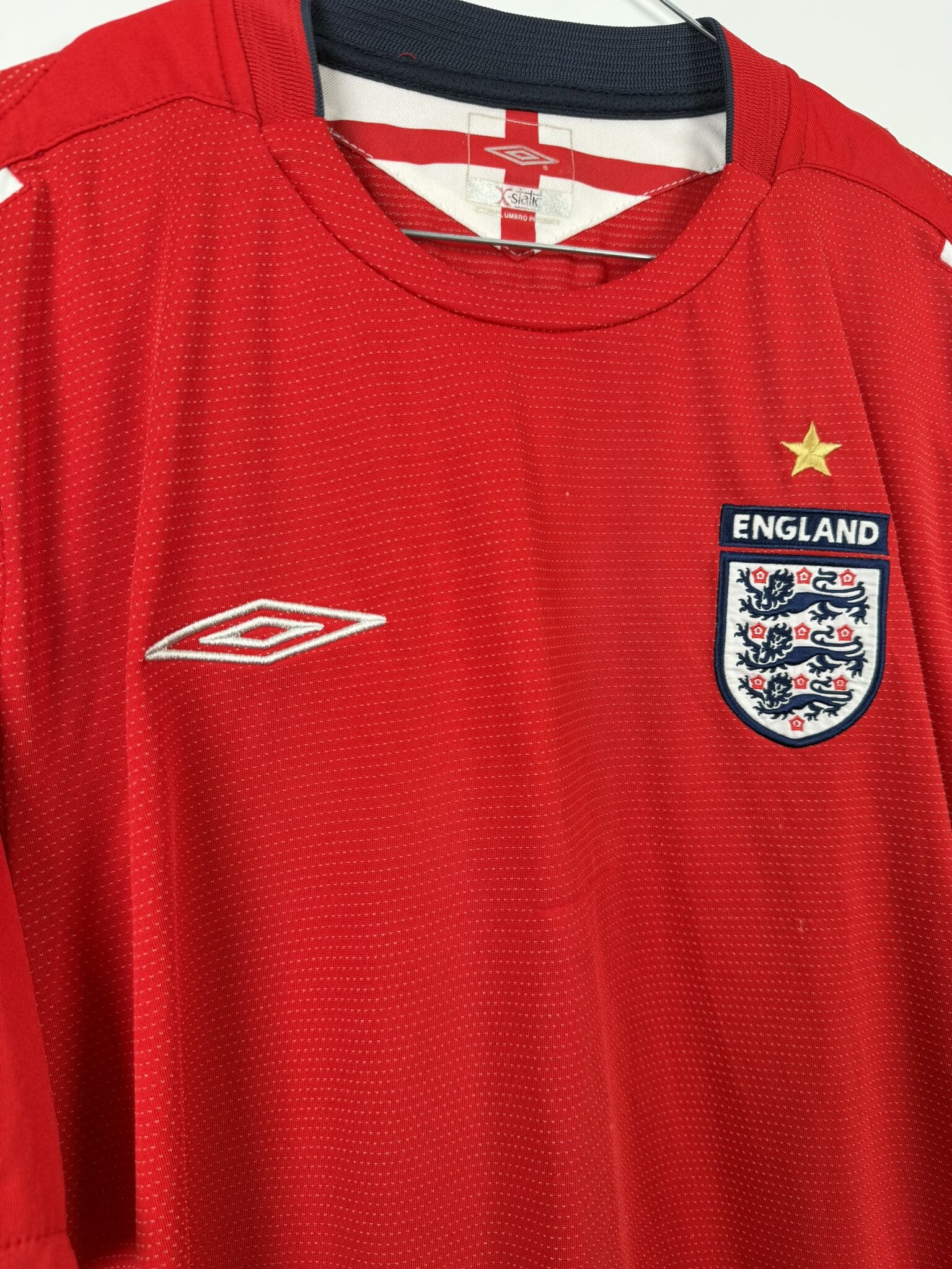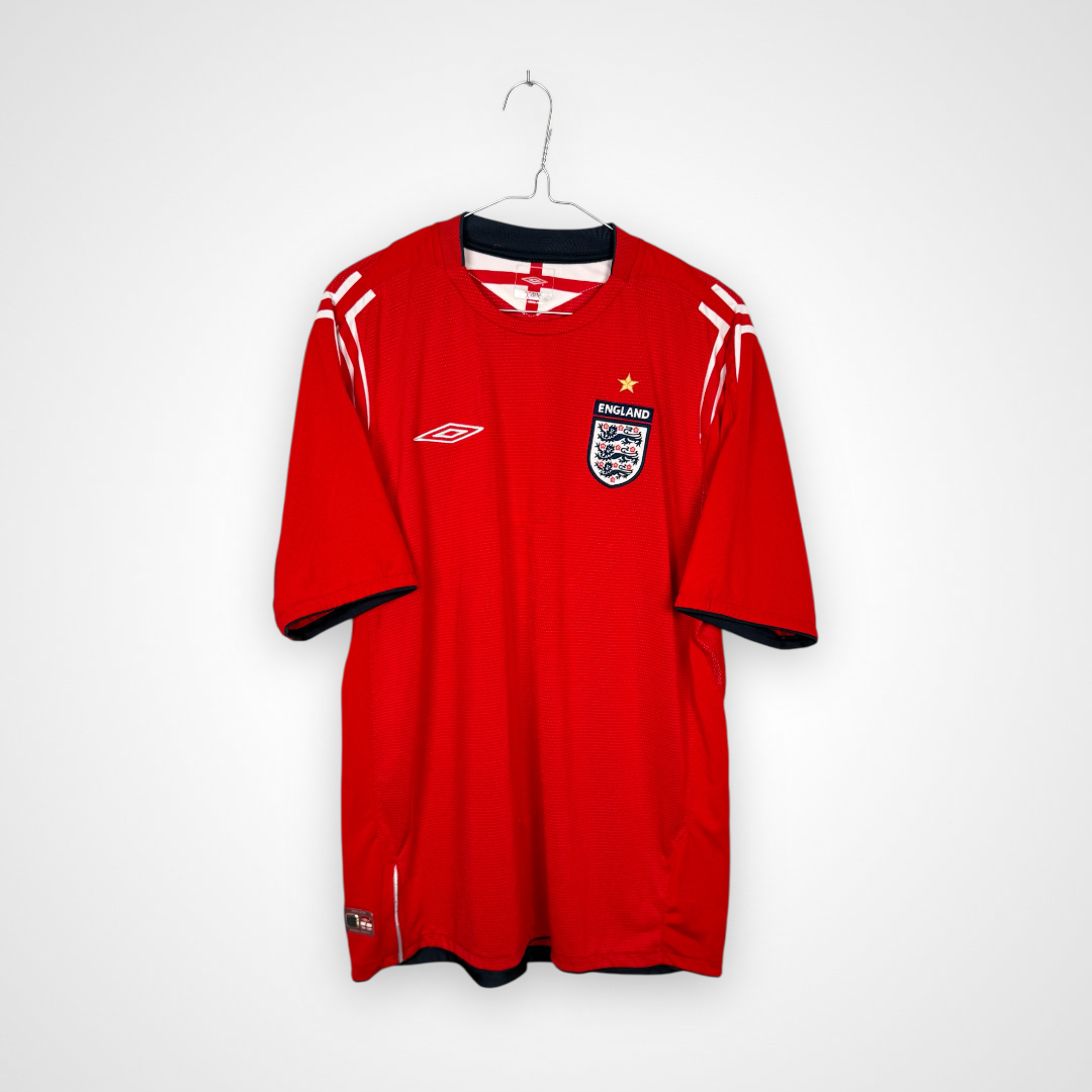 Czerwona, wyjazdowa koszulka z lat 2004–06 do dziś jest jedną z najbardziej rozpoznawalnych w historii reprezentacji Anglii – prosta, elegancka, a jednocześnie niosąca w sobie sporo nostalgii za drużyną, która miała ogromny potencjał, by sięgnąć po wielki sukces.