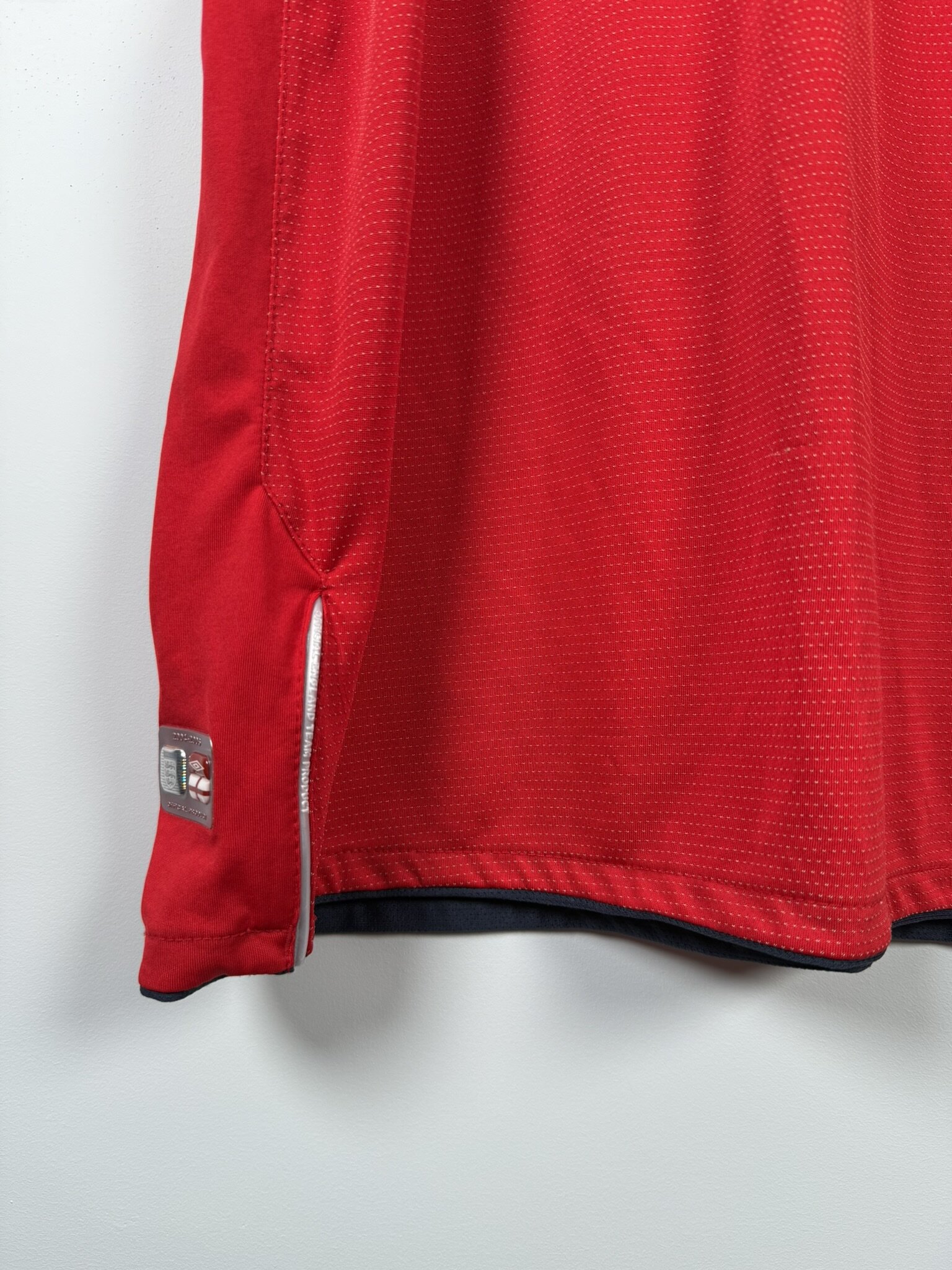 Przed Tobą oryginalna wyjazdowa koszulka piłkarska reprezentacji Anglii z lat 2004–2006, wyprodukowana przez renomowaną brytyjską markę Umbro. Ten stylowy model, w charakterystycznym czerwonym kolorze z subtelnymi białymi detalami, był symbolem jednego z najciekawszych pokoleń angielskiej piłki. Lekki, oddychający materiał z technologią Umbro zapewniał wygodę i komfort gry.