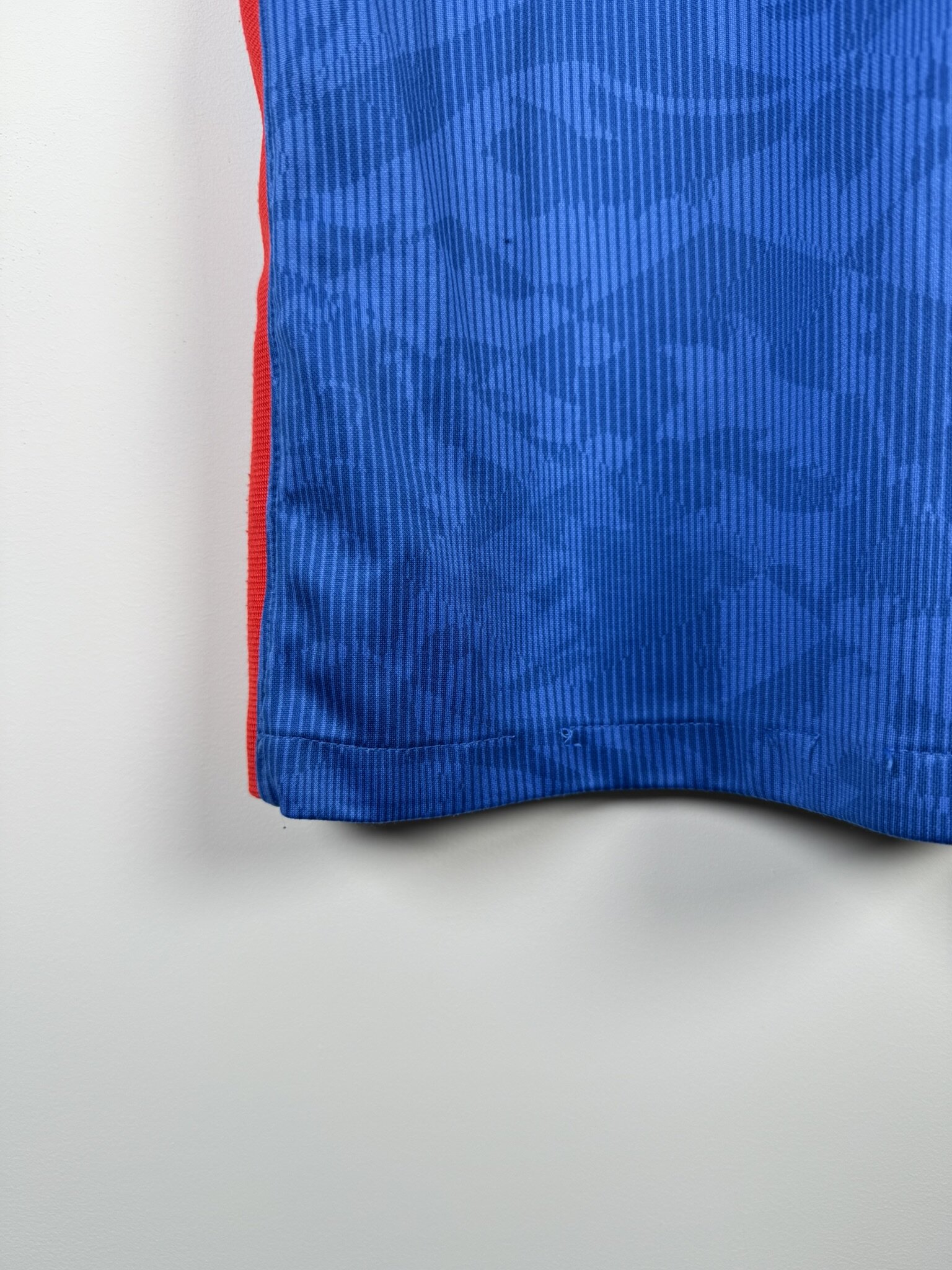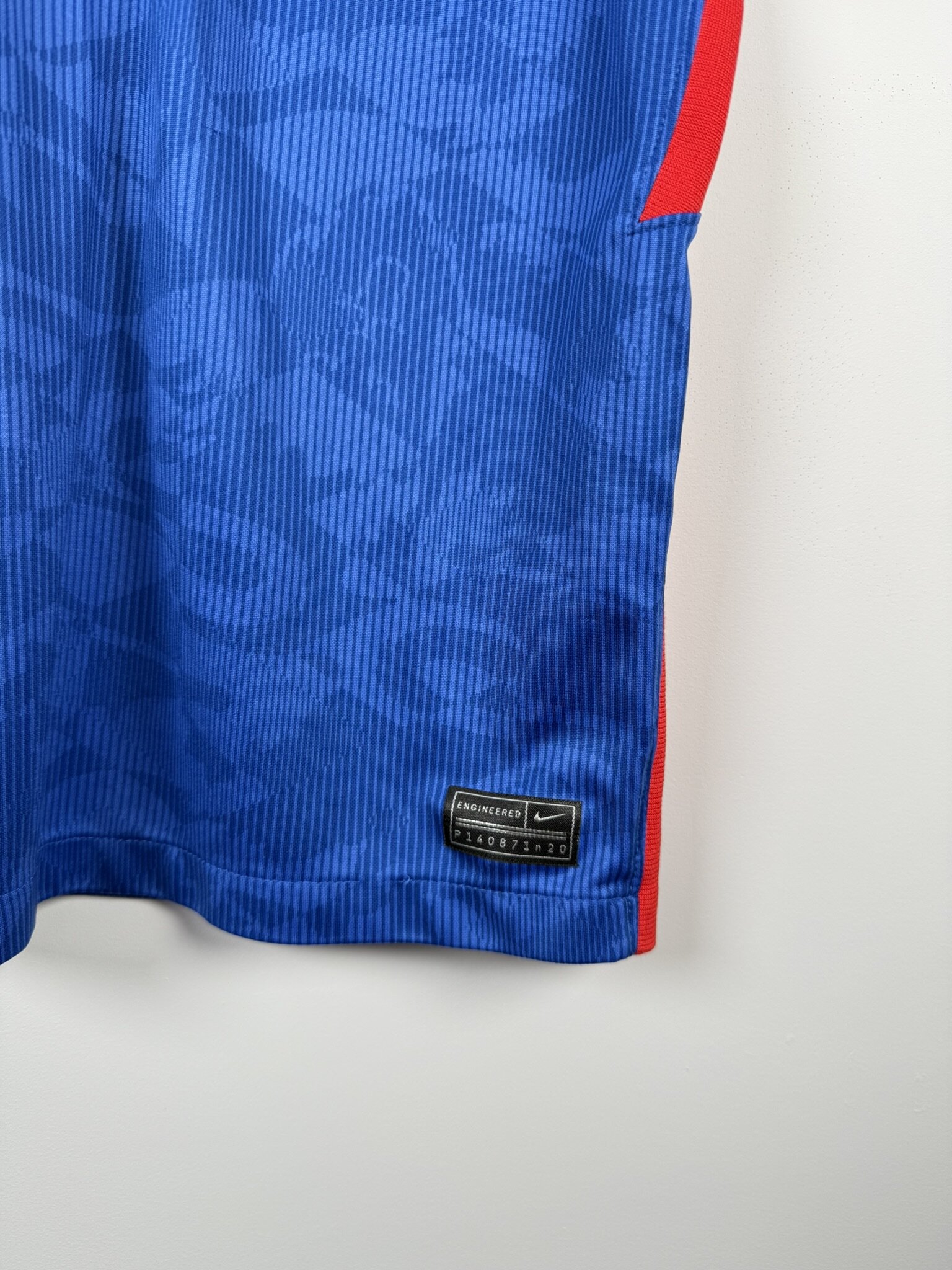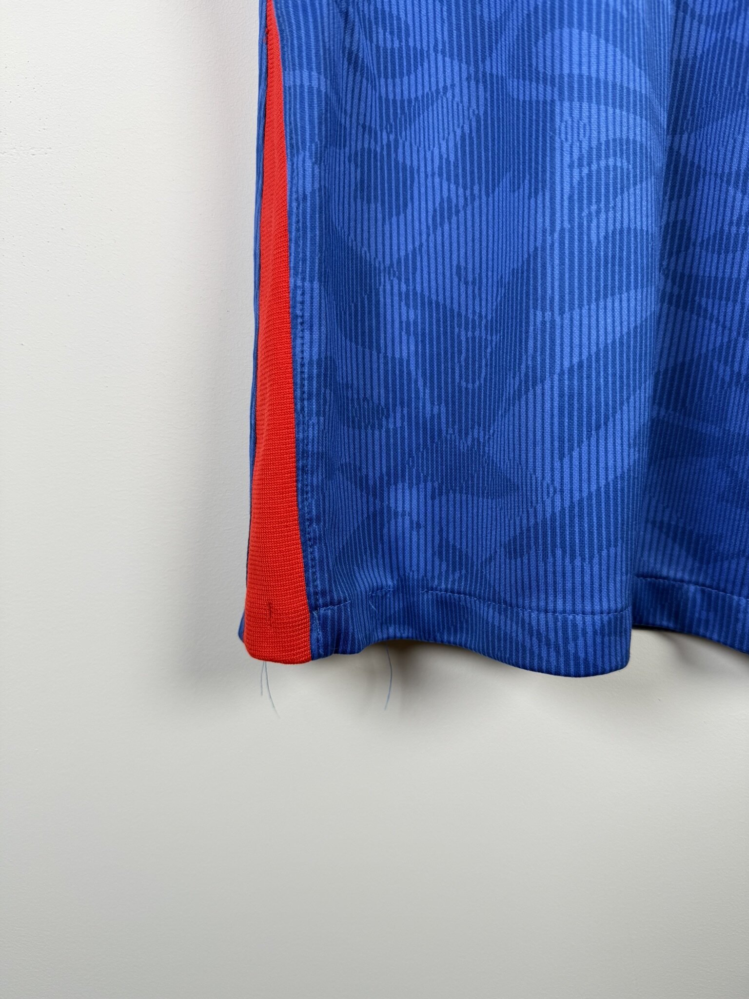 Ta oryginalna wyjazdowa koszulka reprezentacji Anglii z lat 2020–2022 została zaprojektowana przez markę Nike i przygotowana w wersji juniorskiej na wzrost 158 cm. Utrzymana w efektownej niebieskiej kolorystyce, wyróżnia się nowoczesnym designem z delikatnym wzorem na materiale, co nadaje jej dynamicznego charakteru.