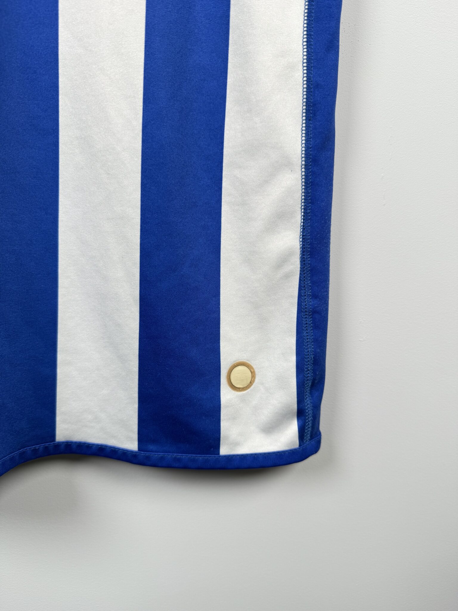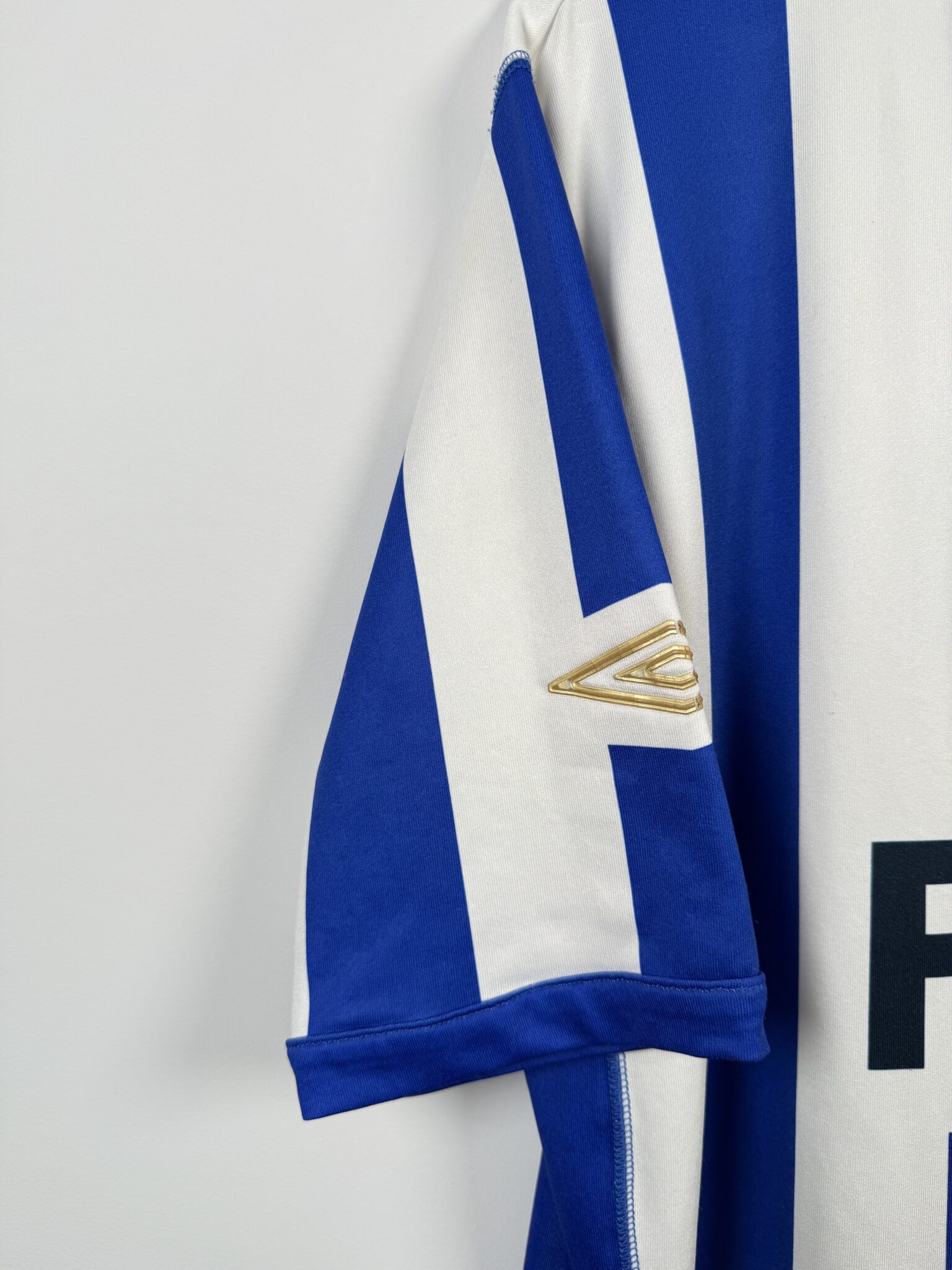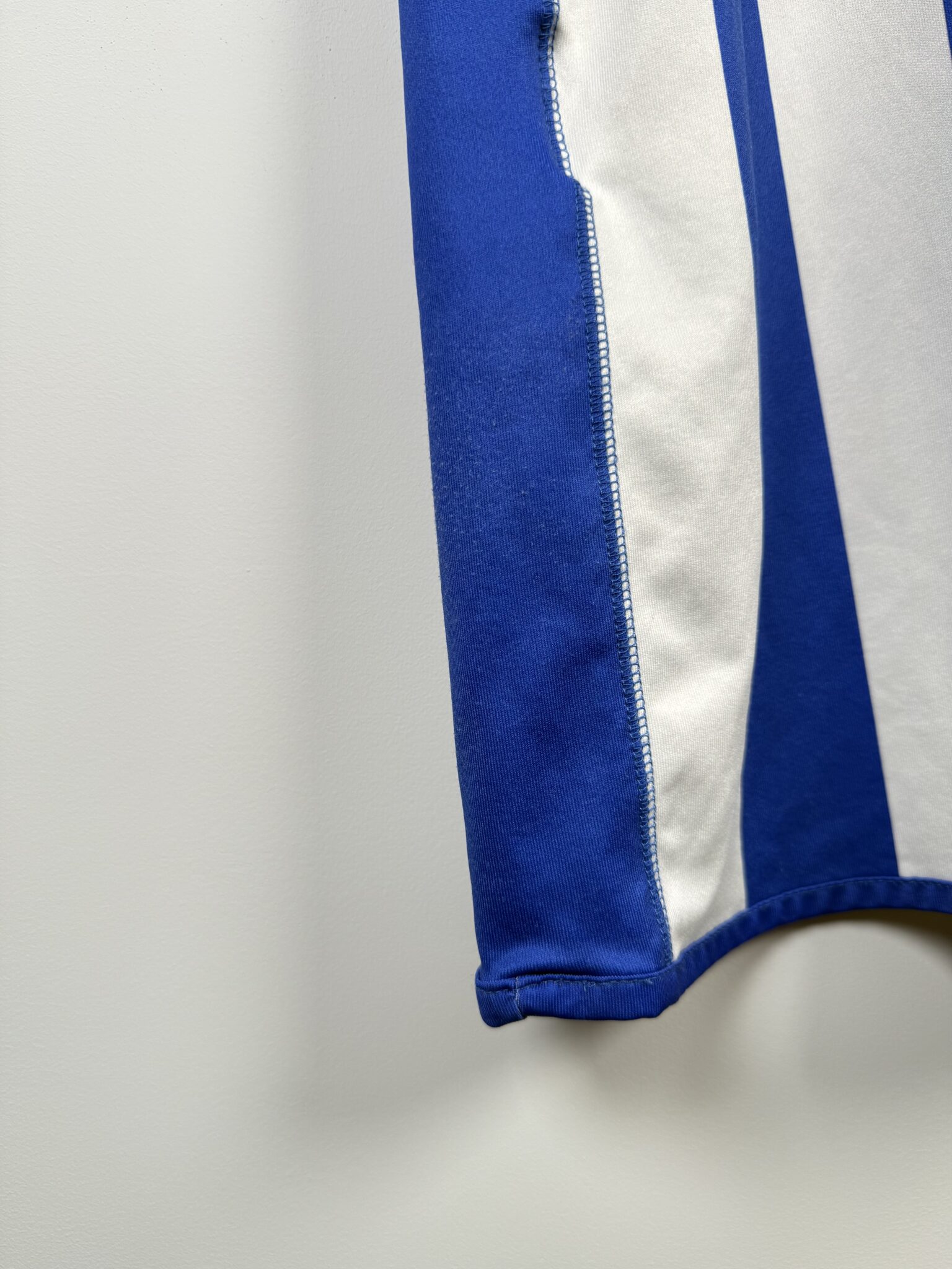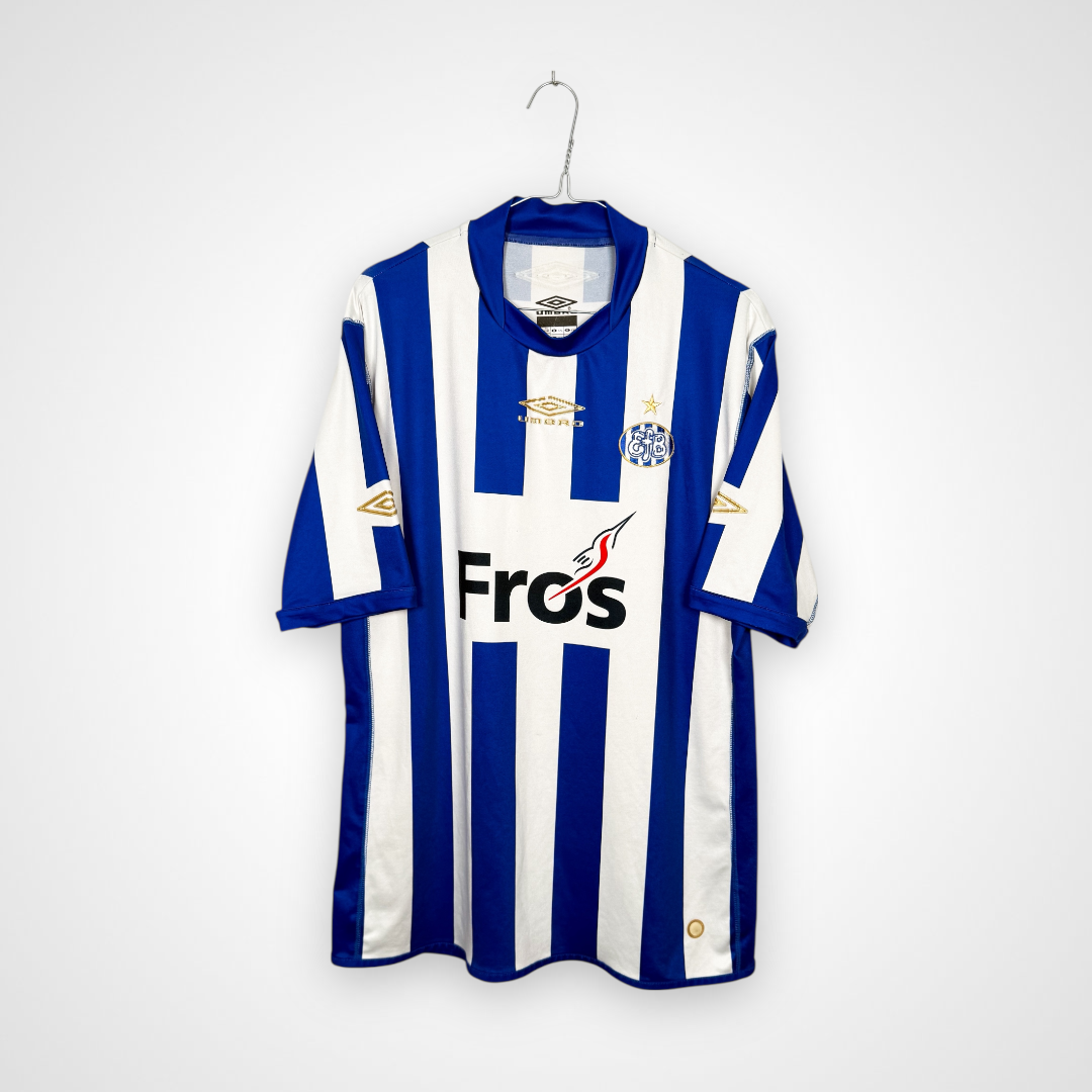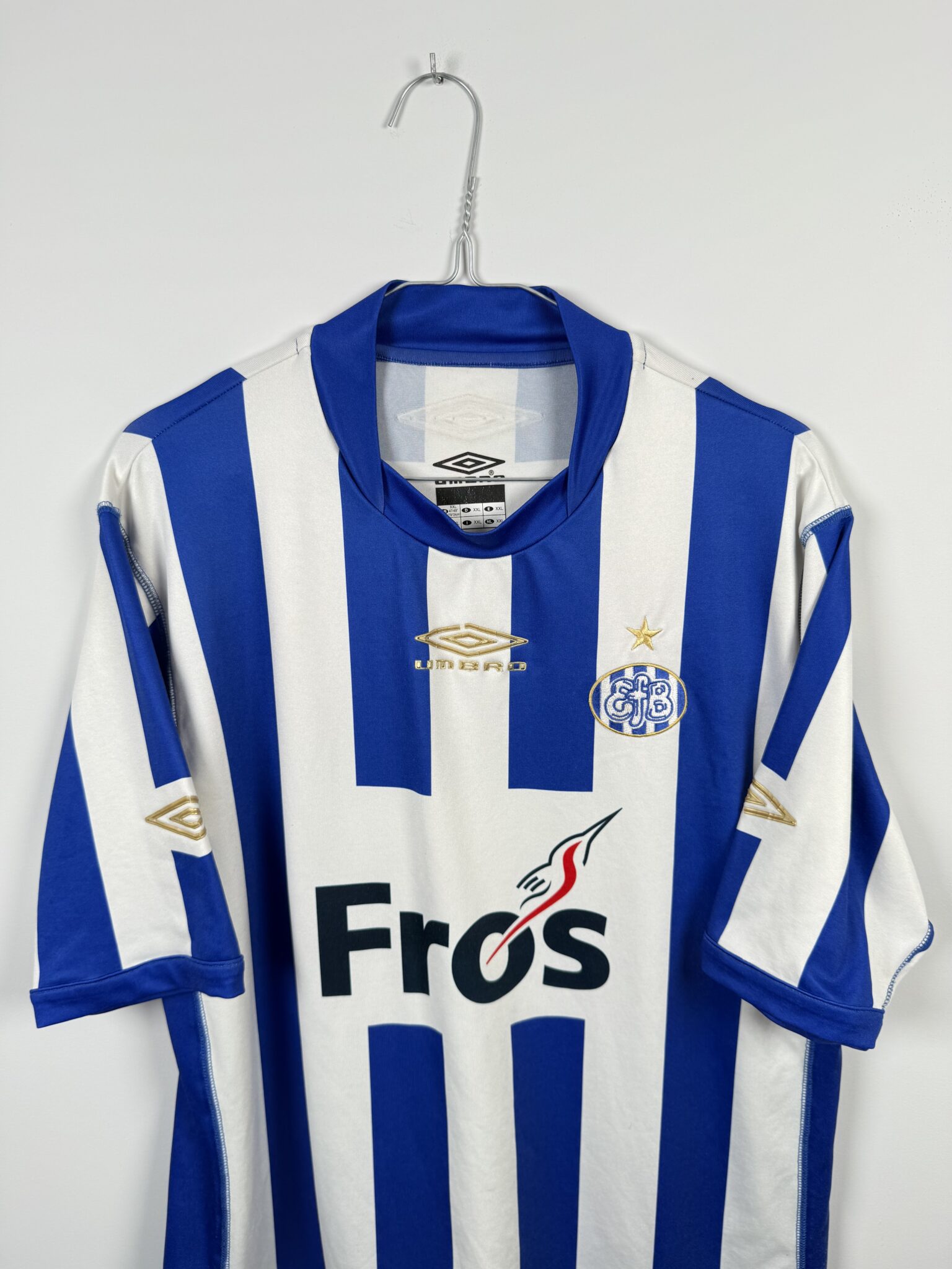 Oryginalna domowa koszulka piłkarska Esbjerg fB z sezonu 2007/08 to klasyczny model dla kolekcjonerów duńskiego futbolu. Wyprodukowana przez Umbro, utrzymana jest w tradycyjnych barwach klubu – biało-niebieskie pionowe pasy na froncie nadają jej elegancji i podkreślają tożsamość drużyny. Wysokiej jakości materiały oraz dopracowany krój gwarantują wygodę zarówno na boisku, jak i na co dzień.