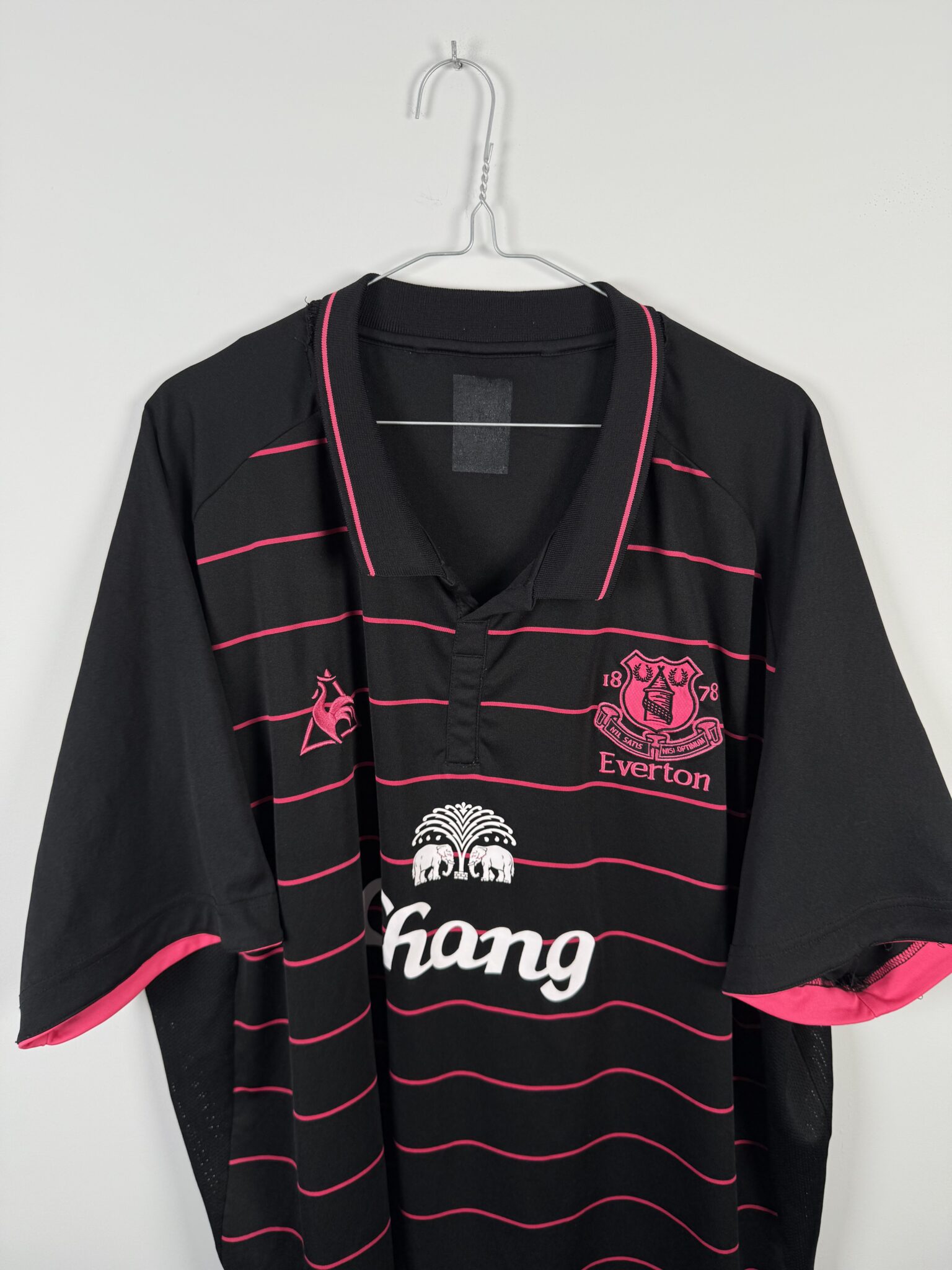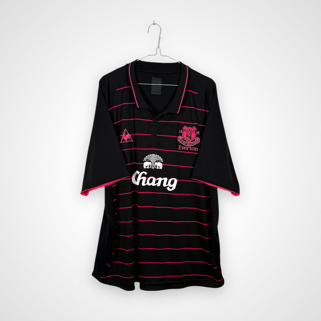 Na froncie koszulki widnieje herb Evertonu, logo Le Coq Sportif oraz znak sponsora Chang Beer, co tworzy klasyczny zestaw elementów, znany fanom z końca pierwszej dekady XXI wieku. Dzięki zastosowaniu materiału wysokiej jakości, koszulka zapewniała piłkarzom komfort, przewiewność i swobodę ruchów, a jej stylowy wygląd sprawił, że stała się kultowym elementem kolekcji meczowych strojów Evertonu.