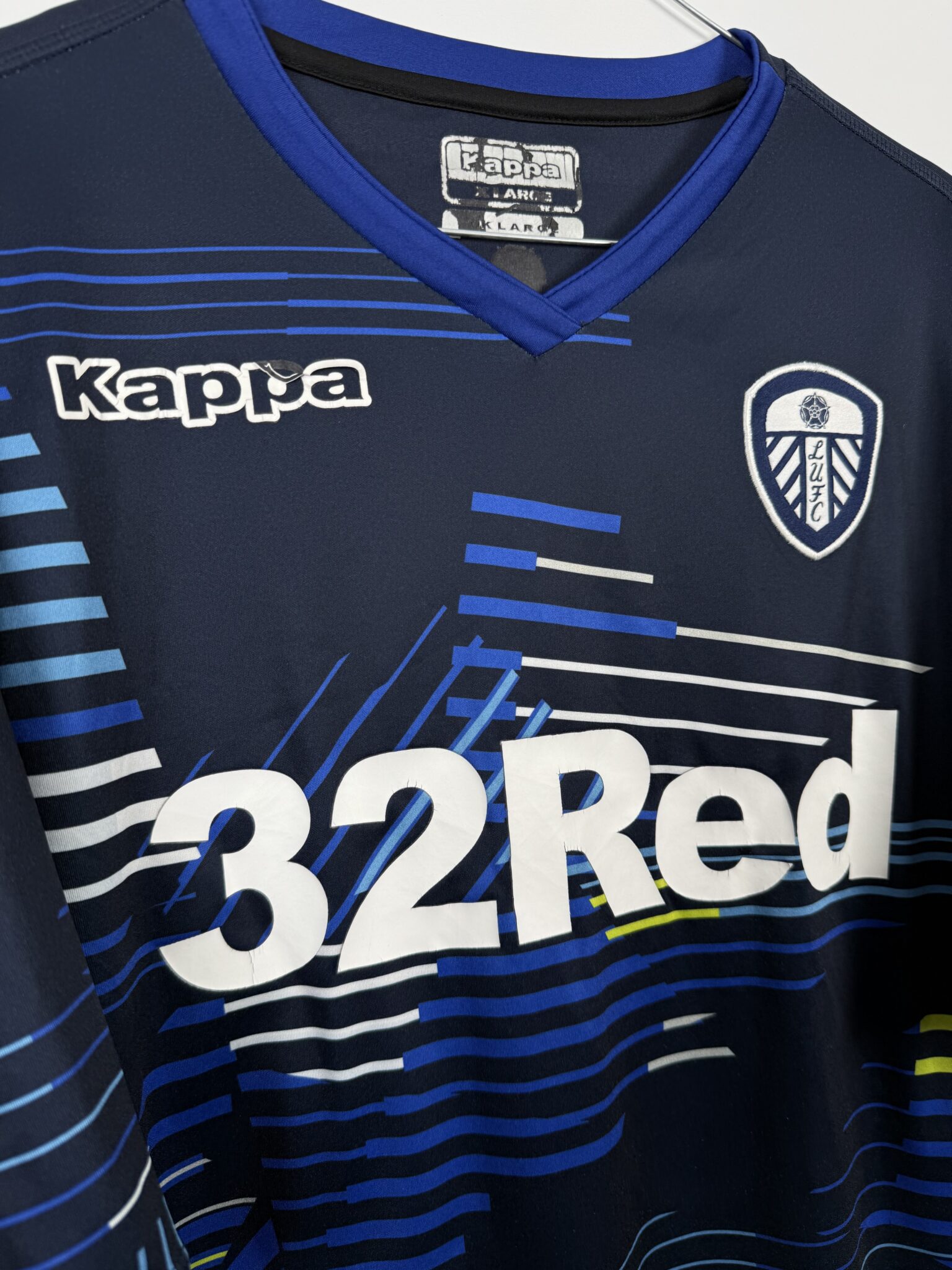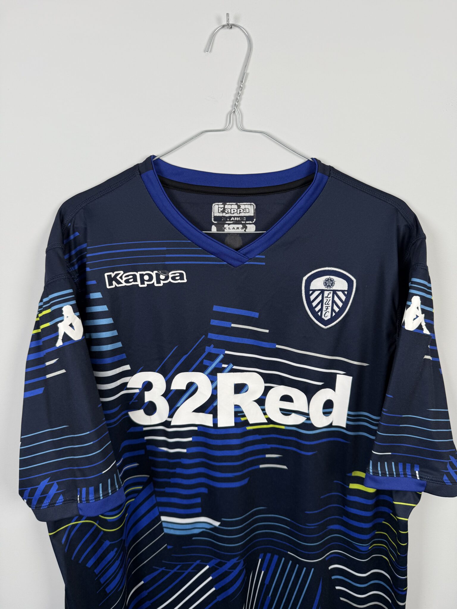 Na froncie koszulki znajdują się herb Leeds United, logo Kappy oraz znak sponsora 32Red, co tworzy nowoczesny, rozpoznawalny układ. Dzięki zastosowaniu lekkiego, elastycznego materiału o właściwościach oddychających, koszulka gwarantuje komfort i wygodę, zarówno podczas gry, jak i w codziennym użytkowaniu.