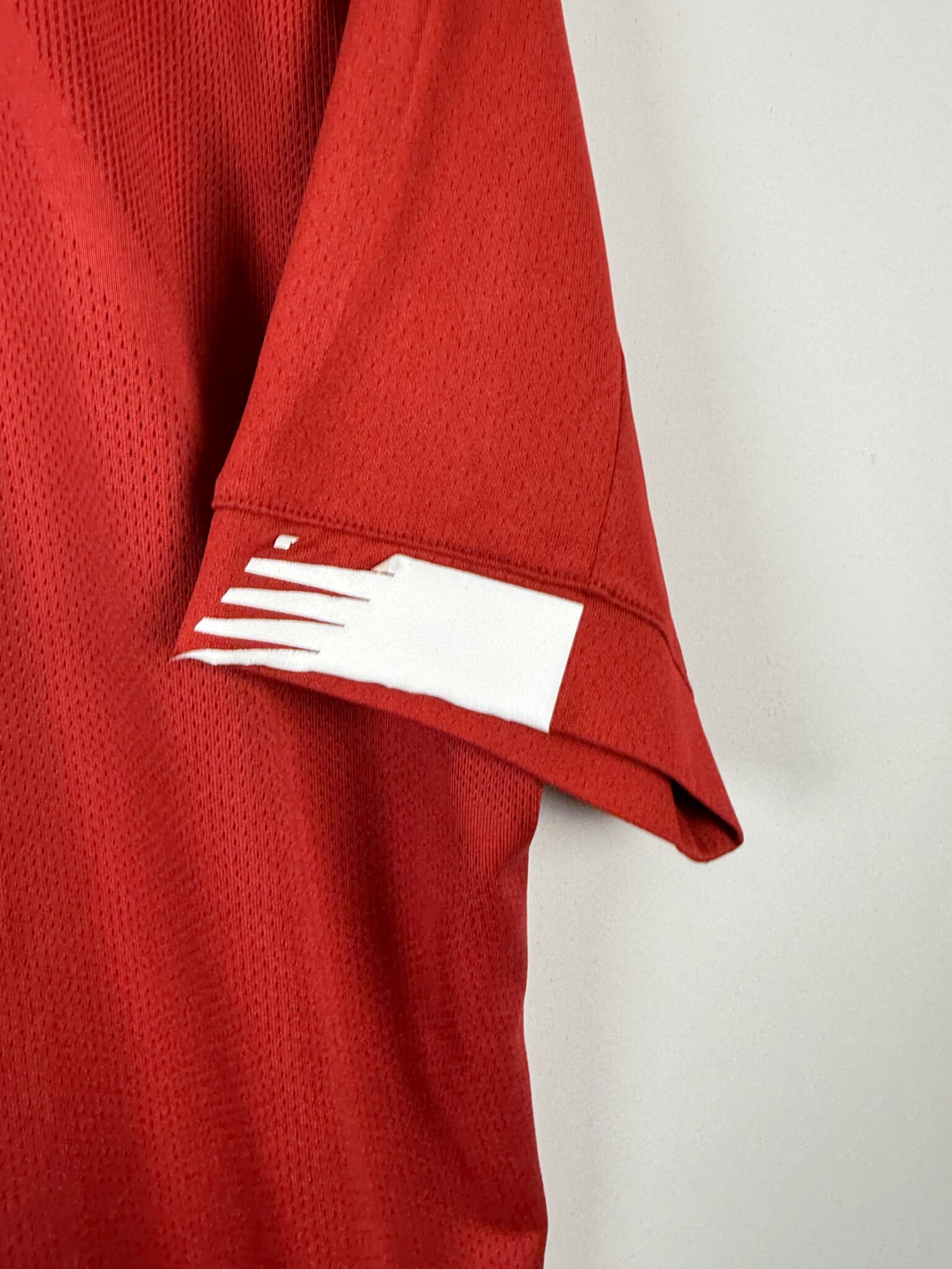 Ta oryginalna domowa koszulka Liverpool FC z sezonu 2019/20, wyprodukowana przez New Balance, to model, który zapisał się w historii jako część jednego z największych sezonów w dziejach klubu. Utrzymana w tradycyjnych czerwonych barwach „The Reds”, wzbogacona została o charakterystyczne cienkie paski pionowe, nawiązujące do klasycznych koszulek z lat 80. Egzemplarz posiada oficjalny nadruk ligowy Roberto Firmino na plecach – brazylijskiego napastnika, który odegrał kluczową rolę w zdobyciu pierwszego od 30 lat mistrzostwa Anglii.