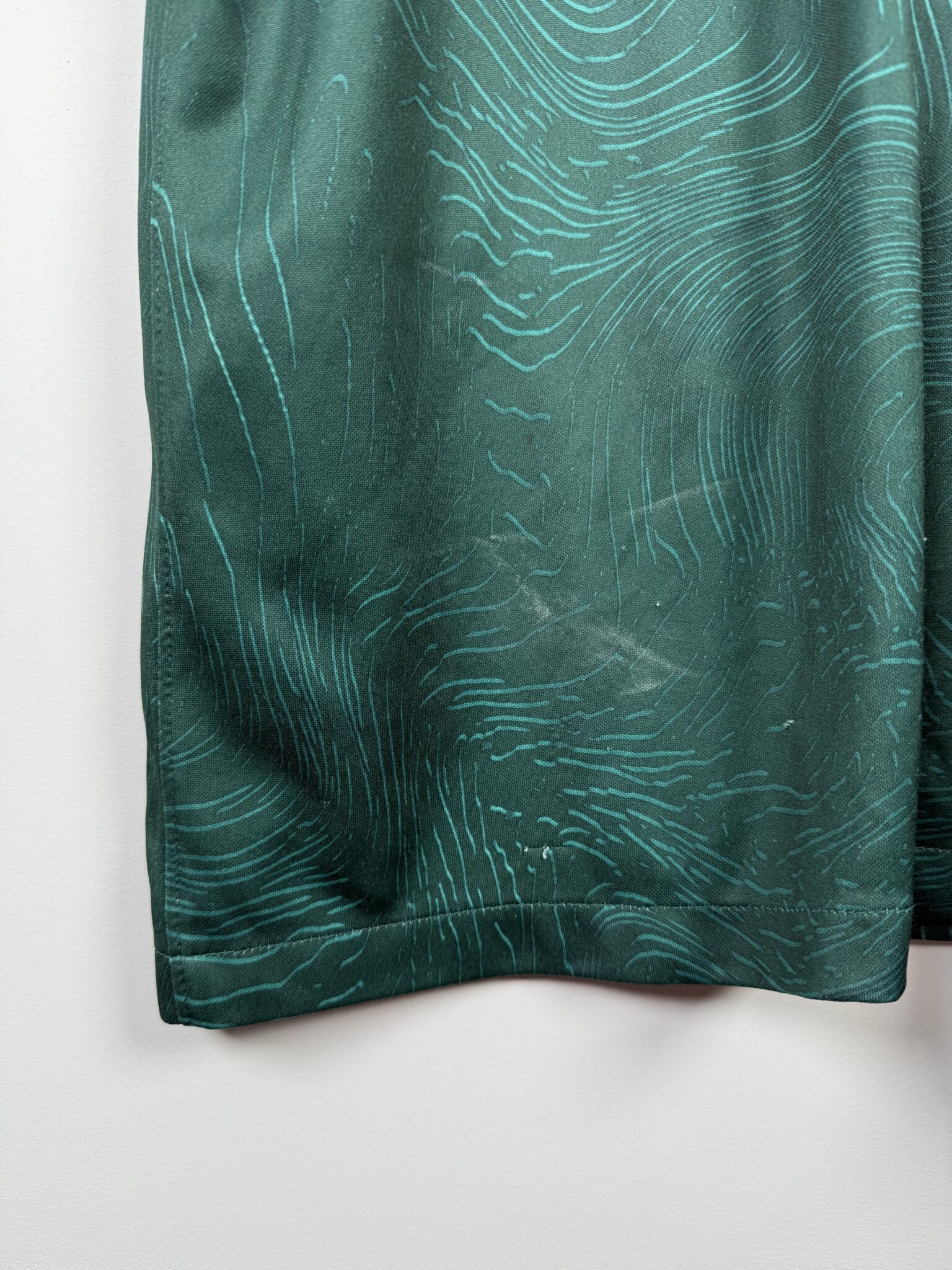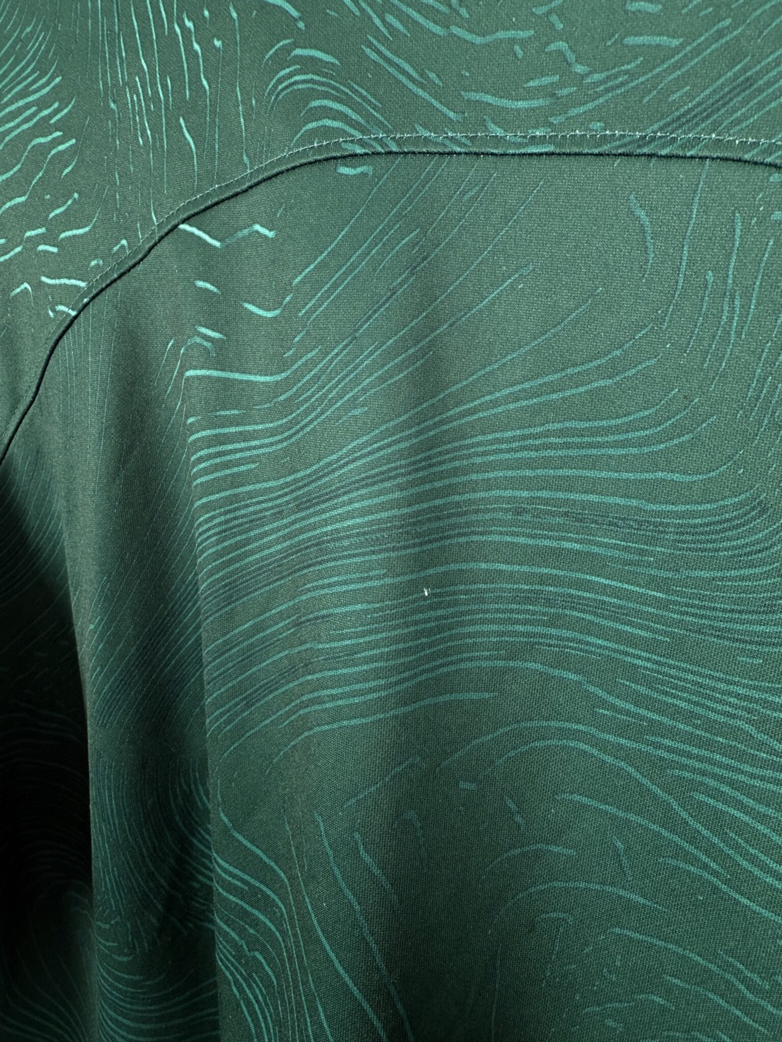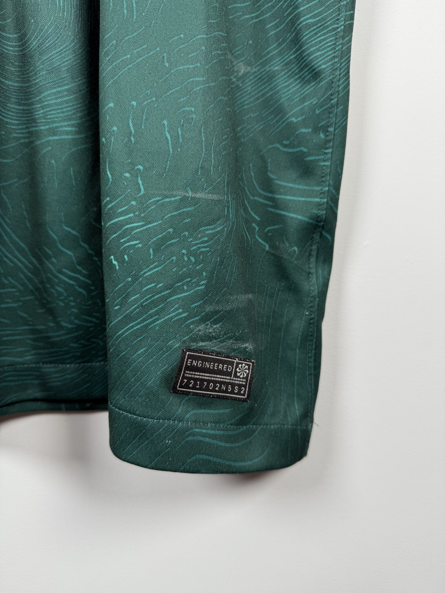 Ta oryginalna trzecia koszulka piłkarska Liverpoolu z sezonu 2022/23, wyprodukowana przez Nike, została zaprojektowana w ciemnym zielonym kolorze, uzupełnionym pomarańczowymi wstawkami na kołnierzyku oraz detalach. To odważna i nowoczesna propozycja, która wyróżniała się na boiskach Ligi Mistrzów i Premier League, a jednocześnie doskonale nawiązywała do alternatywnych barw klubowych „The Reds”.