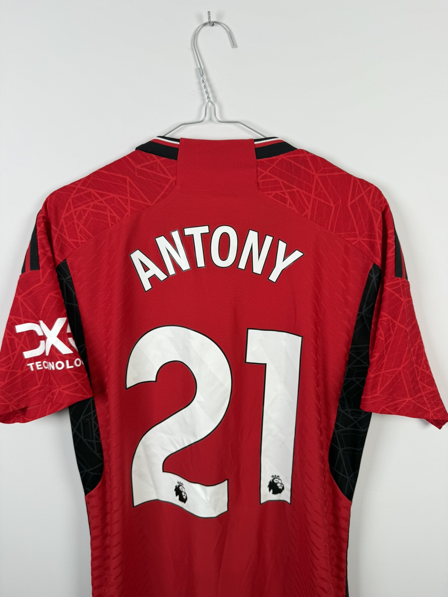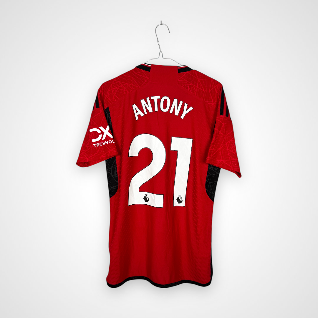 Oryginalna domowa koszulka Manchesteru United z sezonu 2023/24 z nadrukiem Antony’ego – wersja Authentic, produkcji Adidasa.