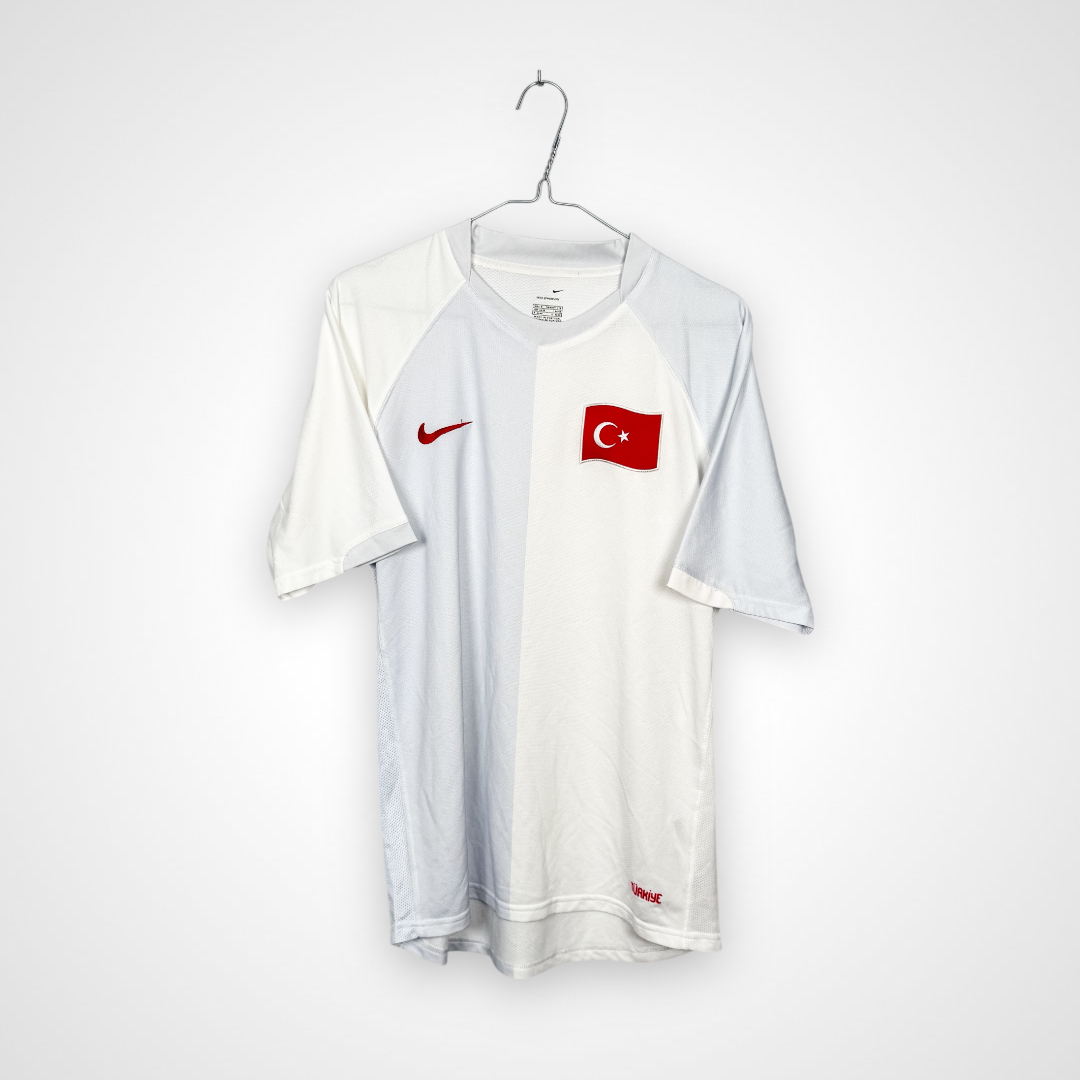 Oryginalna wyjazdowa koszulka piłkarska reprezentacji Turcji z lat 2006–2008.