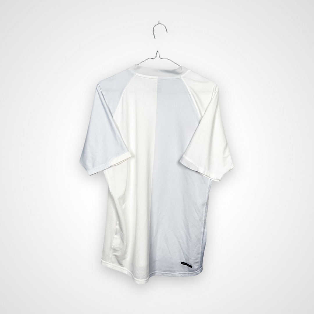 Ta koszulka piłkarska Turcji to oficjalny wyjazdowy strój kadry narodowej z lat 2006–2008, wyprodukowany przez Nike. Model wyróżnia się pełną bielą, która nadaje mu prostoty i elegancji, a jednocześnie podkreśla nowoczesny charakter. Na lewej piersi znajduje się herb reprezentacji Turcji z charakterystycznym półksiężycem i gwiazdą, a po prawej stronie subtelne logo Nike w czerwonym kolorze, dodające całości sportowego sznytu.