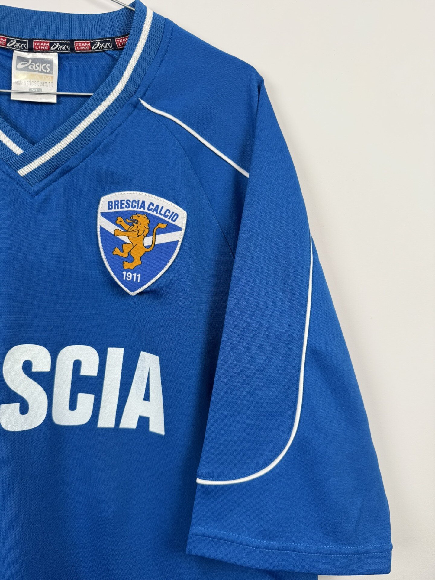 Ta oryginalna koszulka treningowa Brescii Calcio z sezonu 2006/07 została zaprojektowana przez markę Asics i utrzymana w charakterystycznej dla klubu niebieskiej kolorystyce. Jej najbardziej wyróżniającym elementem jest duży napis „Brescia” umieszczony na froncie, który nadaje koszulce prostego, a jednocześnie efektownego wyglądu.