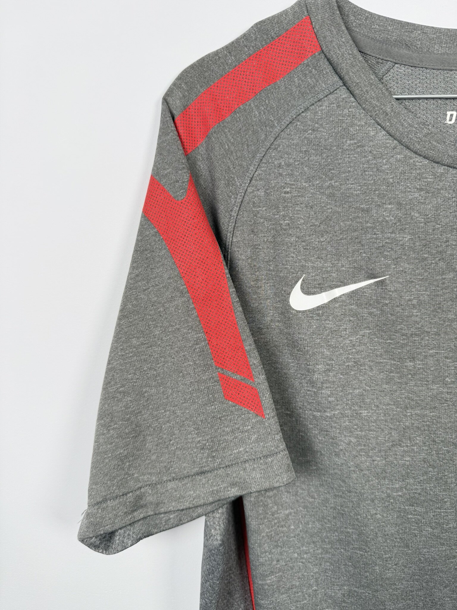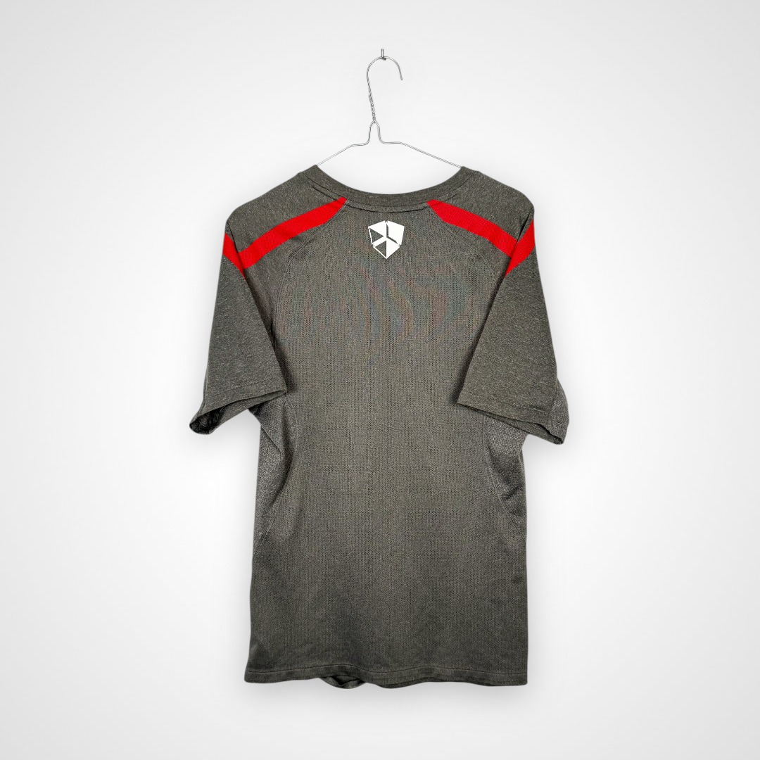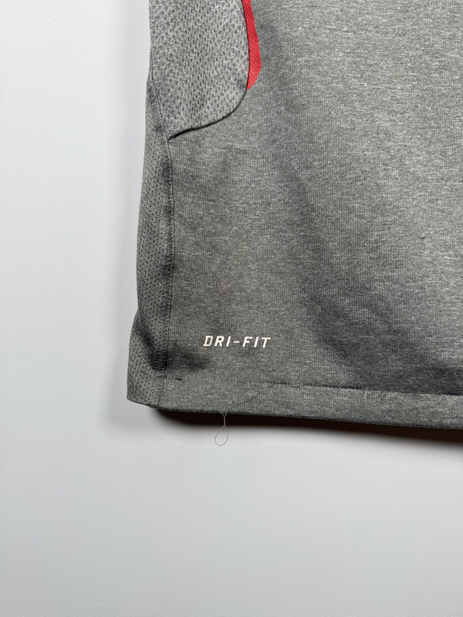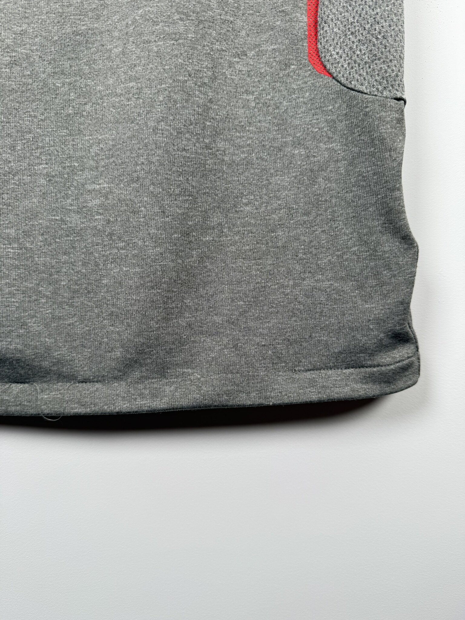 Ta oryginalna koszulka treningowa reprezentacji Francji z sezonu 2011/12 to oficjalny model produkcji Nike, utrzymany w dominującym szarym kolorze z charakterystycznymi czerwonymi wstawkami. Na piersi znajduje się prasowany herb FFF, oraz logo Nike. Lekki, oddychający materiał zapewnia komfort i funkcjonalność, idealna dla fanów francuskiej kadry i kolekcjonerów odzieży treningowej.