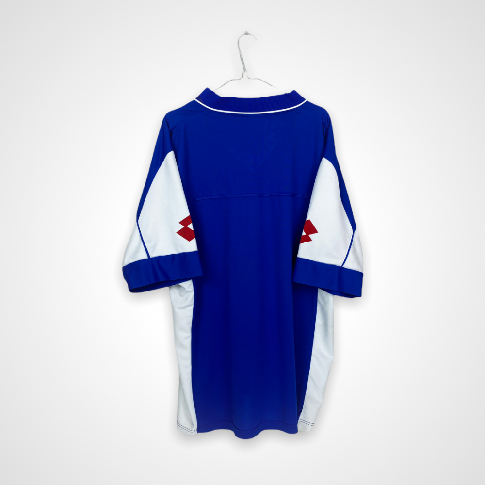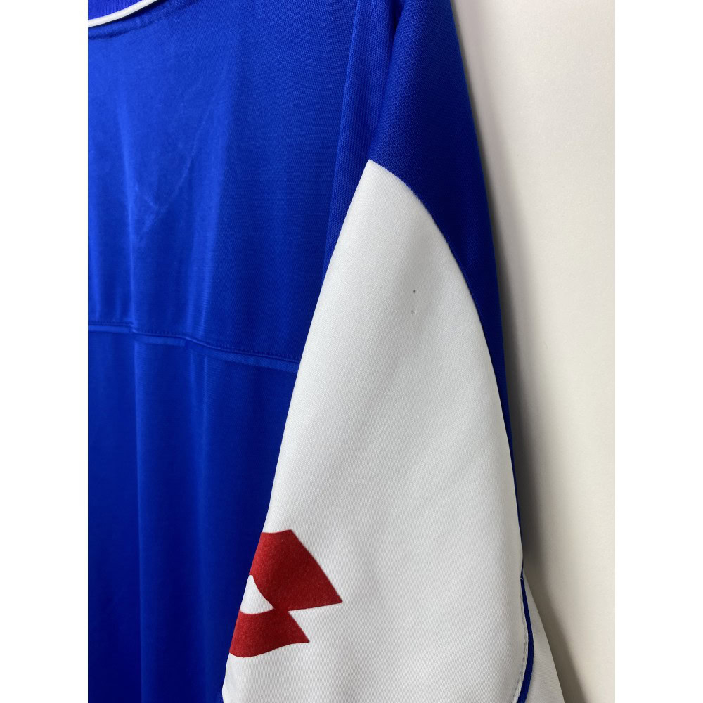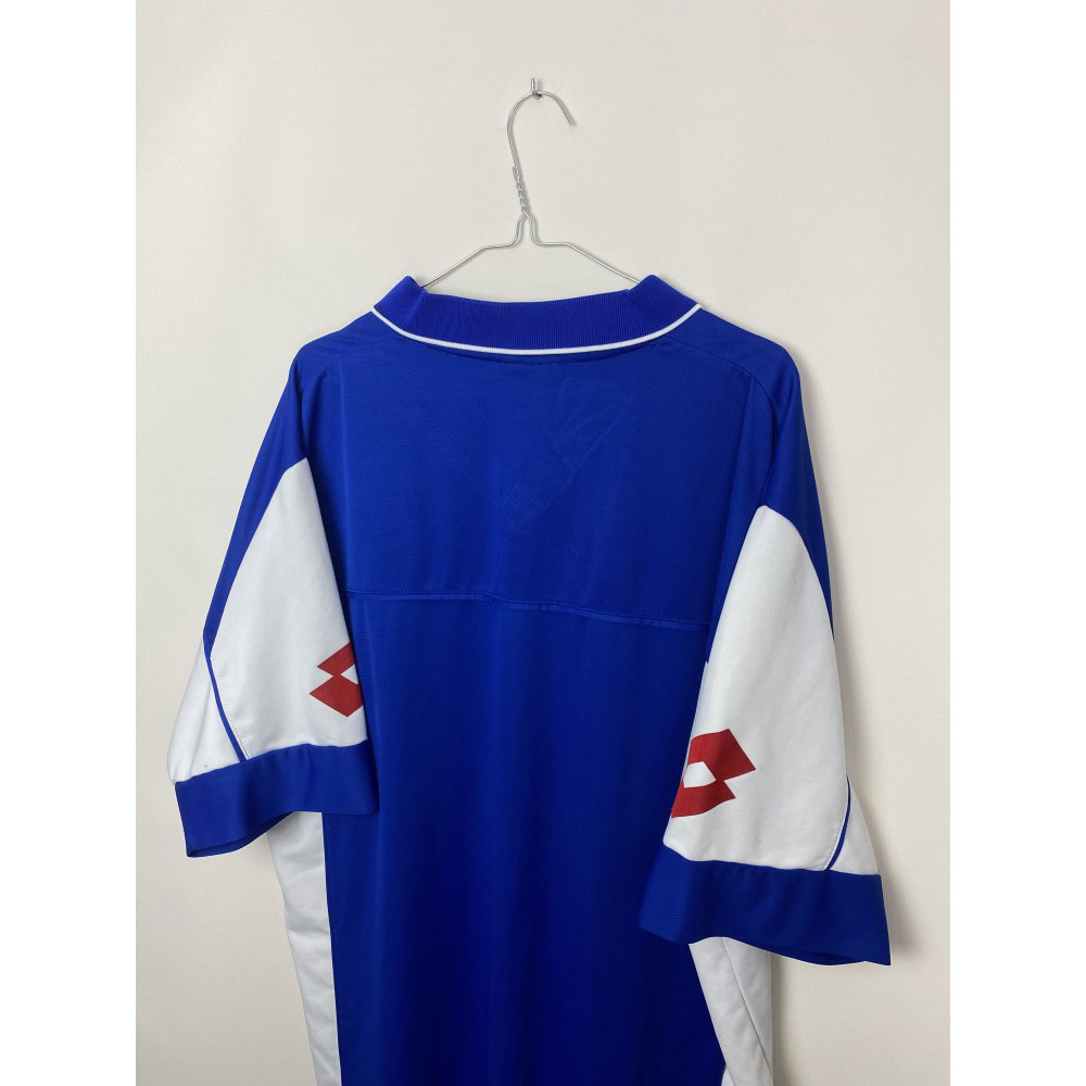 Stan: Zadowalający – sama koszulka jest w bardzo dobrym stanie, a oznaki użytkowania nie są widoczne, posiada jednak mocno zauważalną plamę na kołnierzyku i drobne zabrudzenie na rękawku.