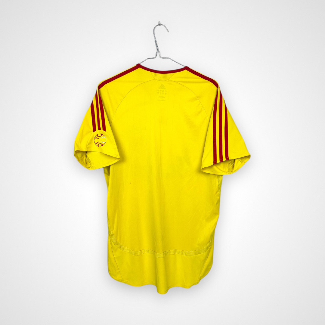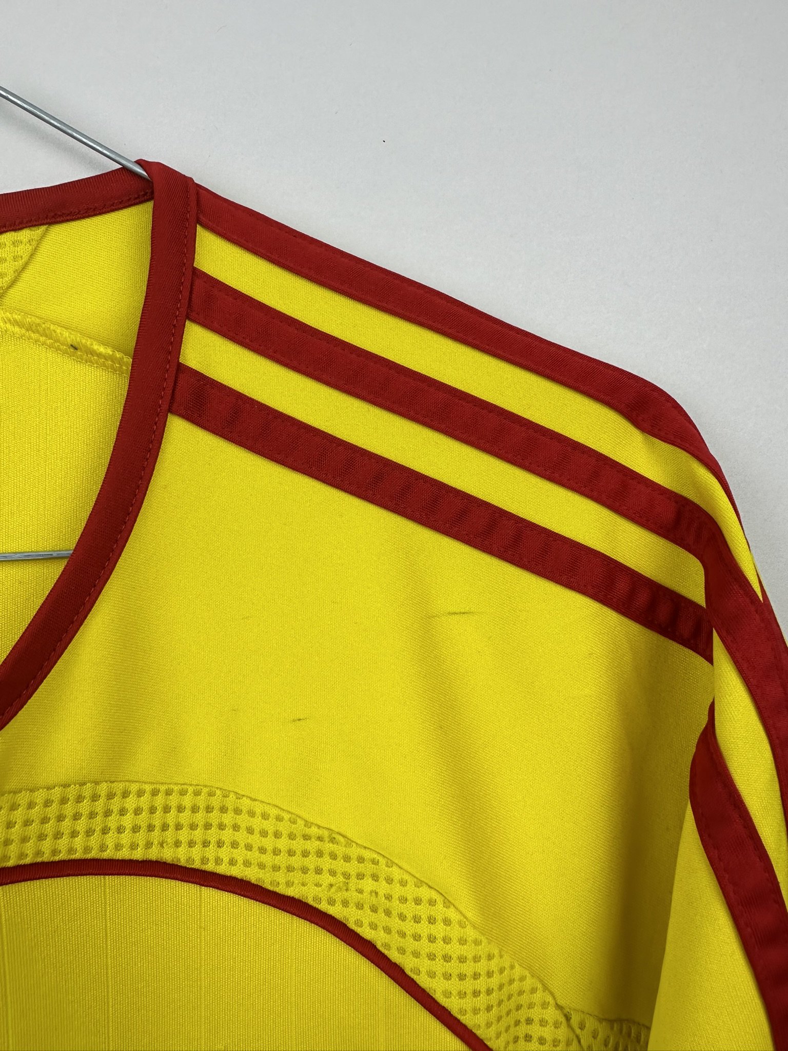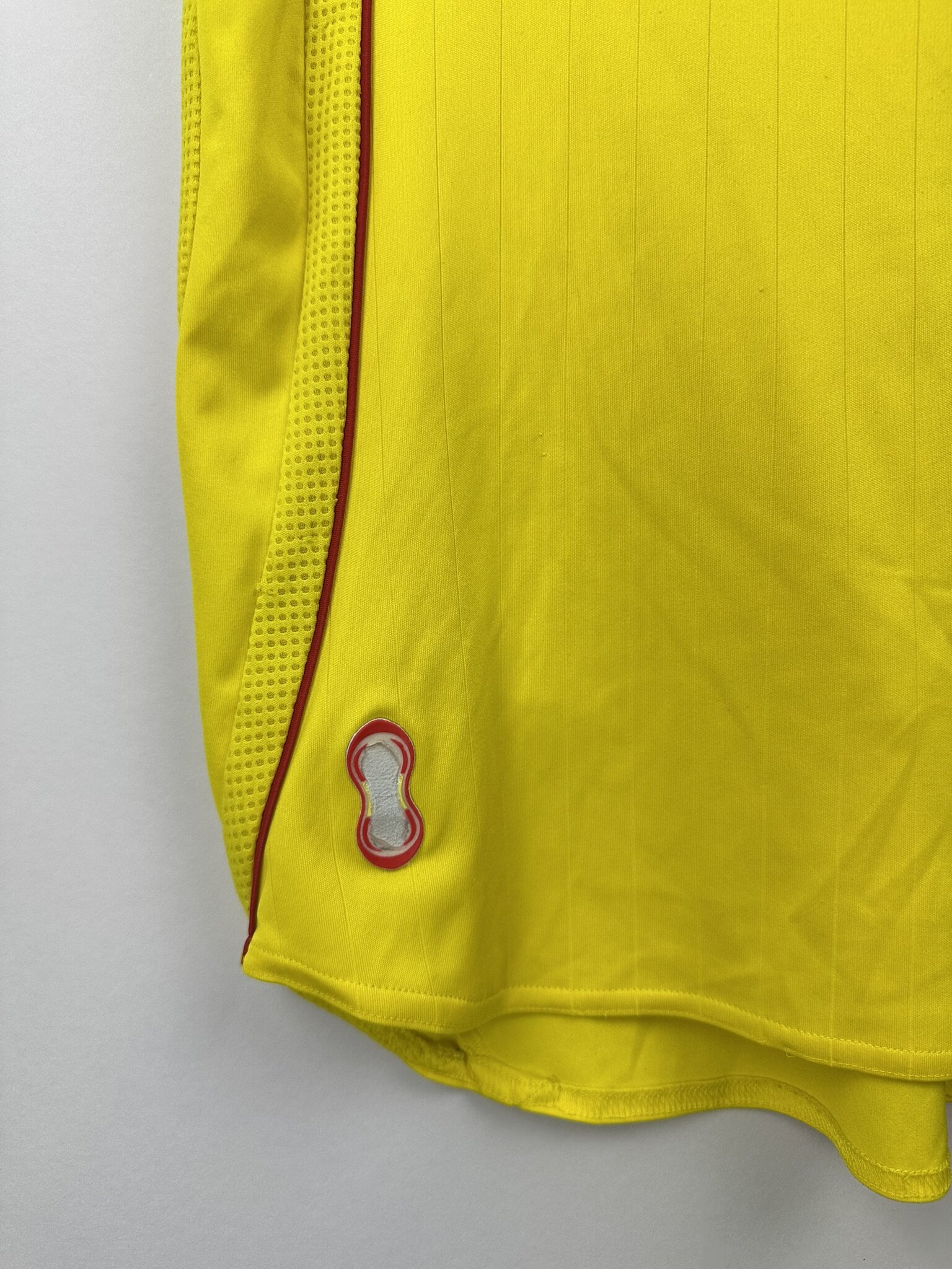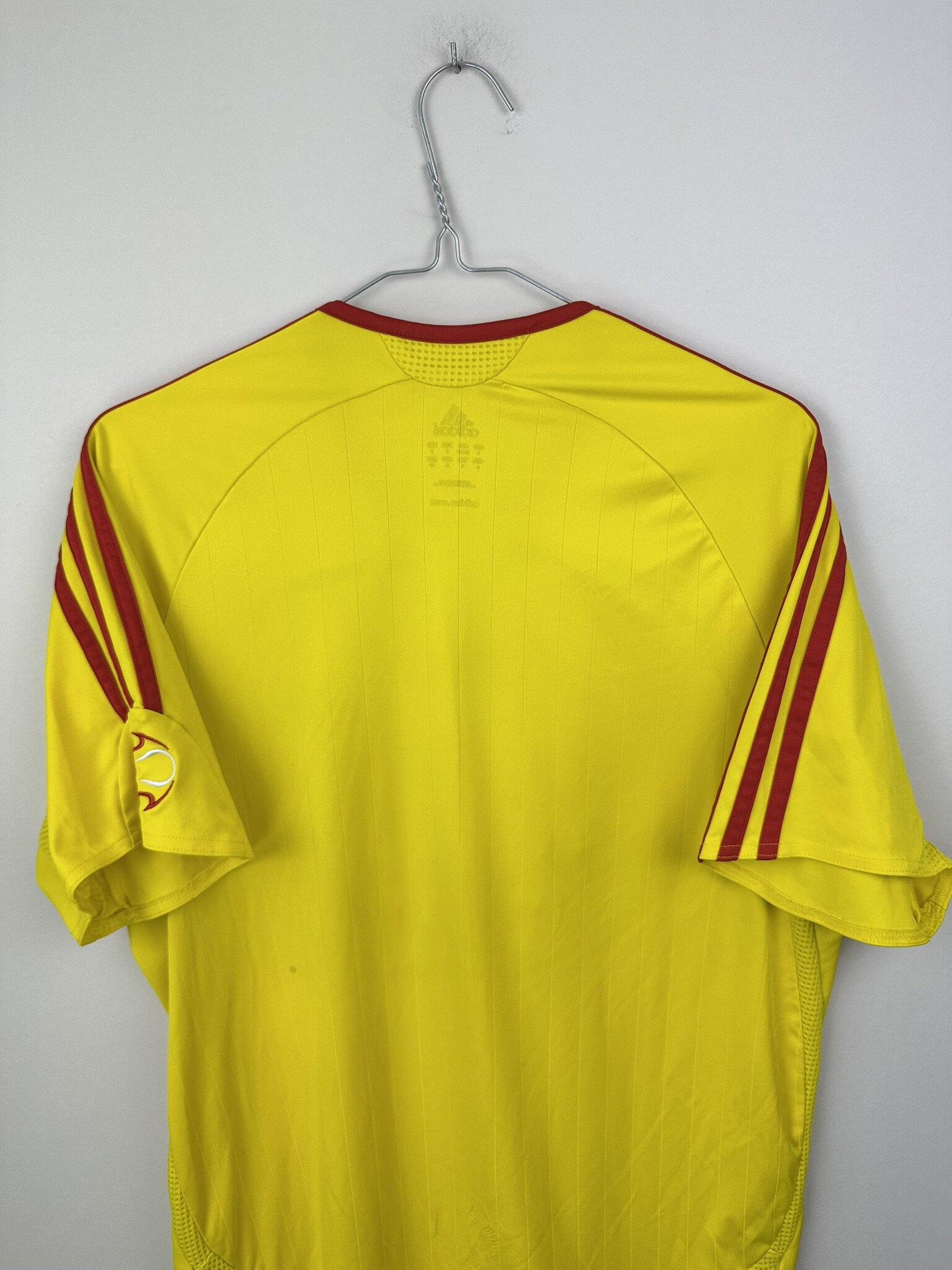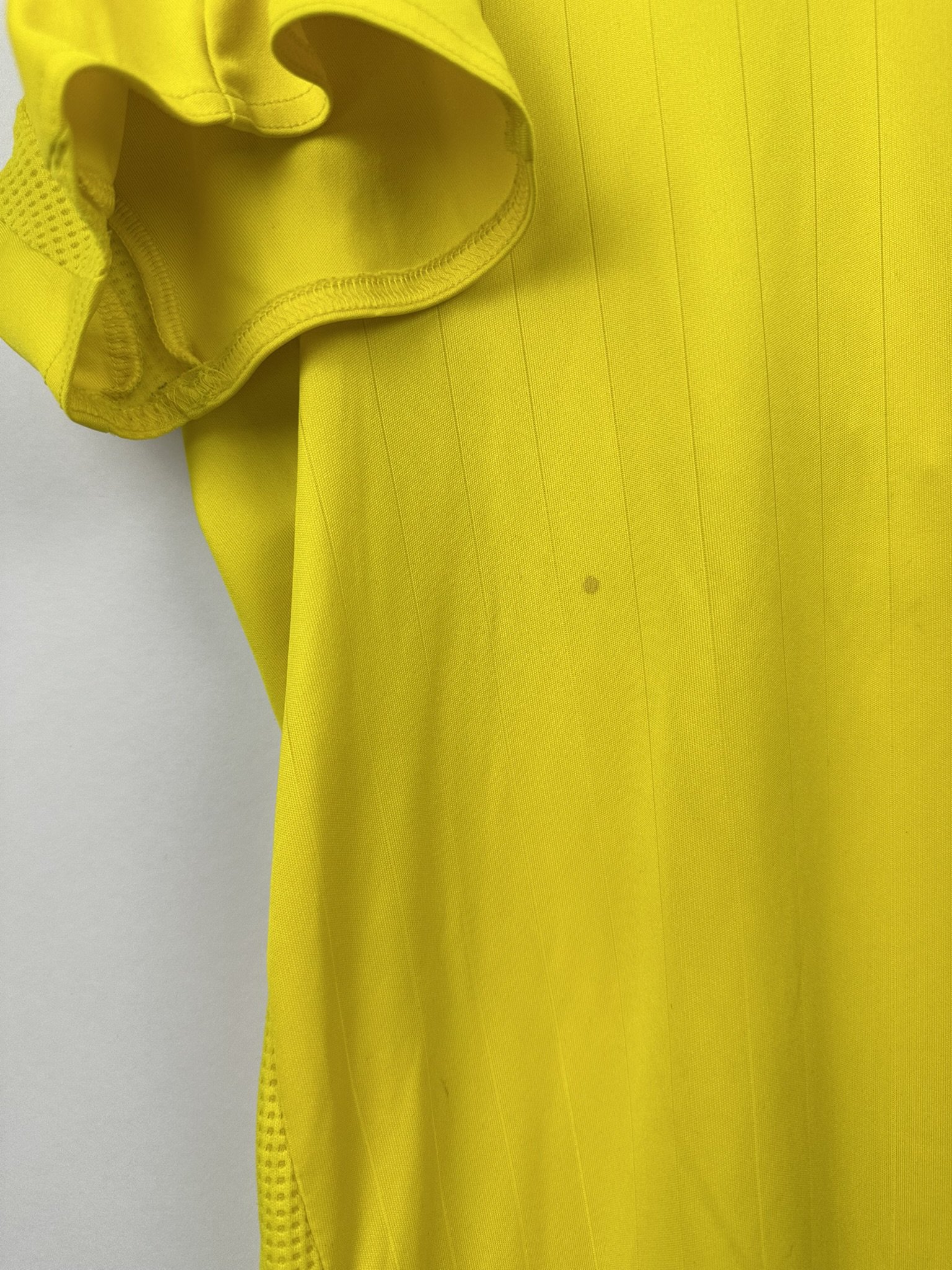 Stan: Zadowalający – drobne zabrudzenia na froncie, mikro zaciągnięcia, jedna drobna plamka na plecach oraz nieznacznie uszkodzony nadruk sponsora