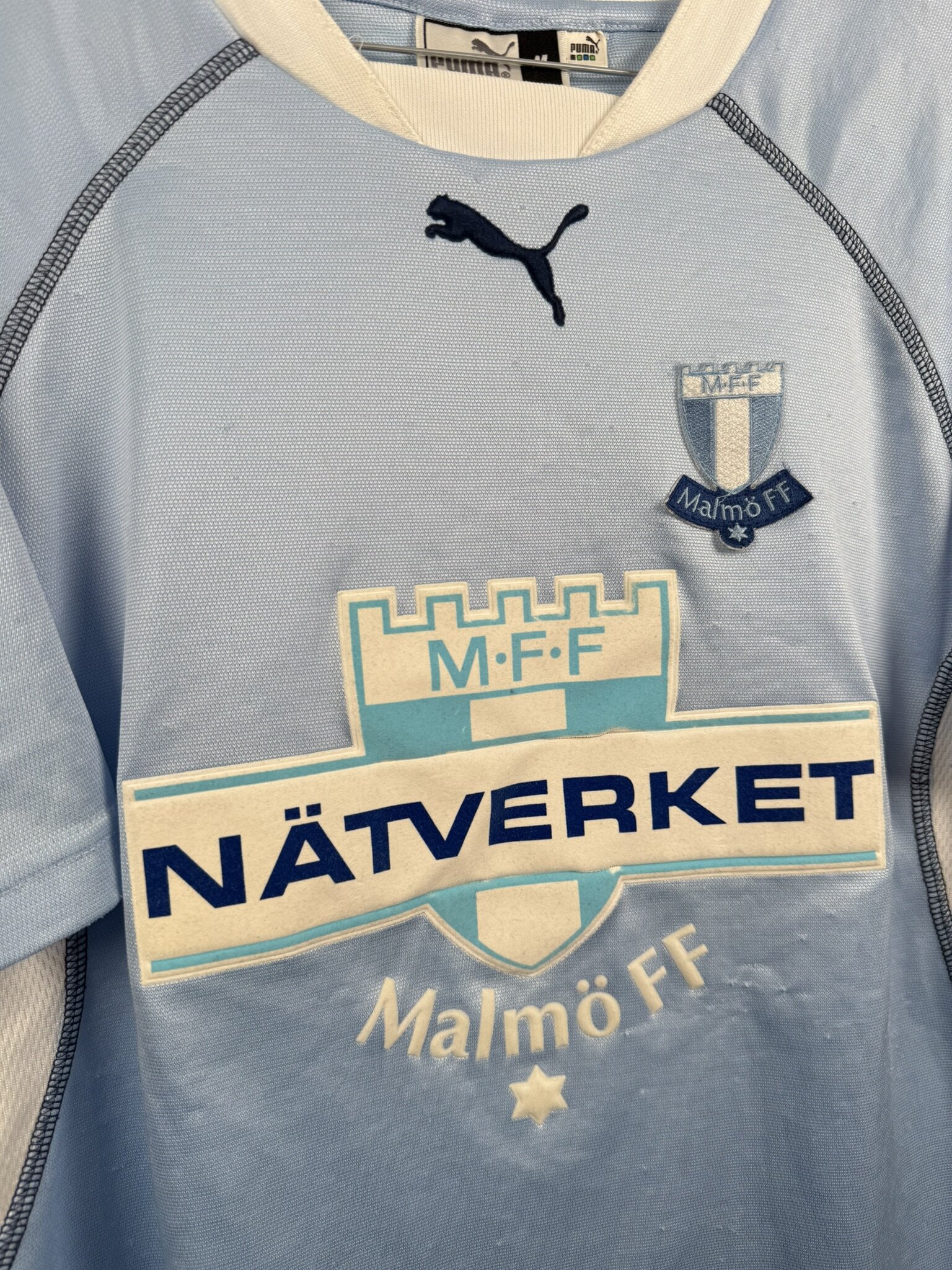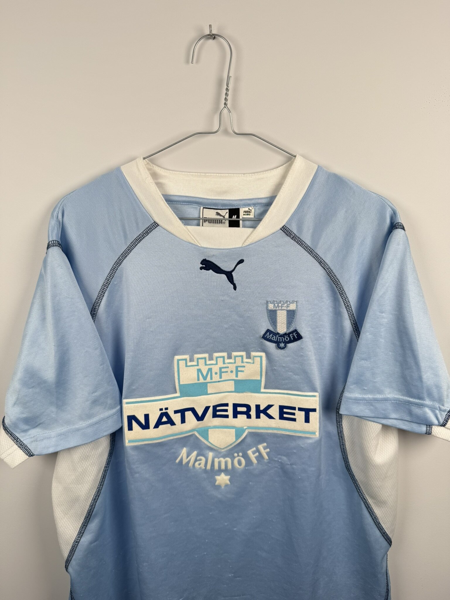 Oryginalna koszulka piłkarska szwedzkiego klubu Malmo FF. Klasyczne połączenie dwóch kolorów, błękitnego i białego, produkcja niemieckiej marki Puma. Idealna koszulka dla fanów skandynawskiego futbolu.