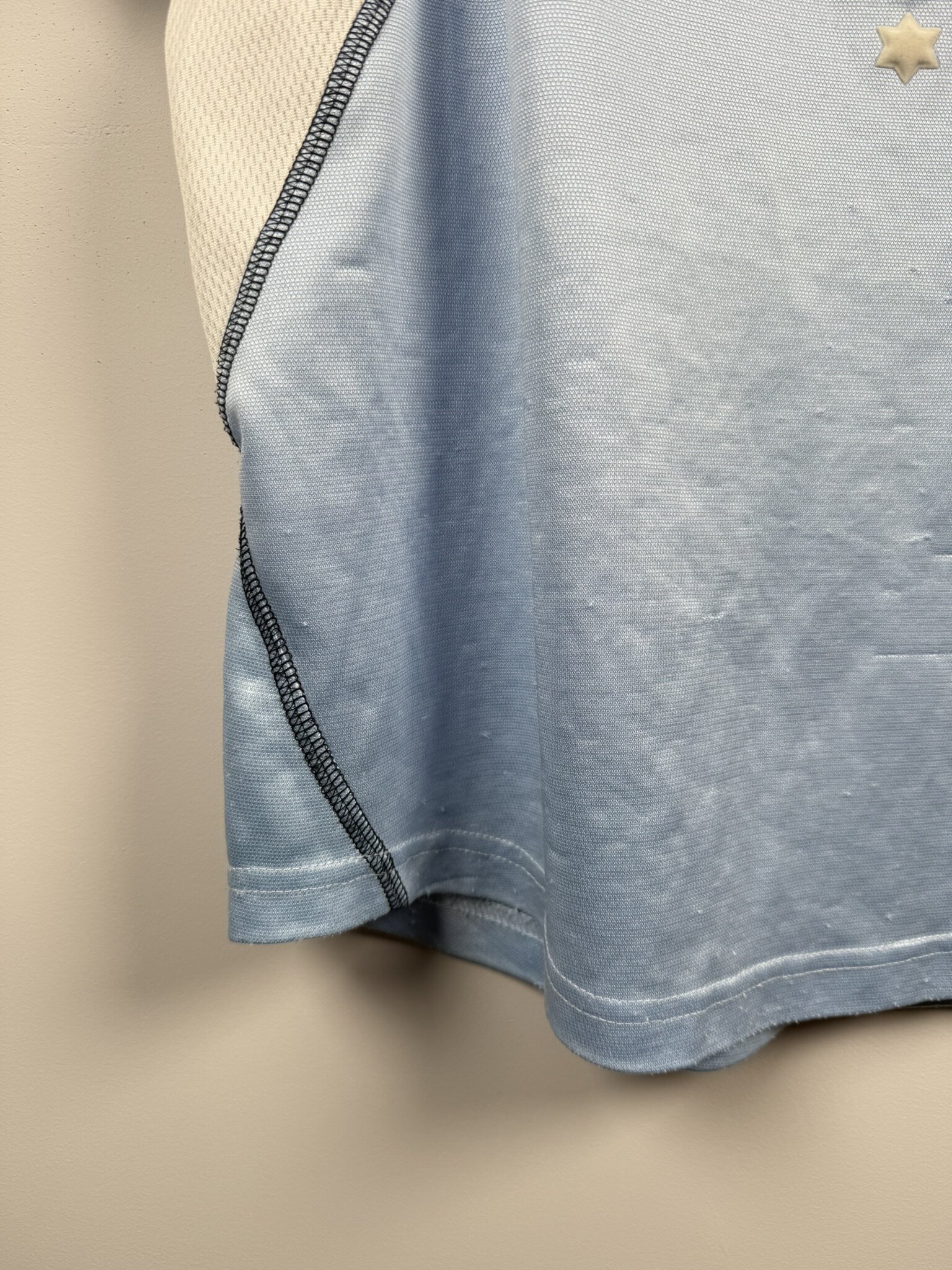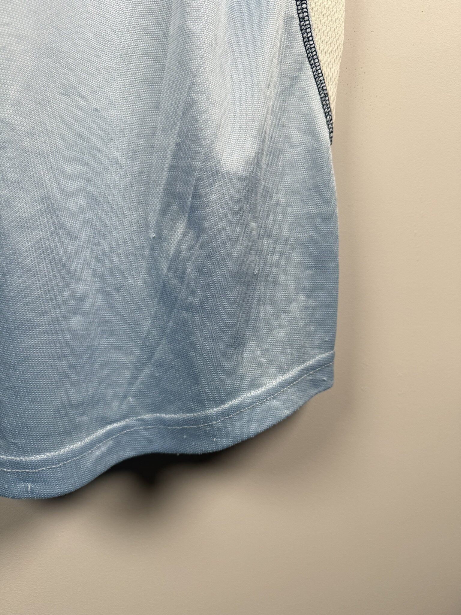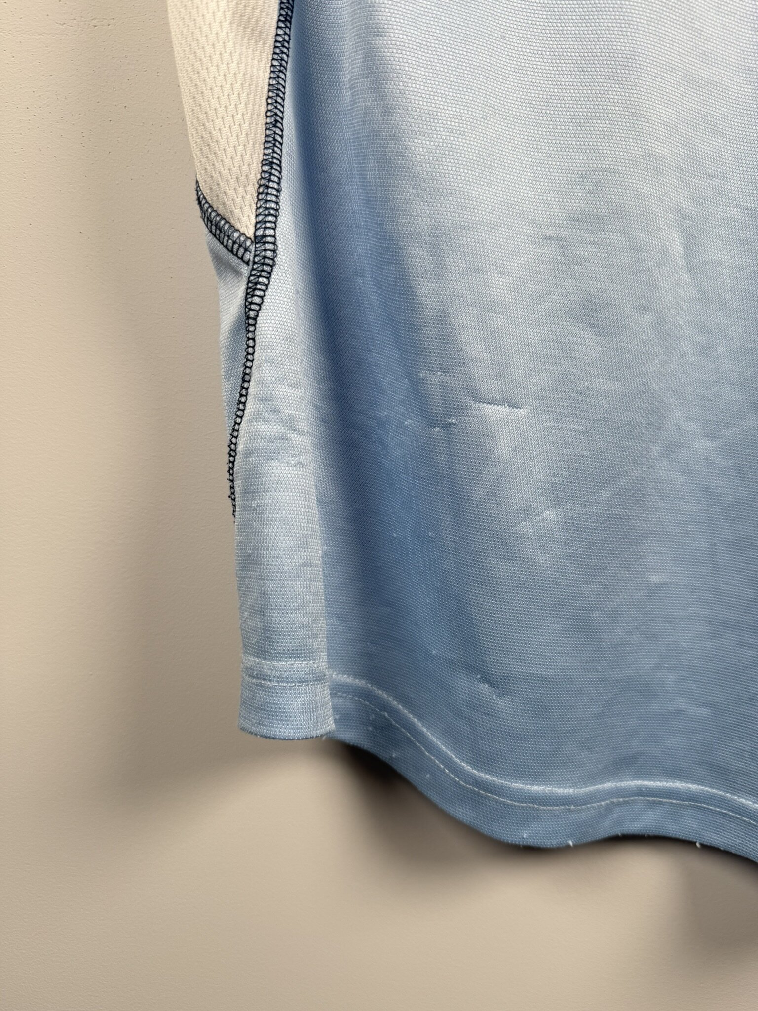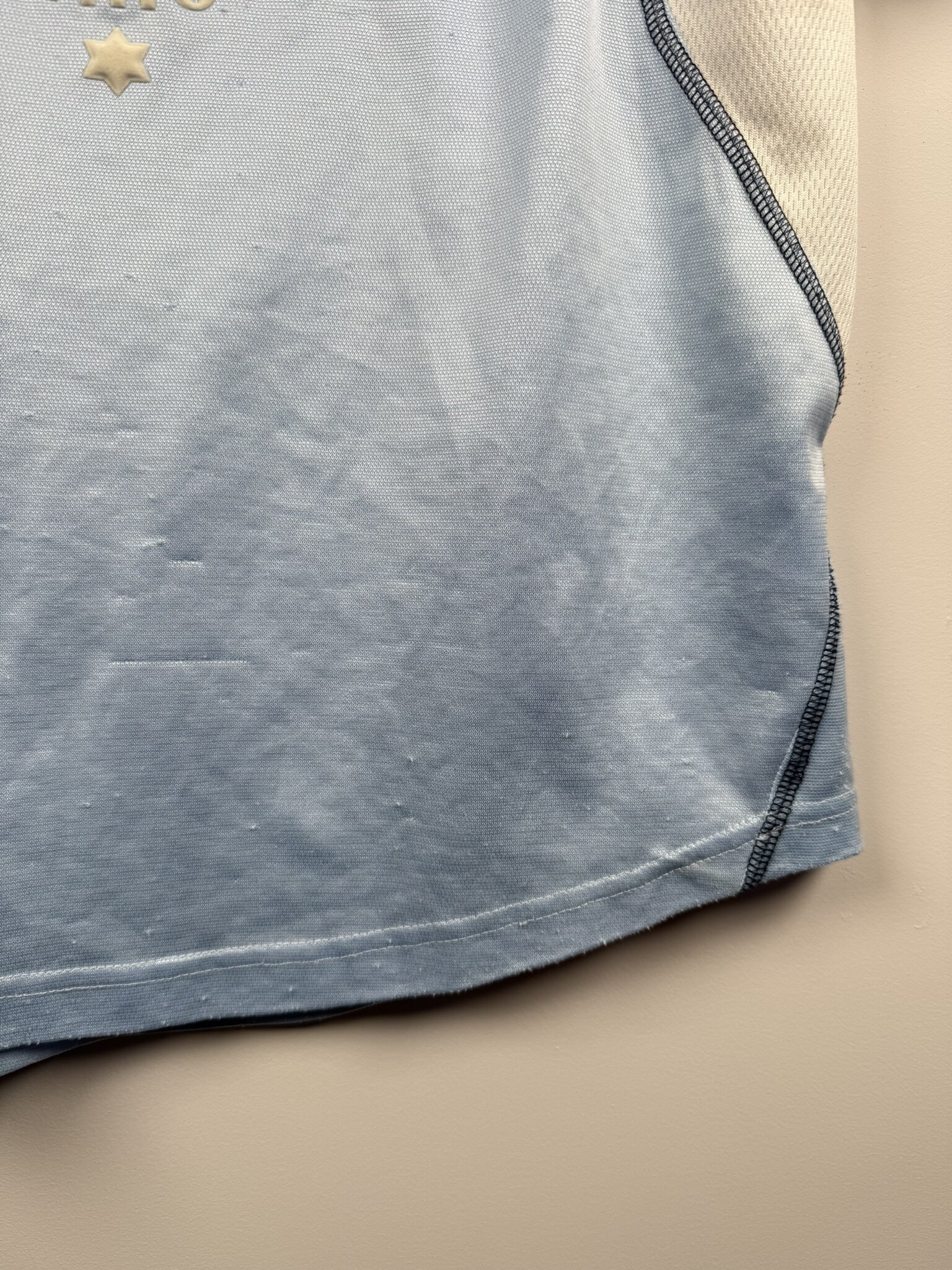 Stan: Słaby – bardzo dużo zaciągnięć oraz nieznacznie uszkodzony nadruk sponsora na froncie.