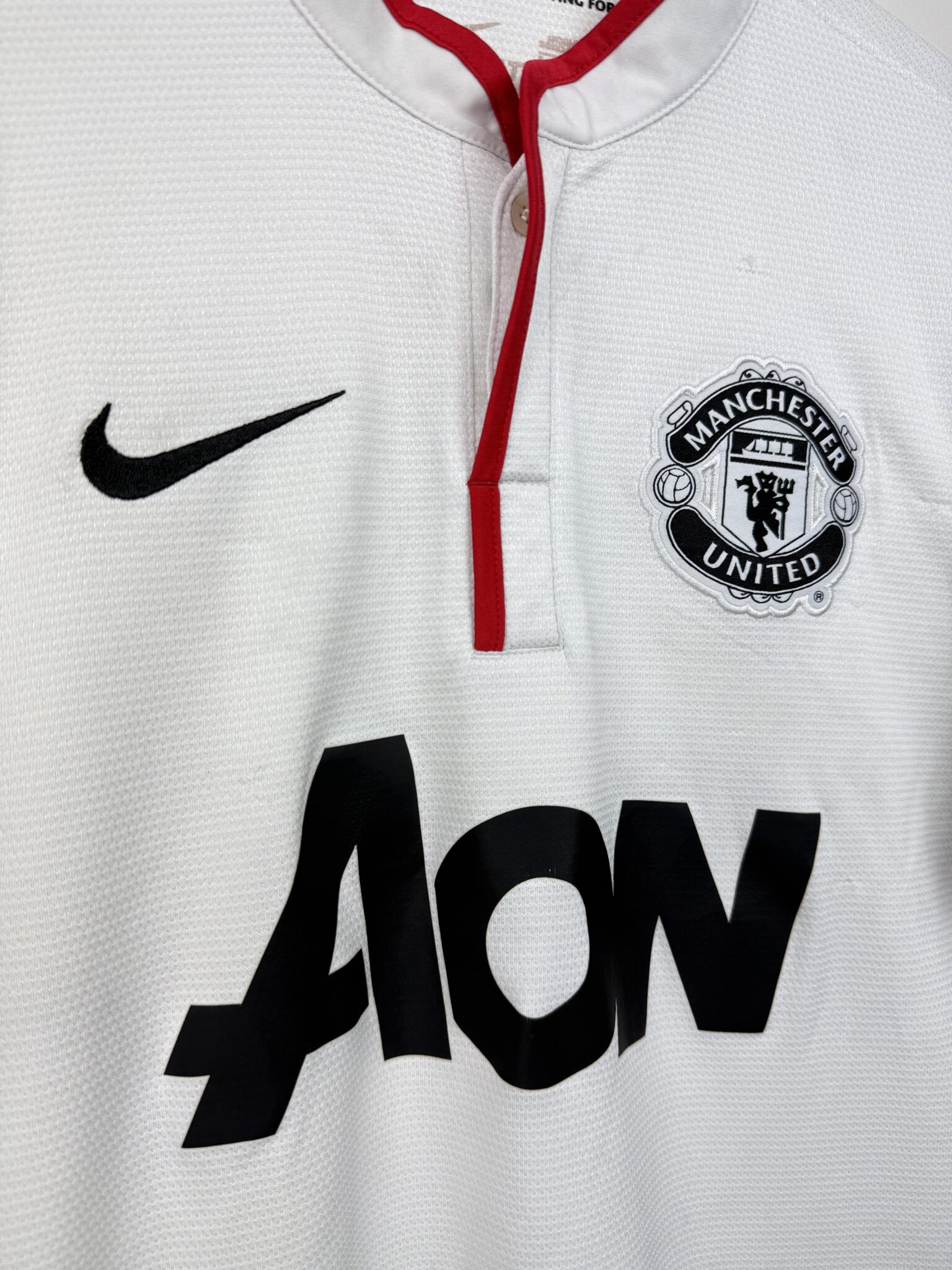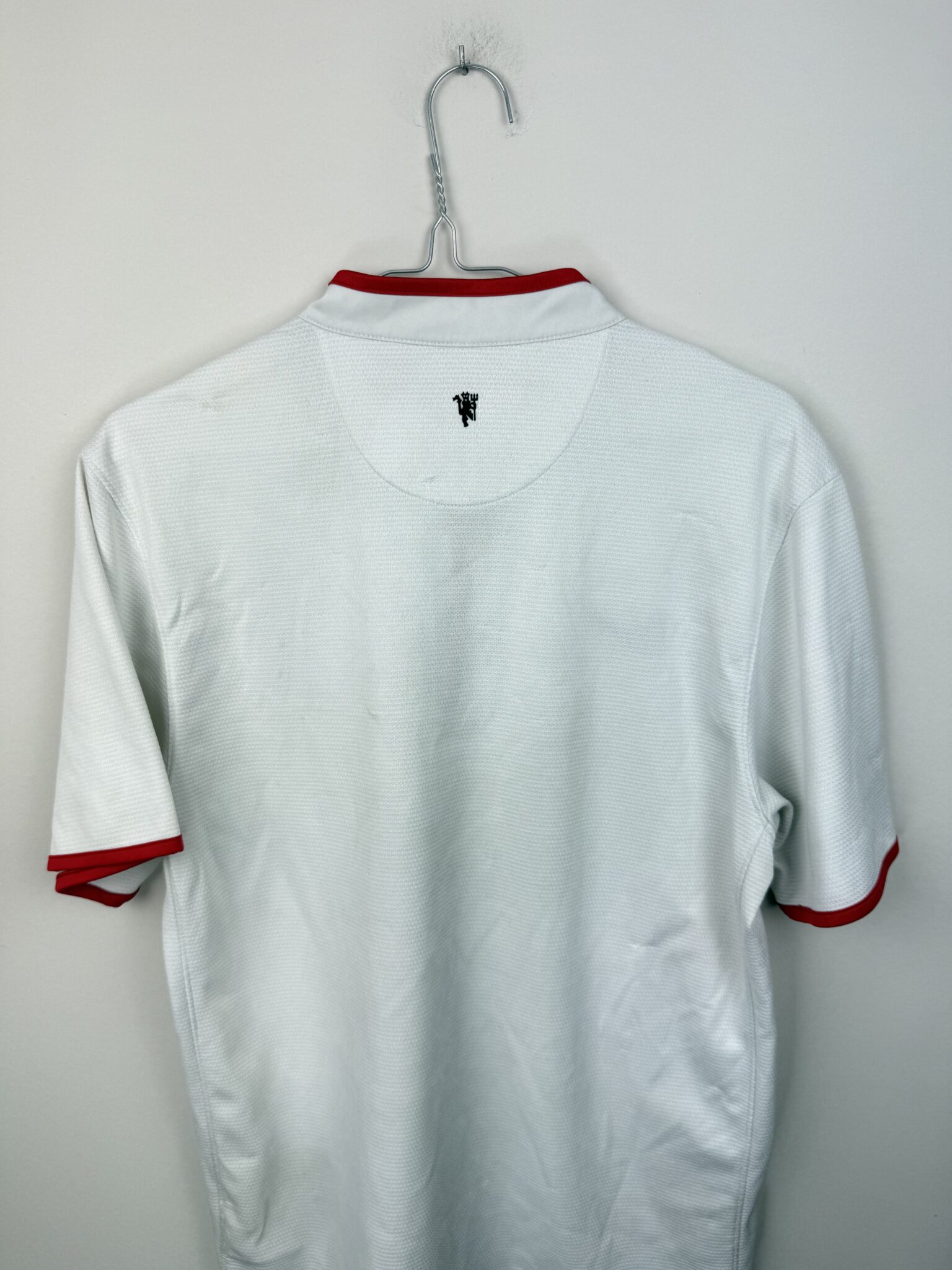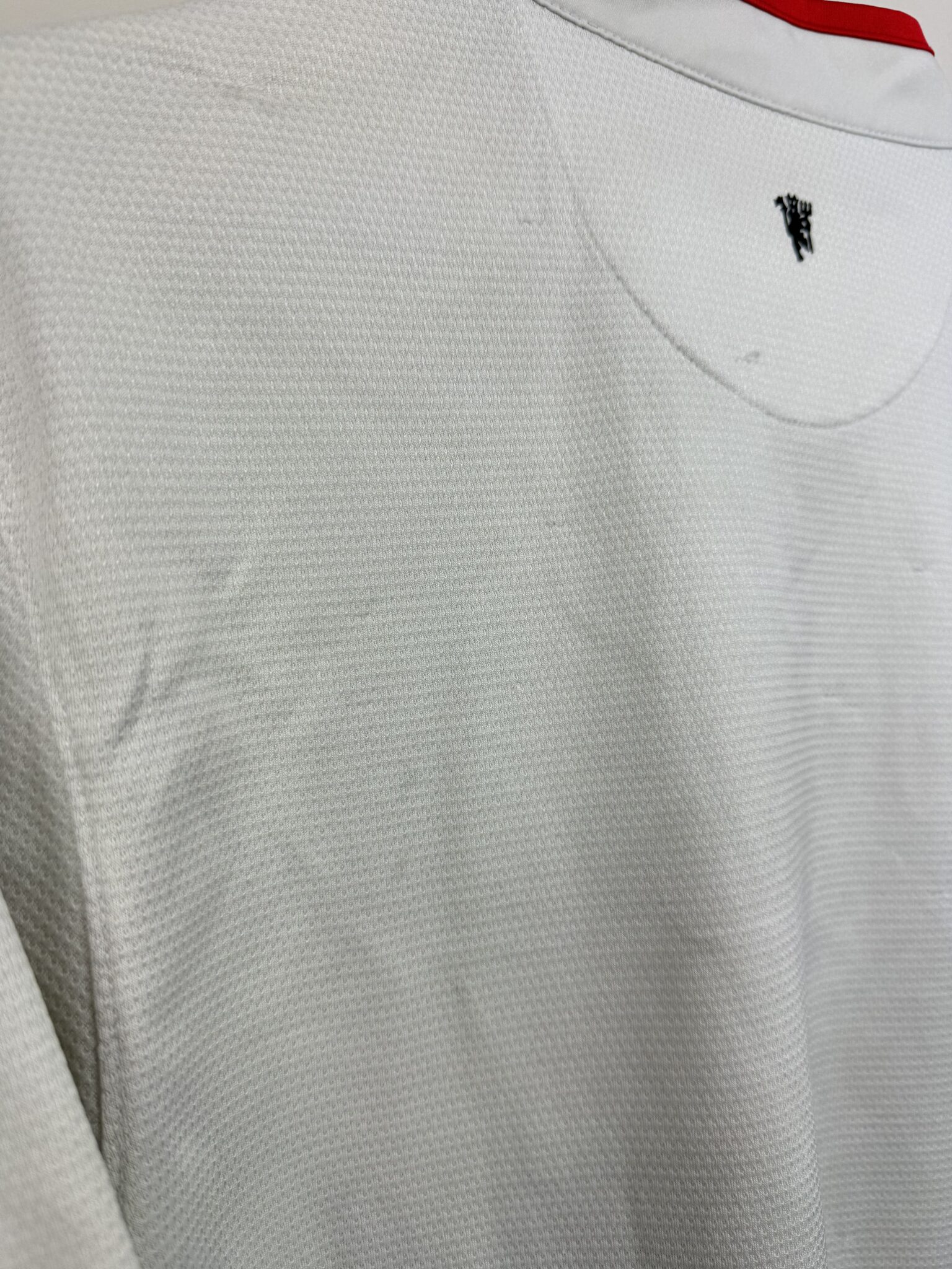 Przedstawiamy wyjątkową wyjazdową koszulkę piłkarską Manchesteru United z sezonu 2012/13, stworzoną przez Nike w eleganckiej, białej kolorystyce z delikatnymi czerwono-czarnymi akcentami. To model, który doskonale łączy klasyczny design Czerwonych Diabłów z nowoczesnymi rozwiązaniami technologicznymi, zapewniającymi komfort i przewiewność zarówno podczas gry, jak i codziennego noszenia. Na piersi widnieje haftowany herb klubu, symbol potęgi i tradycji Old Trafford, a minimalistyczny styl sprawia, że koszulka wyróżnia się ponadczasową estetyką.