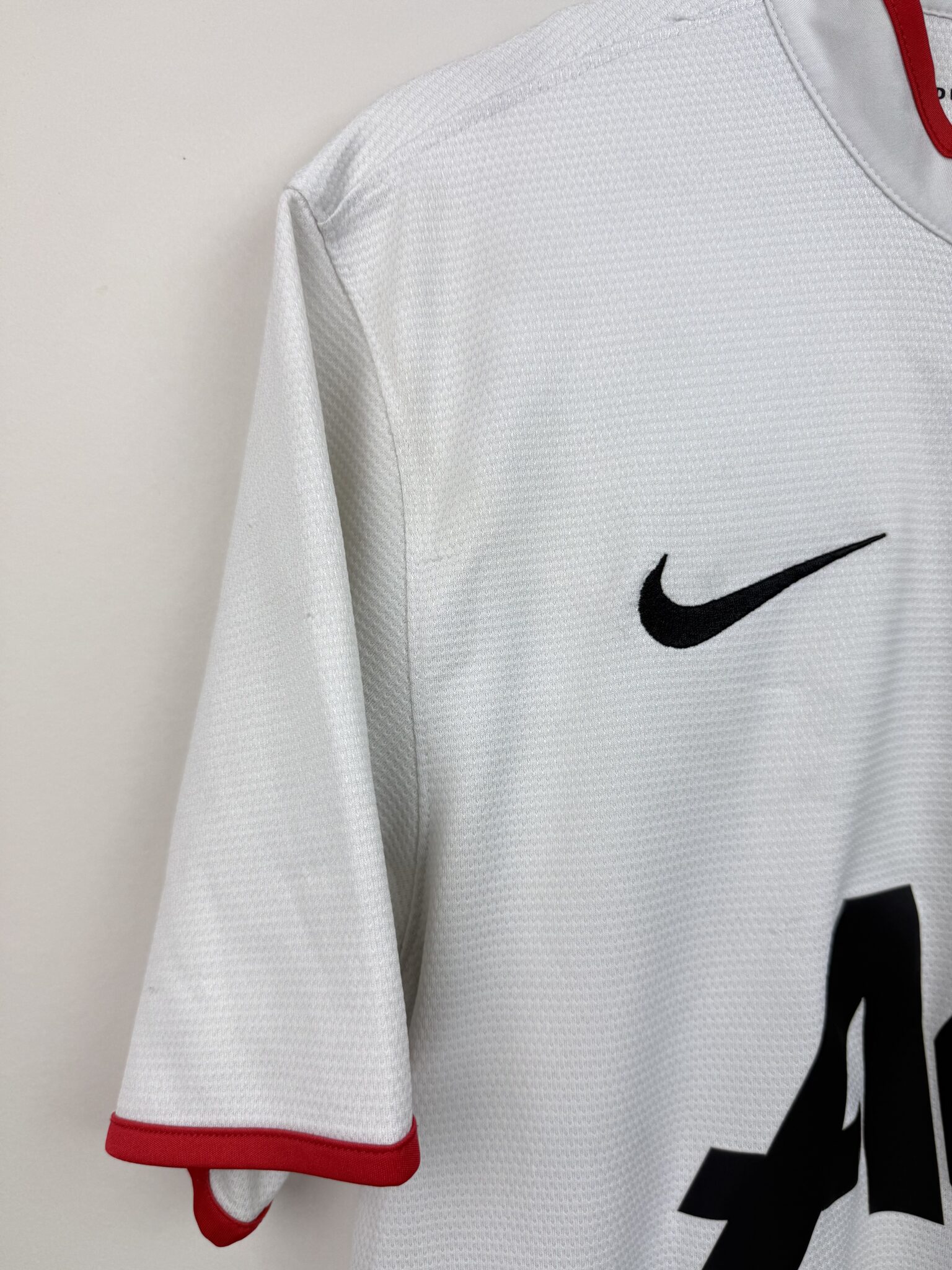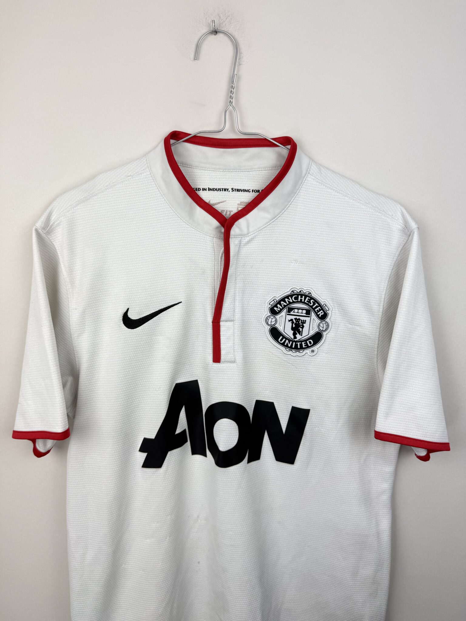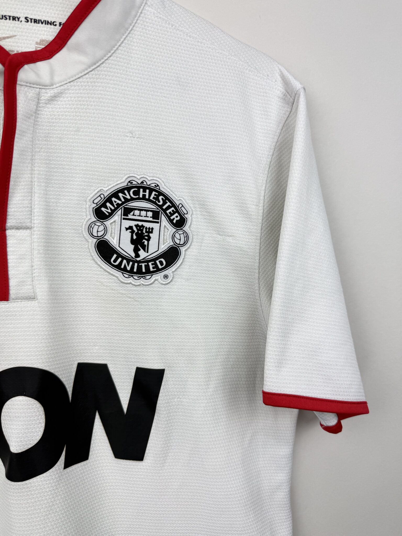 Przedstawiamy wyjątkową wyjazdową koszulkę piłkarską Manchesteru United z sezonu 2012/13, stworzoną przez Nike w eleganckiej, białej kolorystyce z delikatnymi czerwono-czarnymi akcentami. To model, który doskonale łączy klasyczny design Czerwonych Diabłów z nowoczesnymi rozwiązaniami technologicznymi, zapewniającymi komfort i przewiewność zarówno podczas gry, jak i codziennego noszenia. Na piersi widnieje haftowany herb klubu, symbol potęgi i tradycji Old Trafford, a minimalistyczny styl sprawia, że koszulka wyróżnia się ponadczasową estetyką.