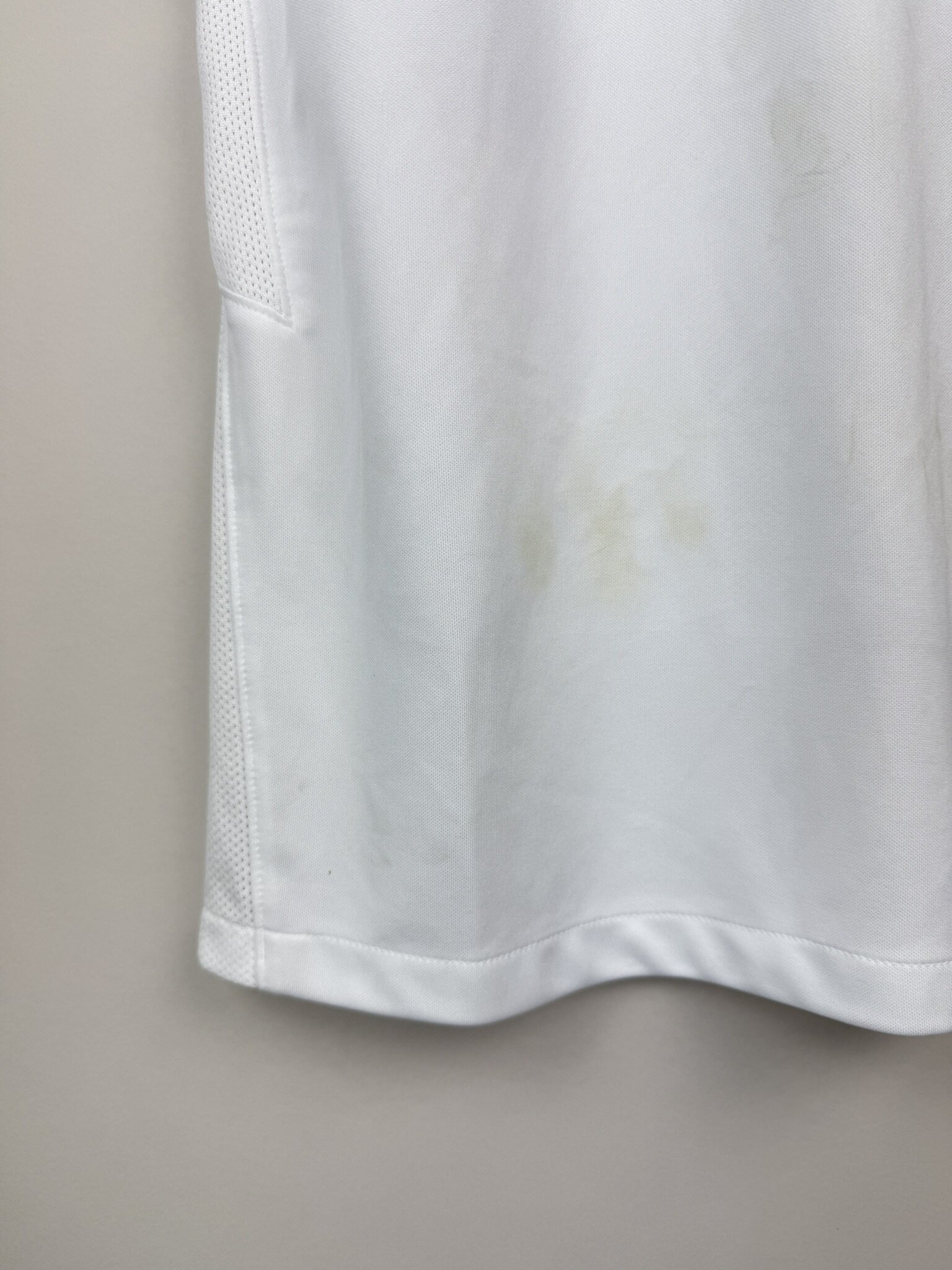 Stan: Zadowalający – zabrudzenia na froncie oraz poszarpany materiał z boku koszulki.