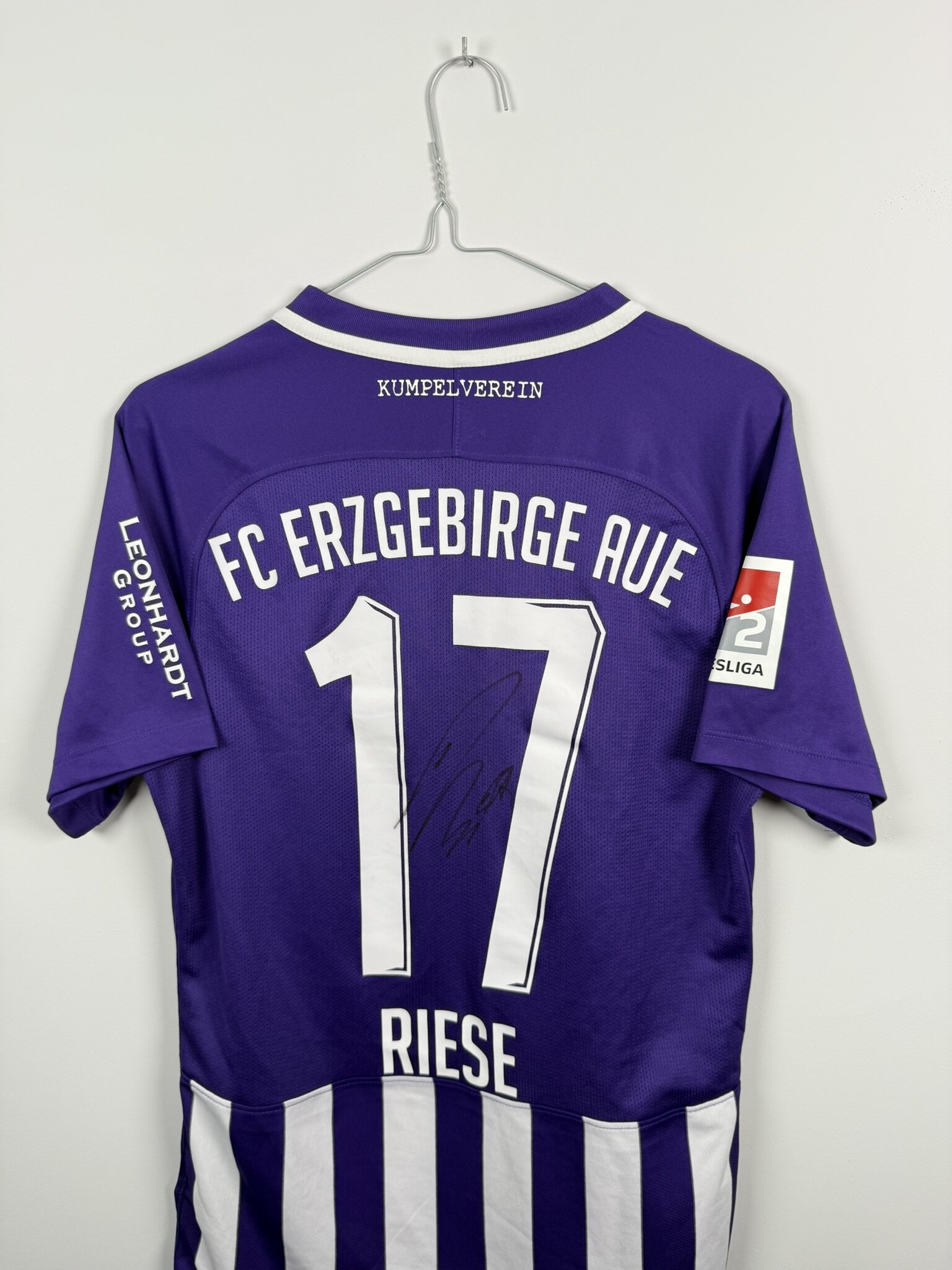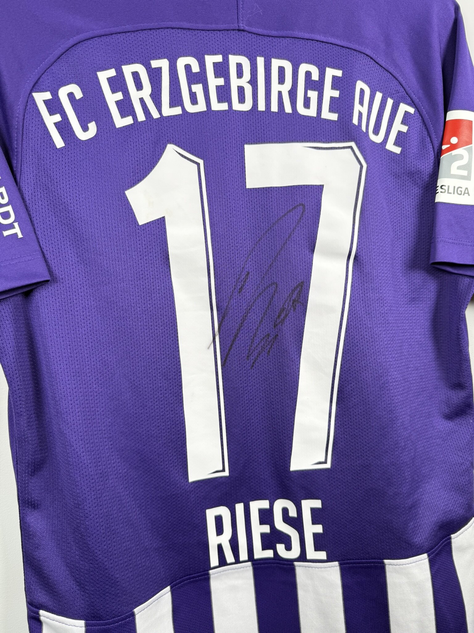 Koszulka pochodzi z czasów gry w 2. Bundeslidze, to gratka dla fanów niemieckiego futbolu i klubu z Saksonii. W klasycznym fioletowym kolorze, z białymi wstawkami i nazwiskiem Philippa Riese, zawodnika który występuje w barwach tego klubu nieprzerwanie od 2015 roku.