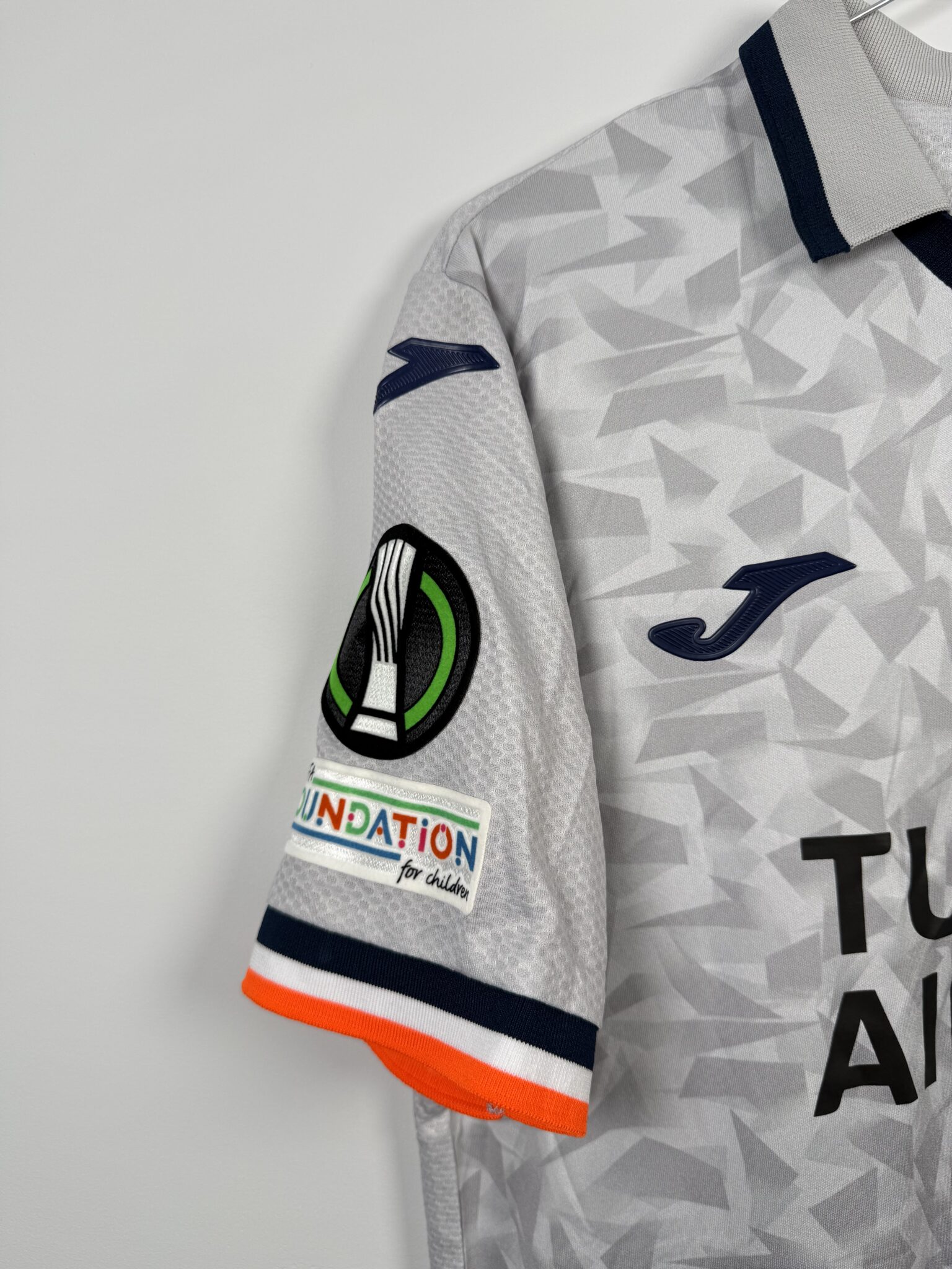 Oryginalna trzecia koszulka piłkarska Istanbul Basaksehir z sezonu 2022/23 to unikalny model produkcji hiszpańskiej marki Joma, zaprojektowany specjalnie na mecze w Lidze Konferencji Europy. Jest to wersja meczowa, charakteryzująca się lekkim, oddychającym materiałem o podwyższonych właściwościach technicznych, który gwarantuje maksymalny komfort w trakcie gry na najwyższym poziomie. Na plecach widnieje oficjalny nadruk Patryka Szysza, polskiego napastnika, który dołączył do zespołu Basaksehir, wnosząc do drużyny świeżość i ofensywną jakość.