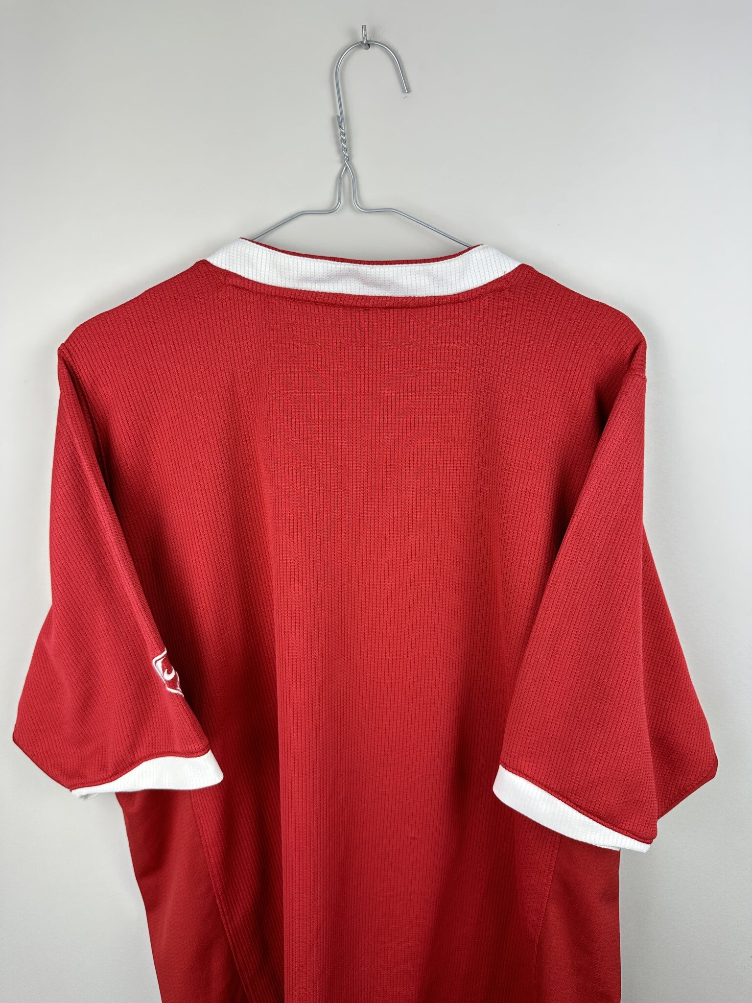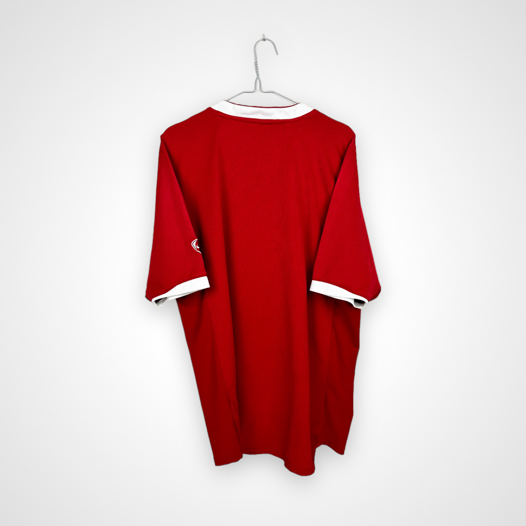 Stan: Dobry – nieznacznie popękane nadruki sponsora na froncie, ponadto kilka niewielkich zaciągnięć.