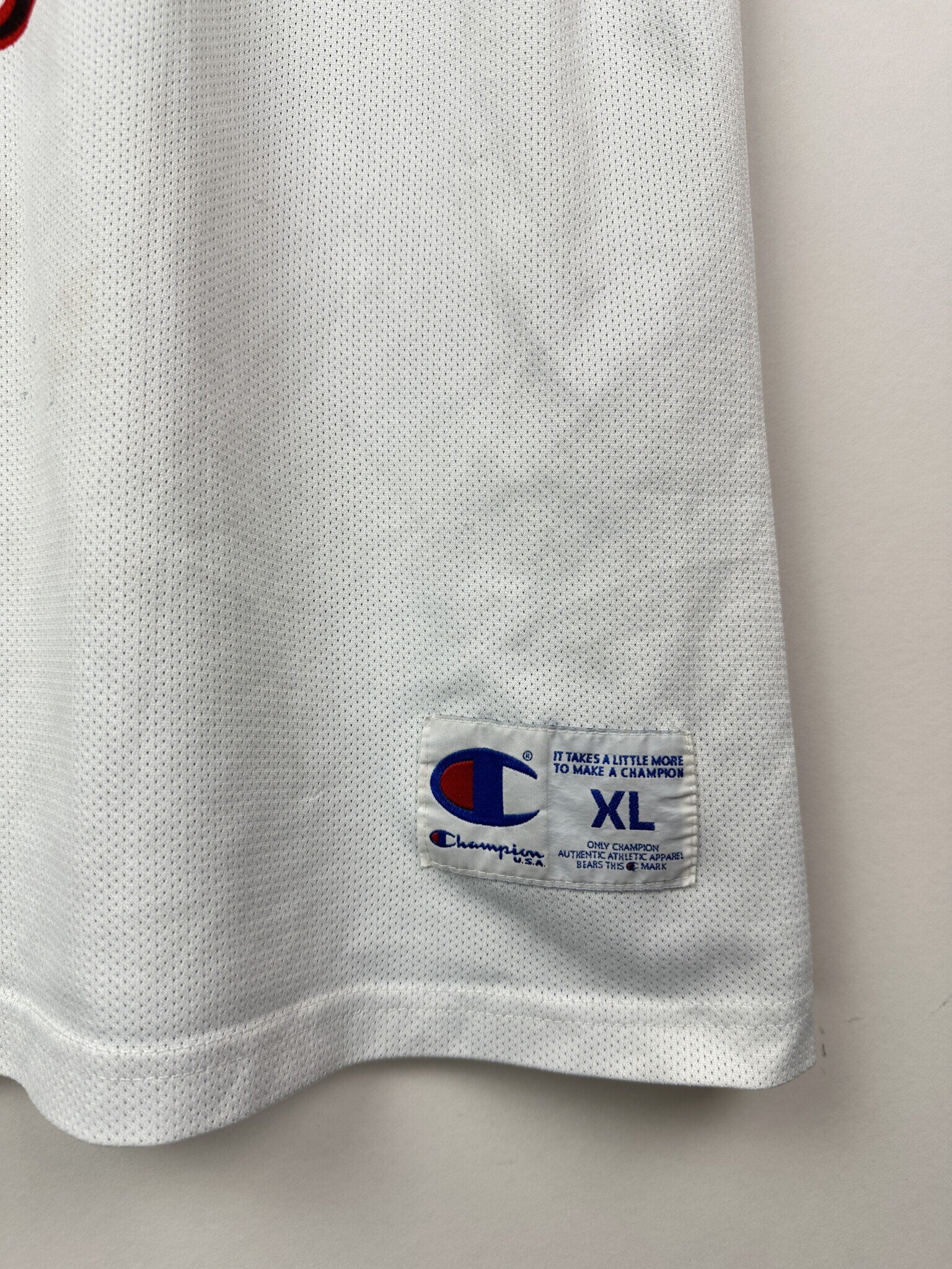 Stan: Zadowalający – subtelna plama na froncie oraz kilka mikro zaciągnięć, ponadto jersey stracił swój naturalny kolor, przez co jest nieco zszarzały.