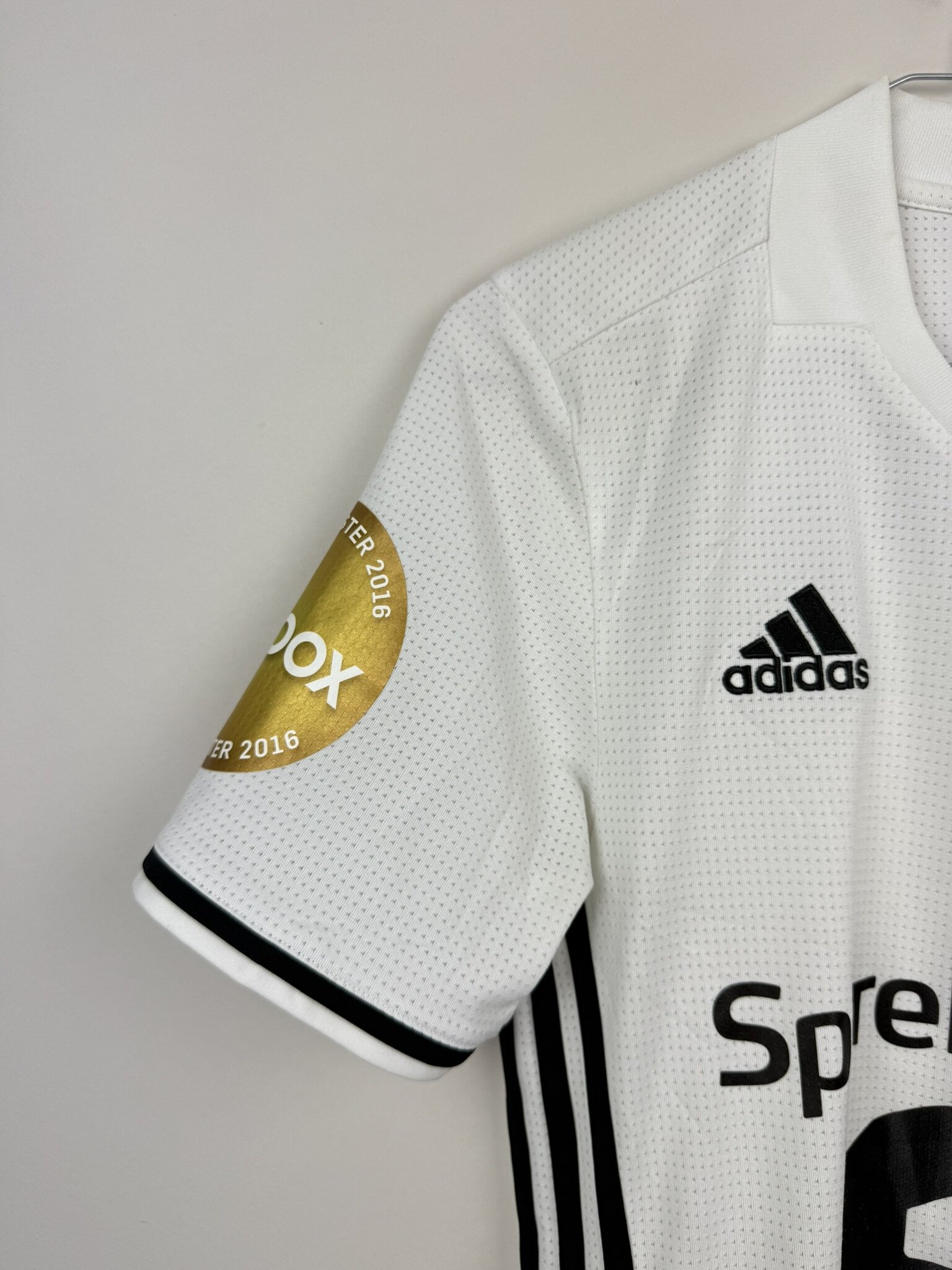 Koszulka została wykonana w wersji Adizero, czyli identycznej jak ta, którą nosili piłkarze na boisku – z lekkiego, technicznego materiału i detalami charakterystycznymi dla wersji meczowych, jak cieńsze szwy, specjalna siateczka wentylacyjna czy termotransferowe logo Adidasa i herbu klubu.