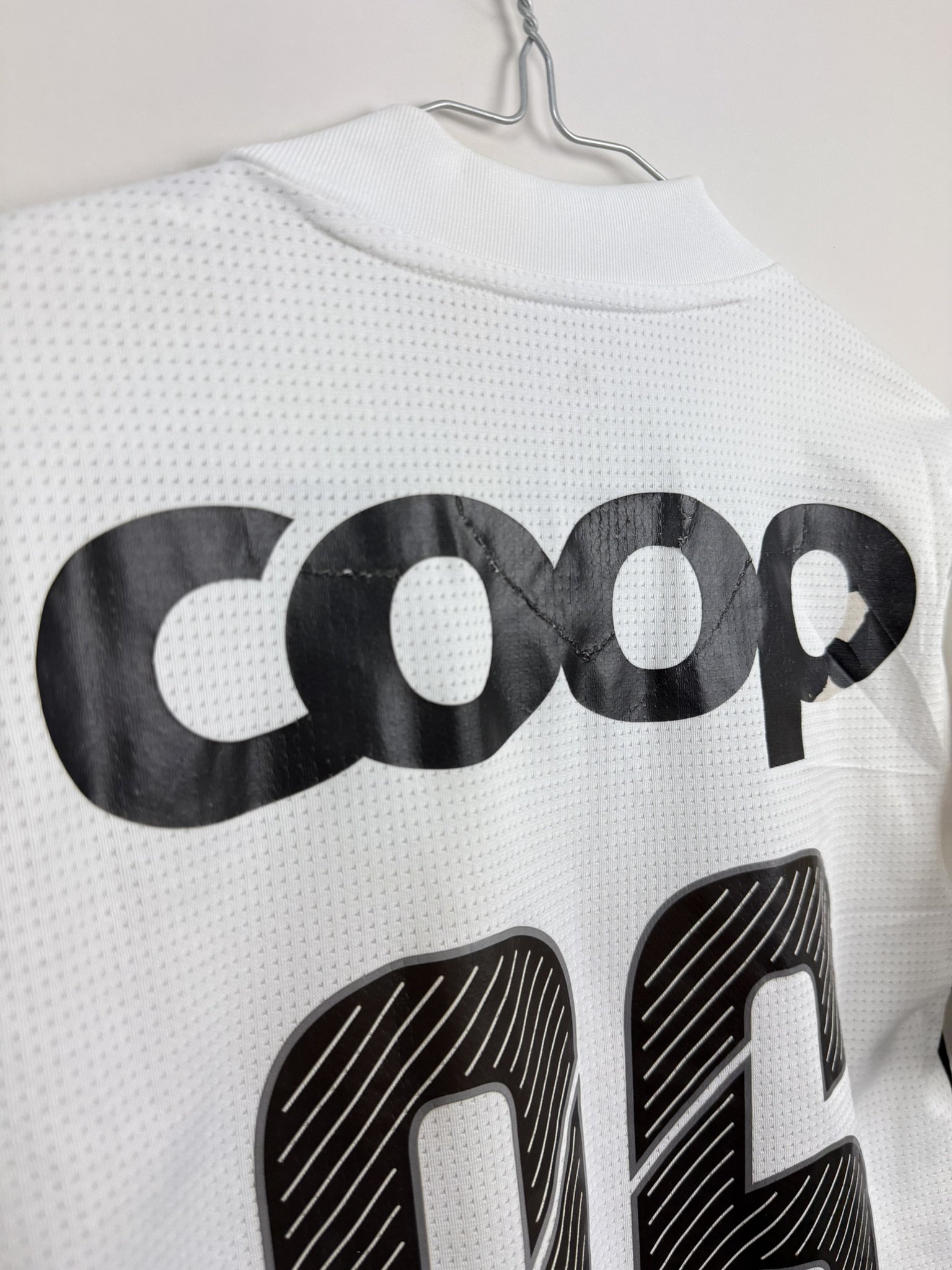 Stan: Zadowalający – kilka mikro plamek na froncie oraz uszkodzony nadruk sponsora na plecach.