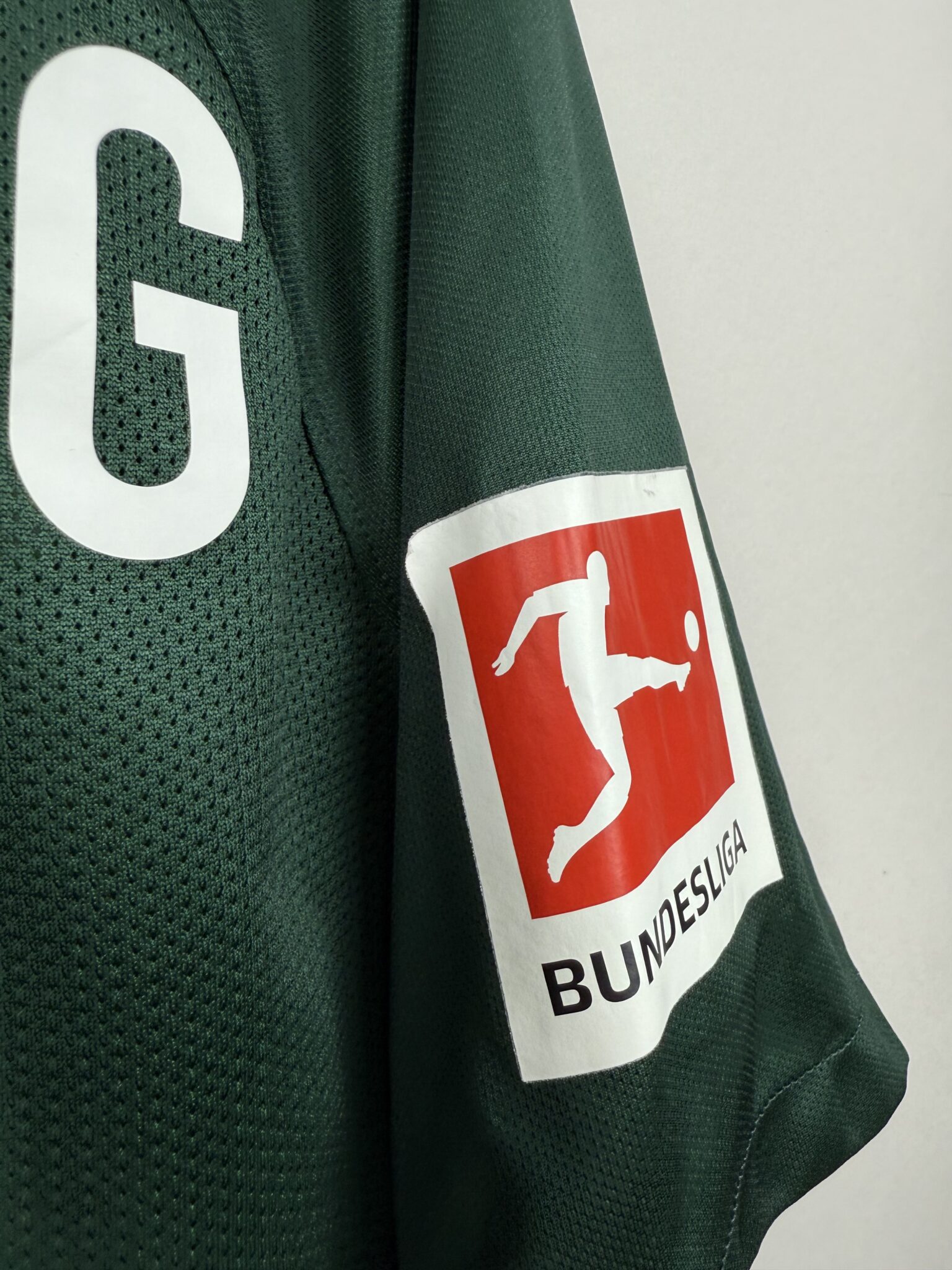 Stan: Dobry – nieznacznie uszkodzony nadruk sponsora na froncie oraz odklejający się patch Bundesligi na rękawku.