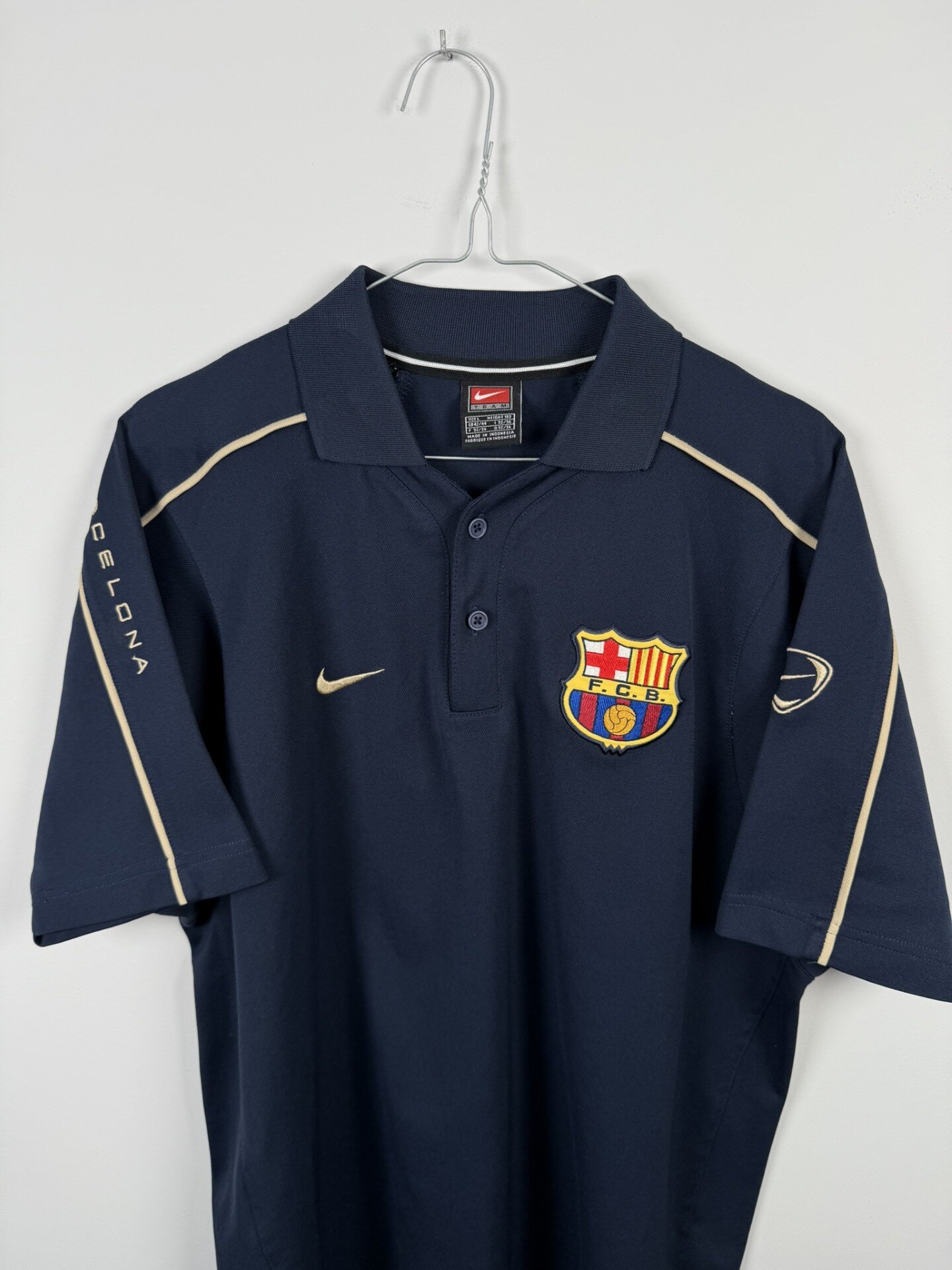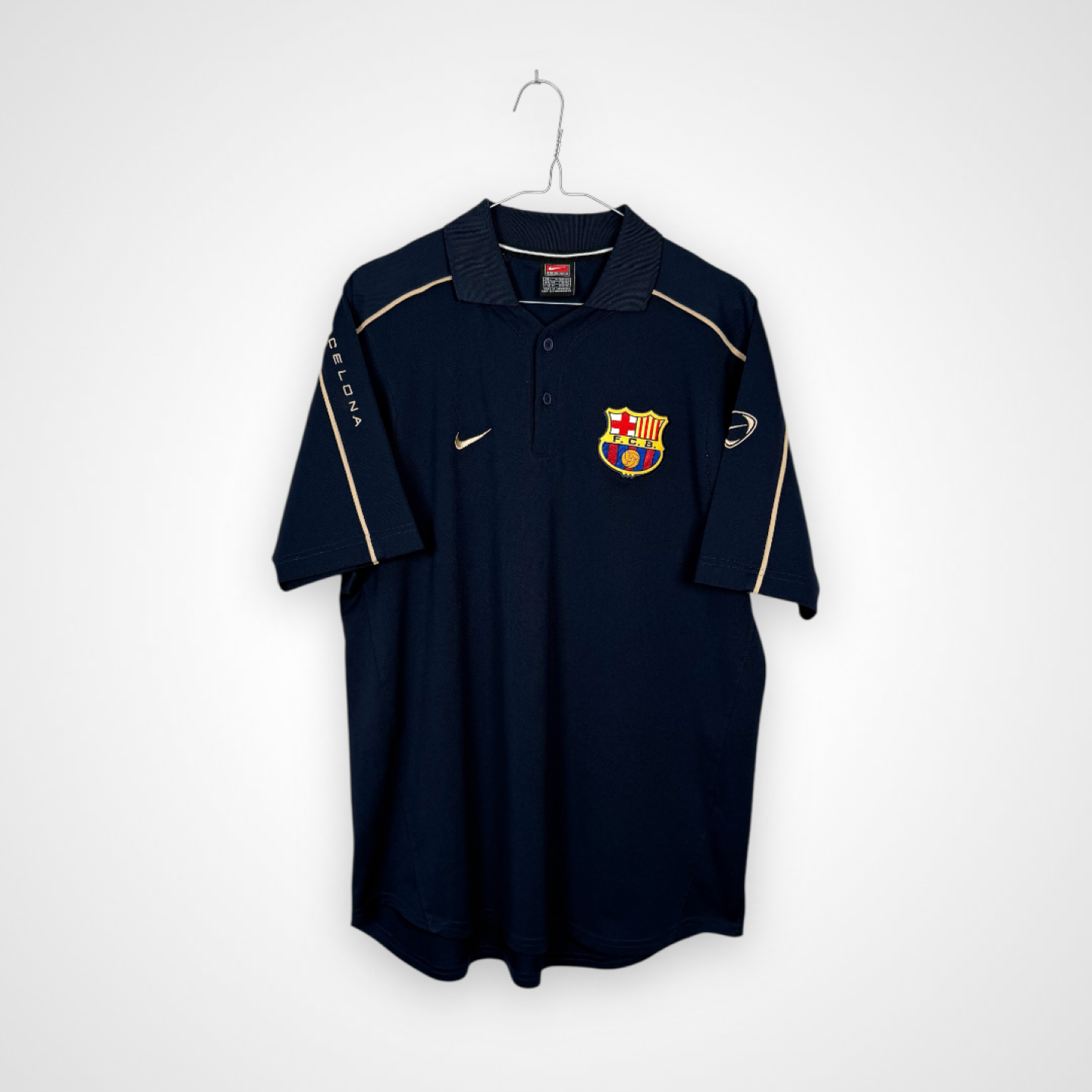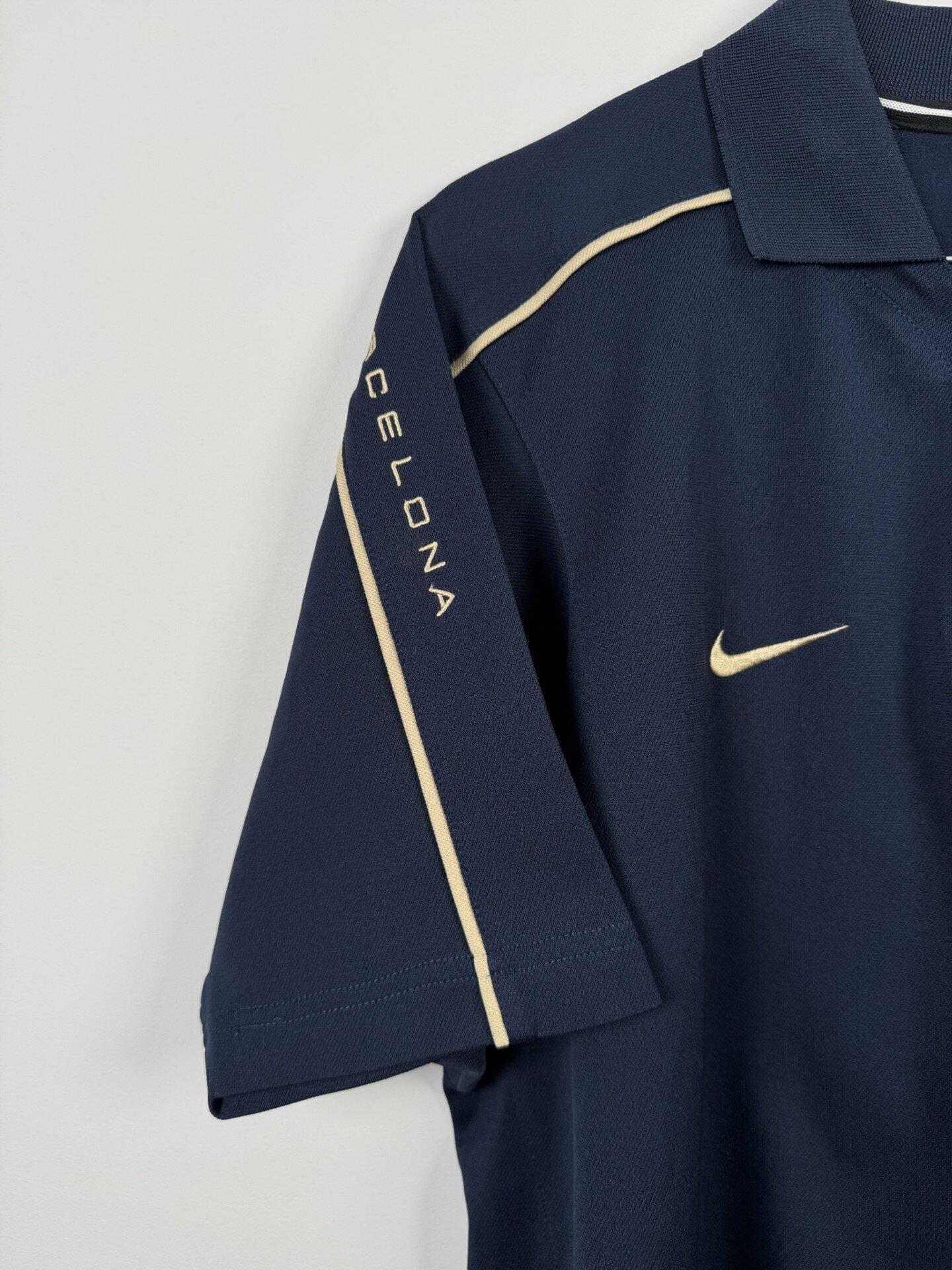 Sezon 2000/01 to czas rywalizacji Barcelony na krajowej i europejskiej arenie, a odzież z tego okresu produkowana przez Nike cieszy się dziś statusem kultowej wśród kolekcjonerów. Granatowe polo z dyskretnymi, złotymi detalami jest jednym z bardziej wyjątkowych projektów tamtej epoki.