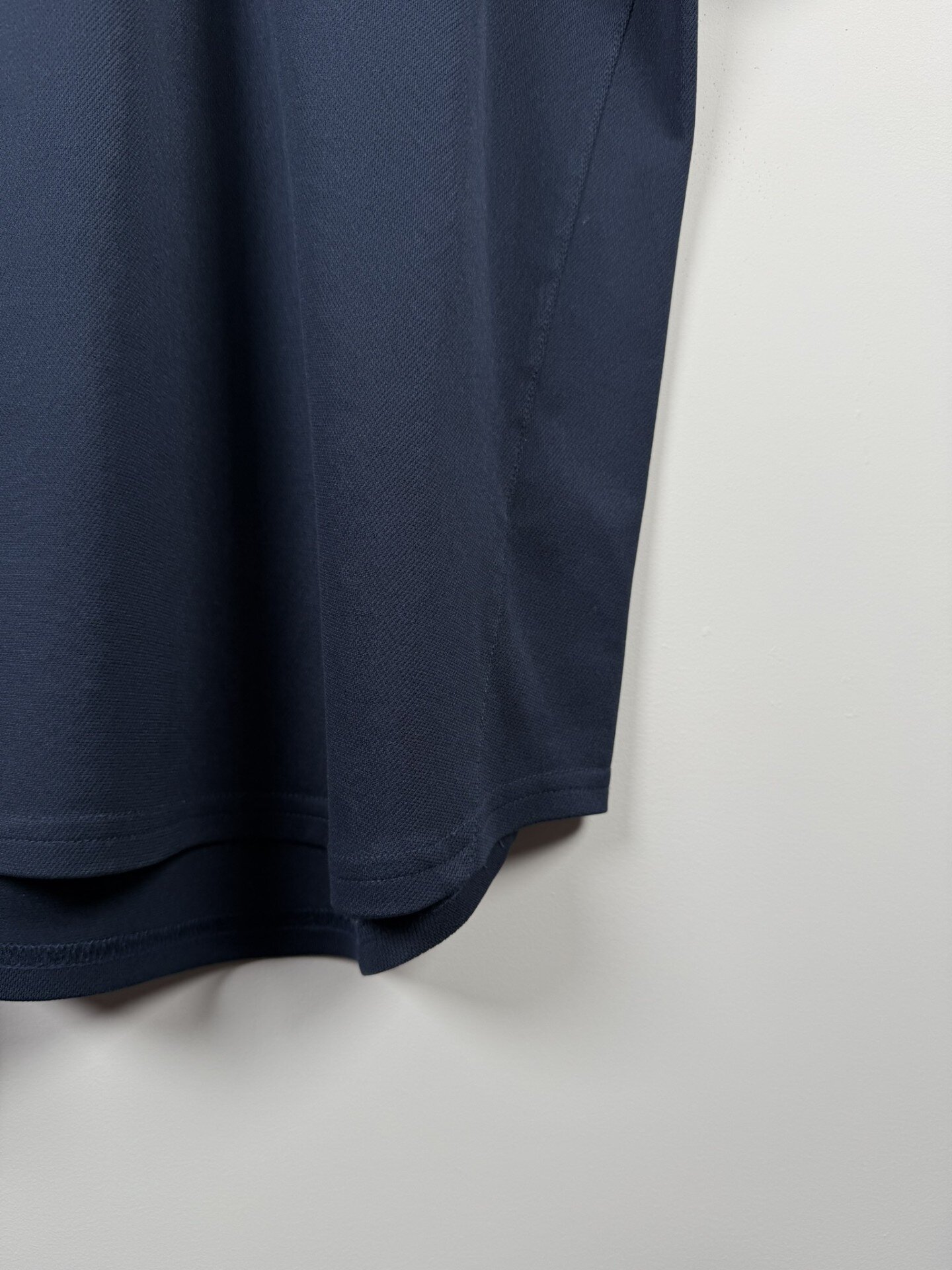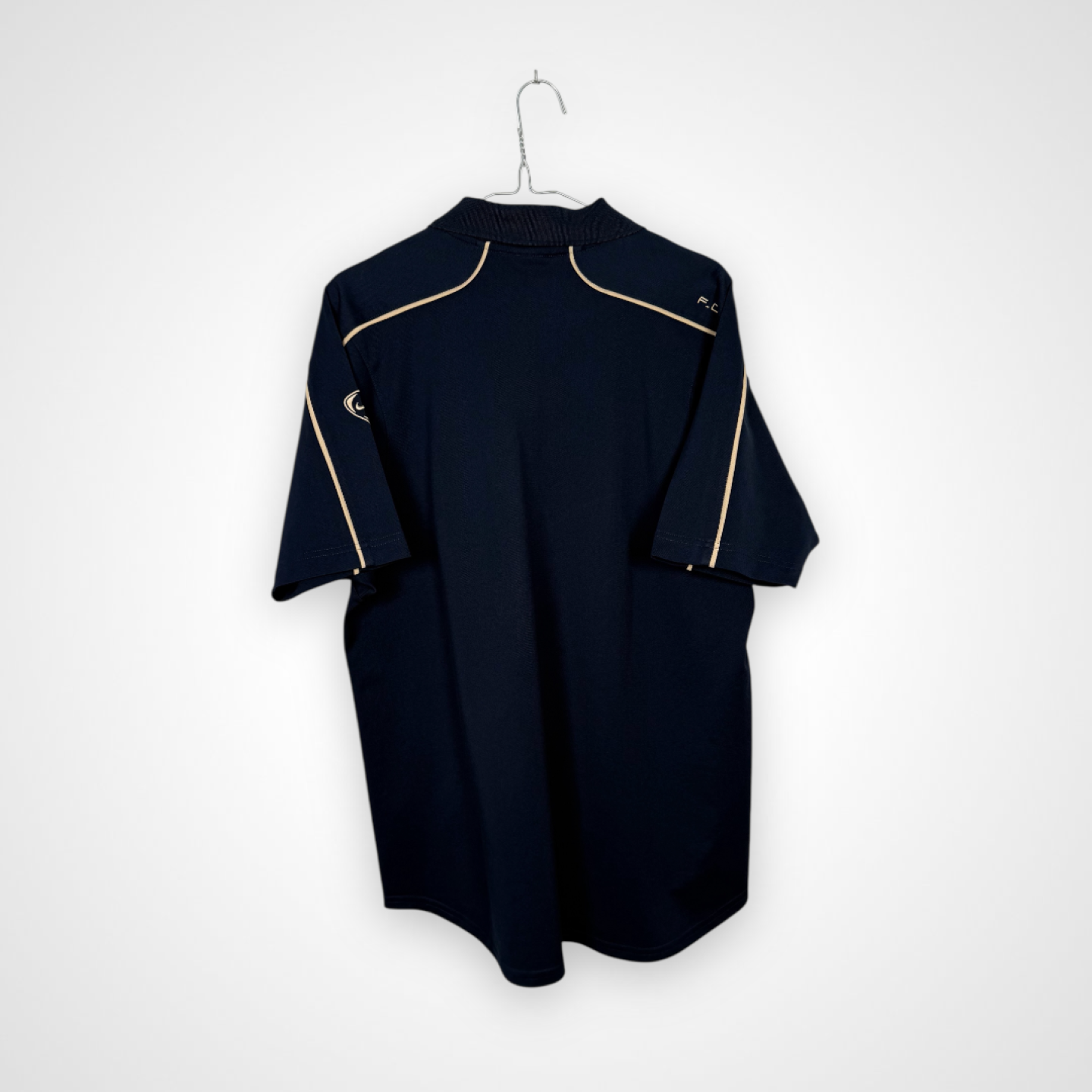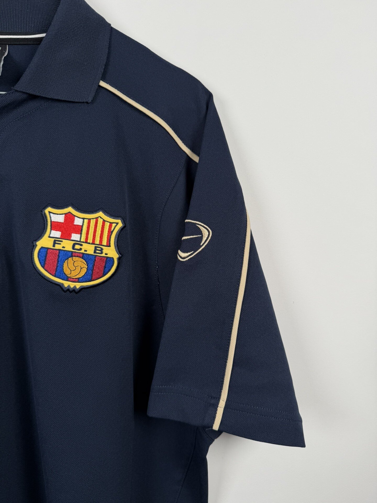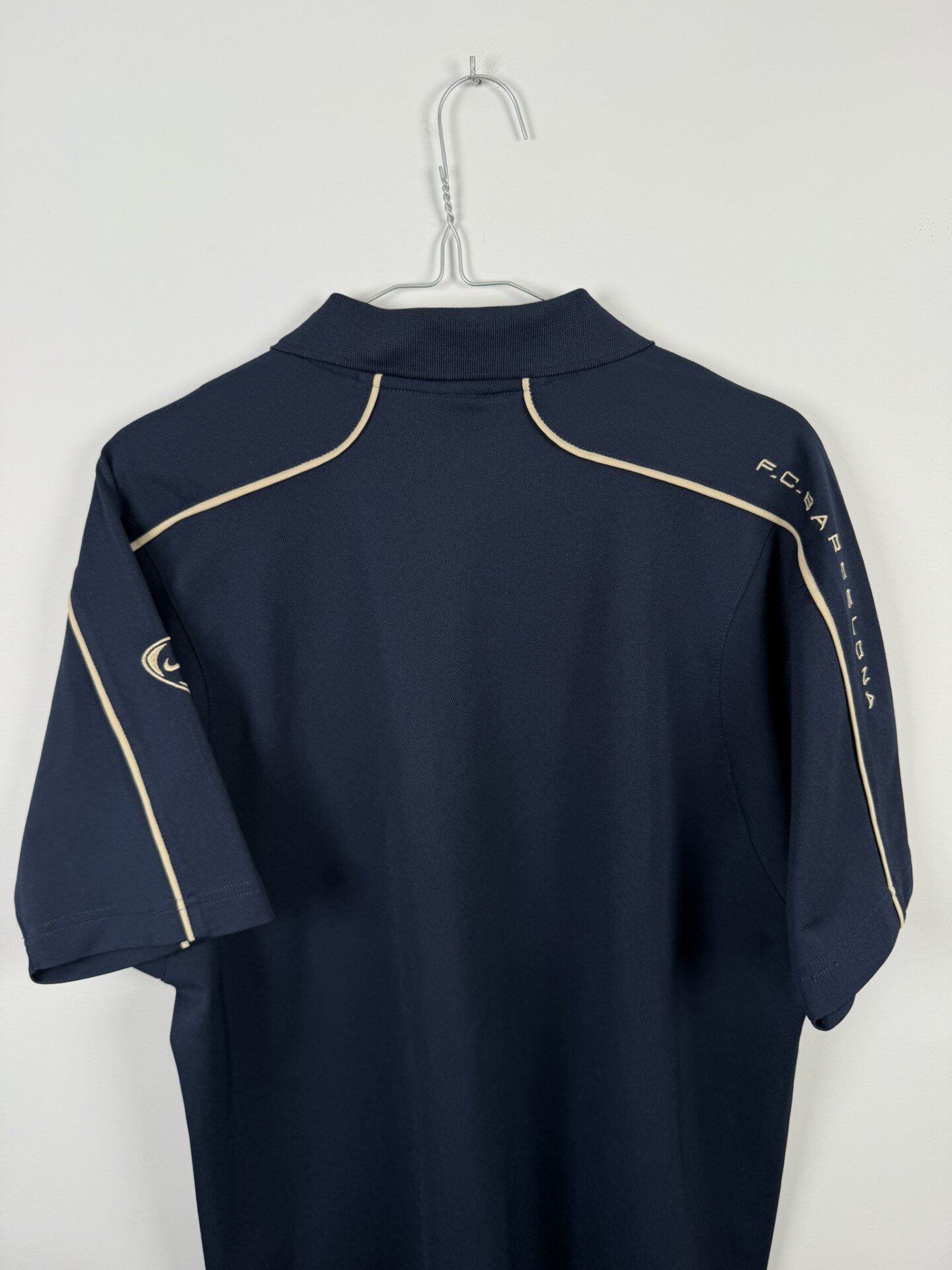 Sezon 2000/01 to czas rywalizacji Barcelony na krajowej i europejskiej arenie, a odzież z tego okresu produkowana przez Nike cieszy się dziś statusem kultowej wśród kolekcjonerów. Granatowe polo z dyskretnymi, złotymi detalami jest jednym z bardziej wyjątkowych projektów tamtej epoki.