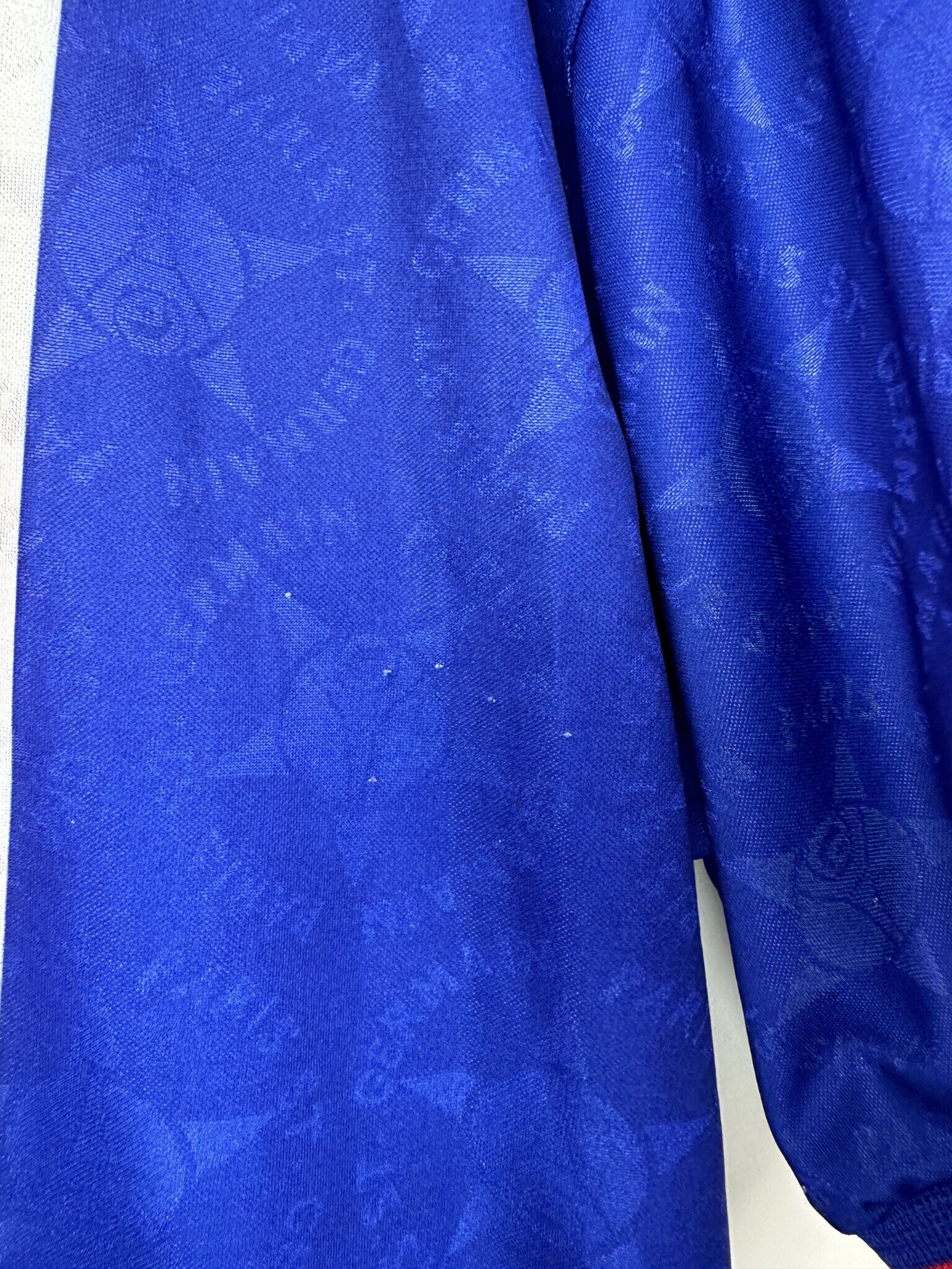 Stan: Bardzo dobry – kilka mikro zaciągnięć oraz nieznacznie pozrywany szew u dołu koszulki na froncie.