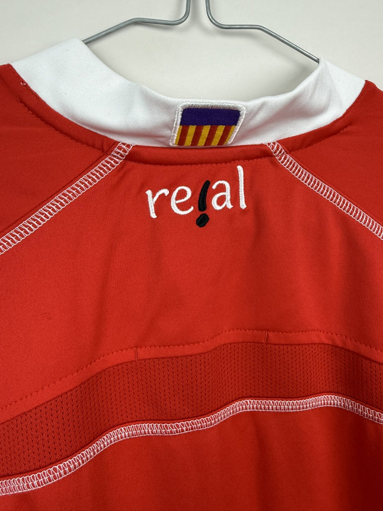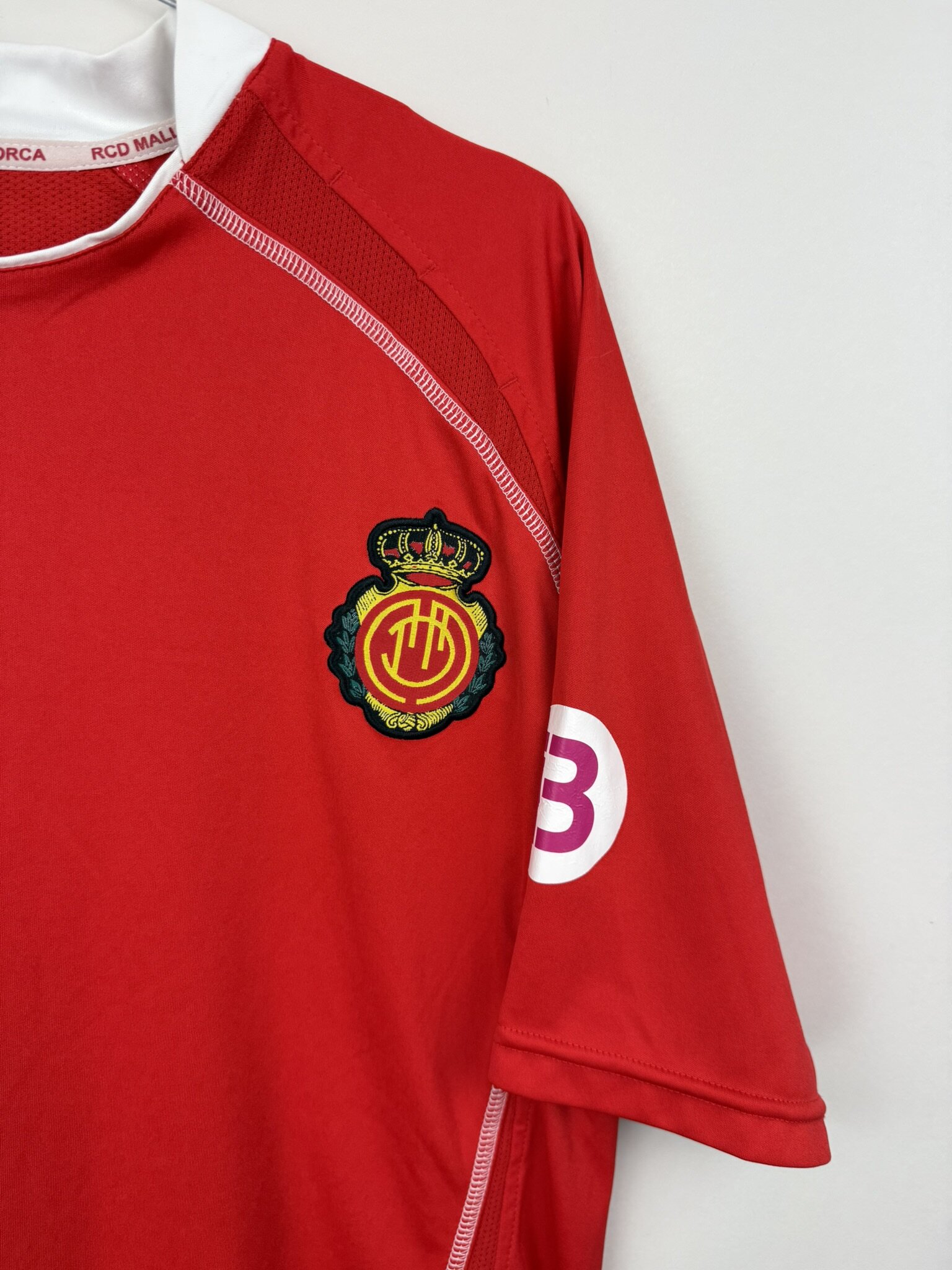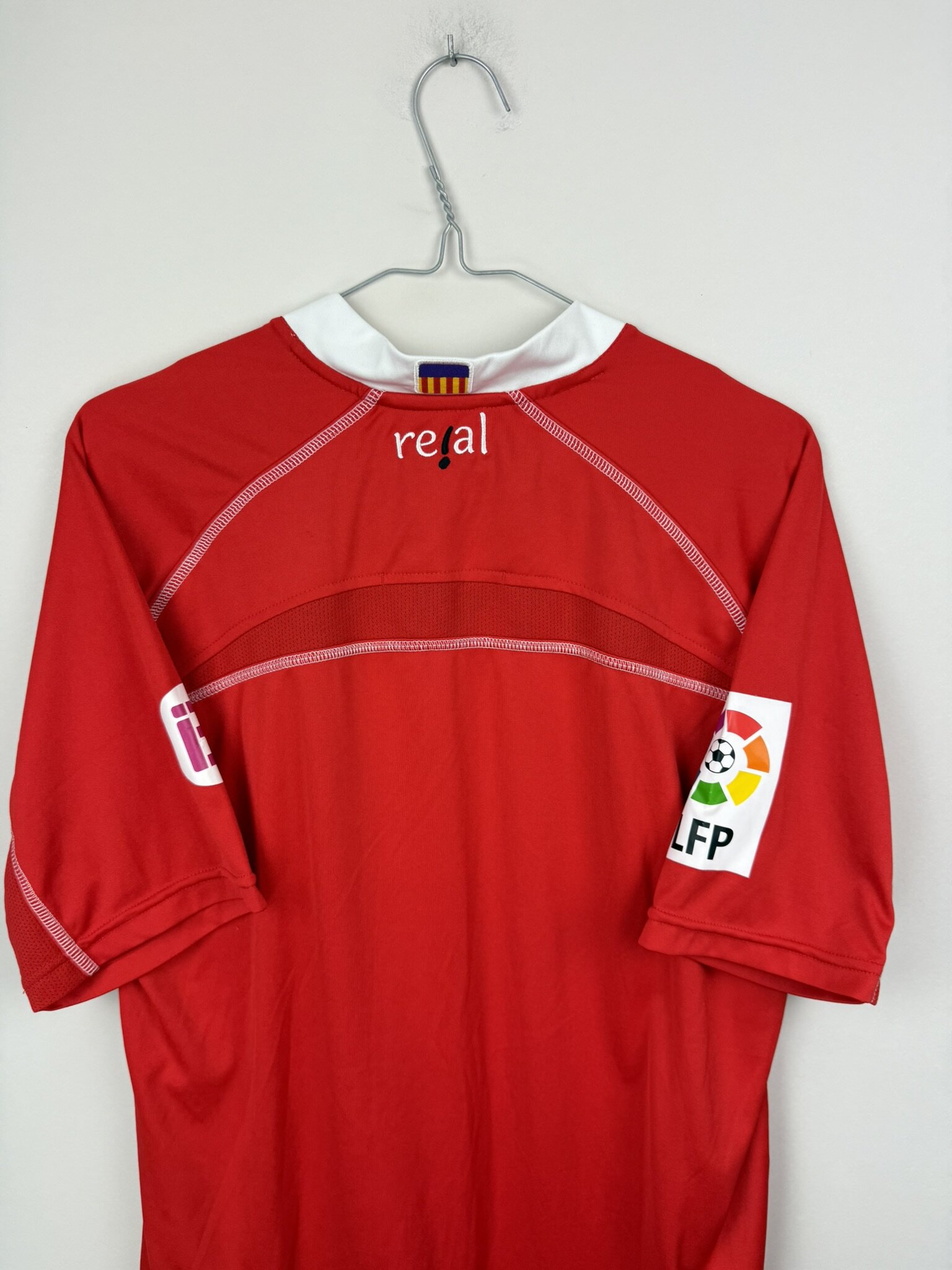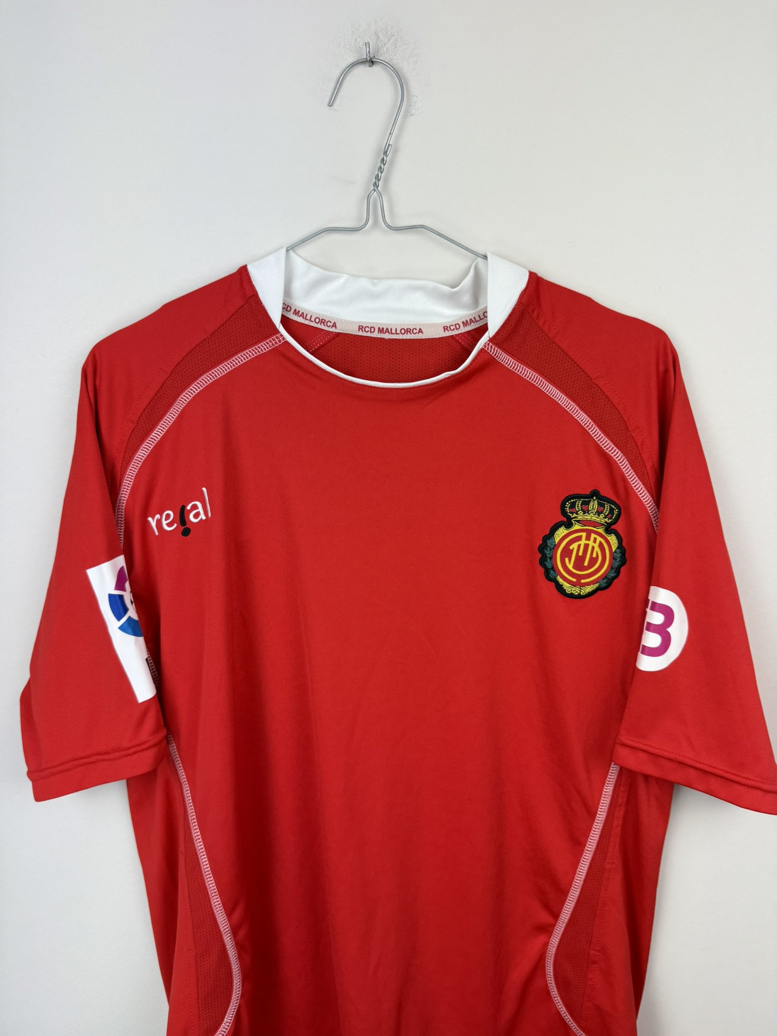 Oryginalna, domowa koszulka piłkarska hiszpańskiego klubu RCD Mallorca, który siedzibę ma właśnie w stolicy Balearów. Produkcja firmy Real, sezon 2009/10.