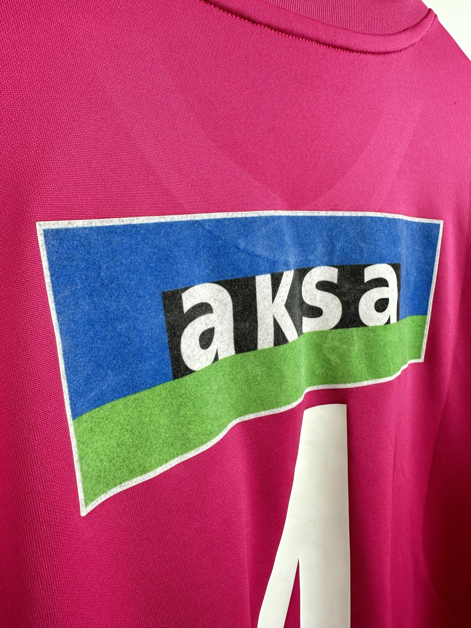 Stan: Zadowalający – koszulka ma czarne zabrudzenie spowodowane prawdopodobnie przypaleniem oraz dwa niewielkie zaciągnięcia na dolnym froncie.