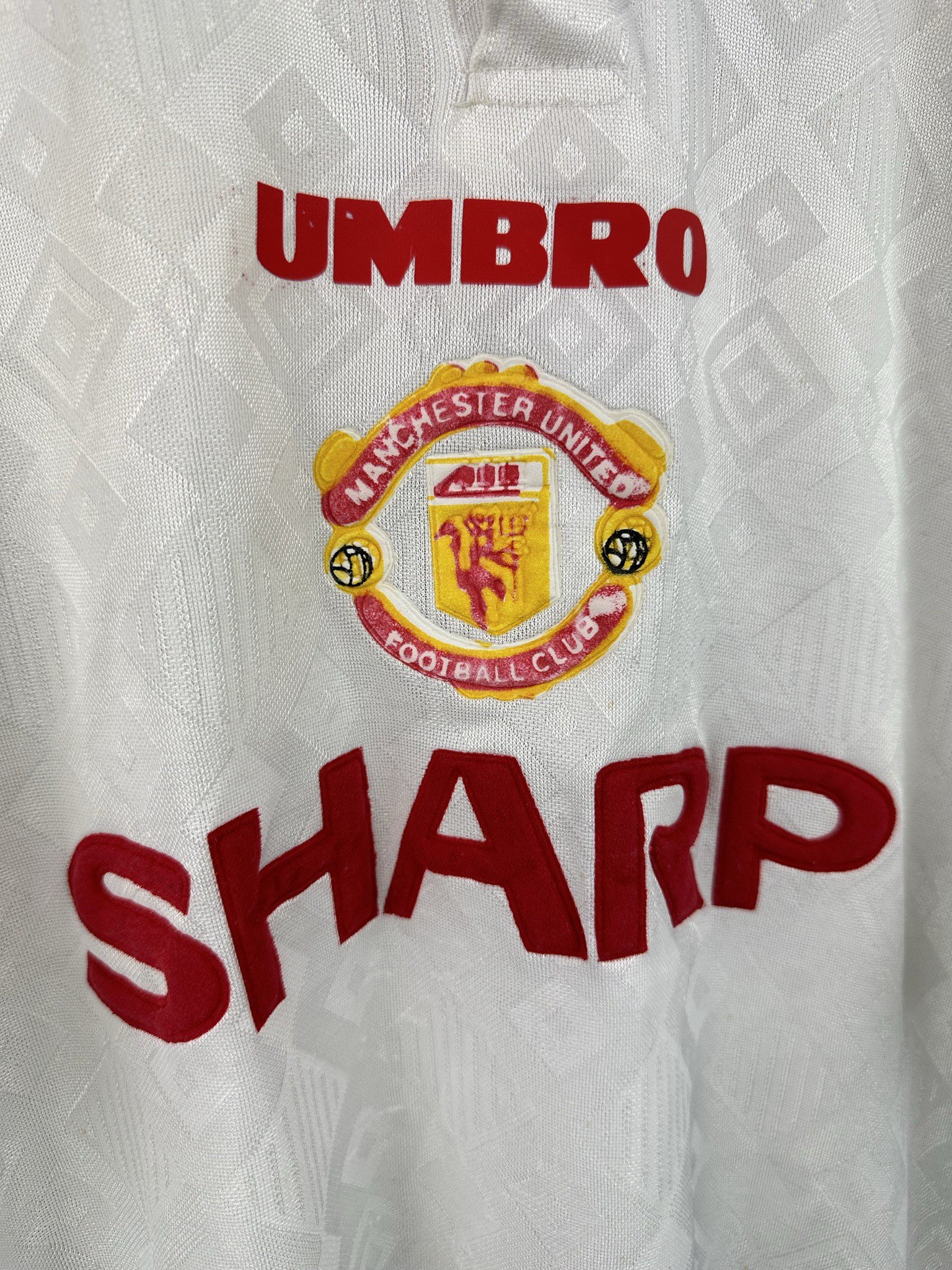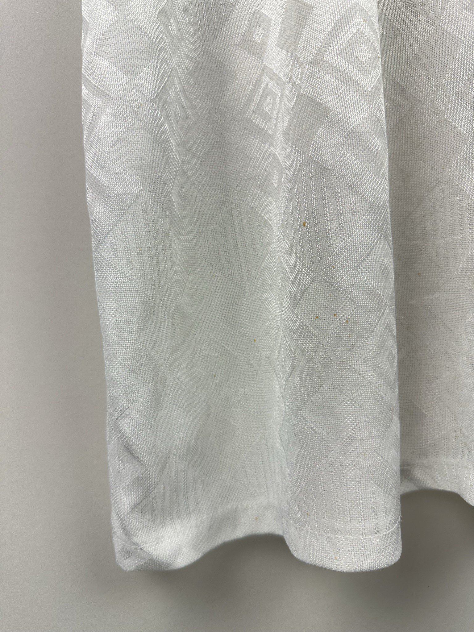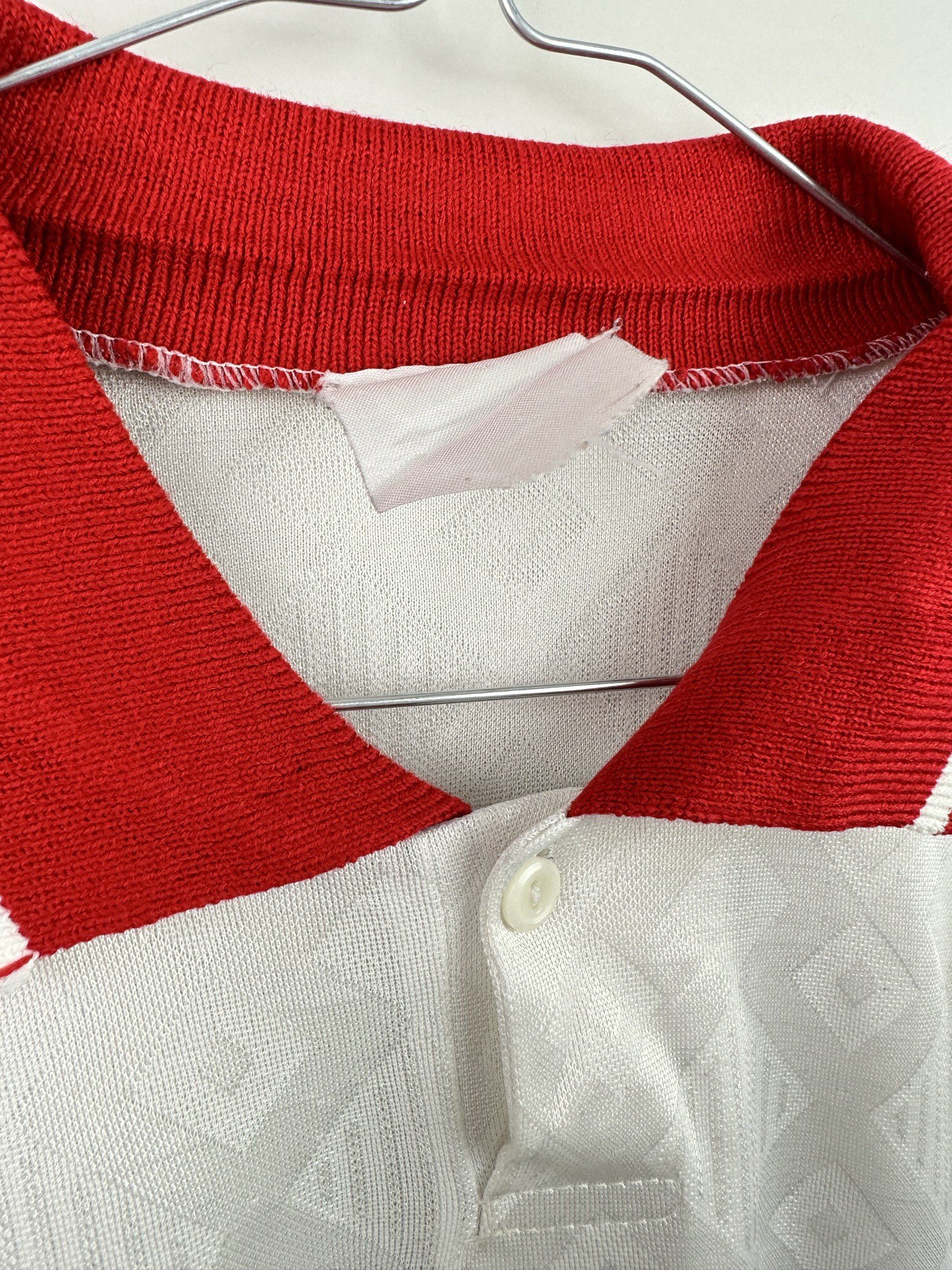 Stan: Zadowalający – przetarcie na herbie klubu, sporo mikro zabrudzeń, oraz uszkodzenie wokół i na napisie 'Umbro’