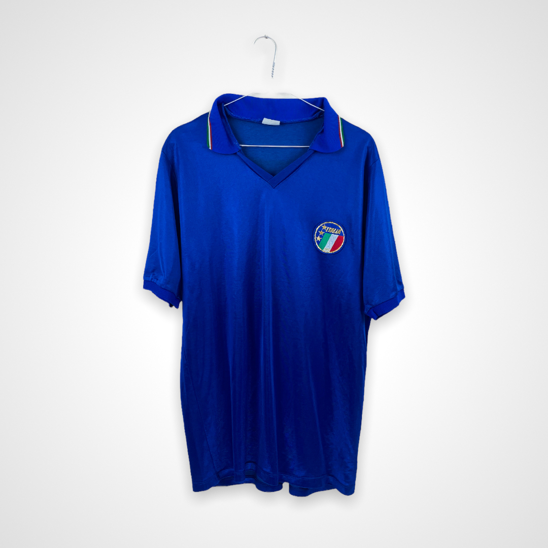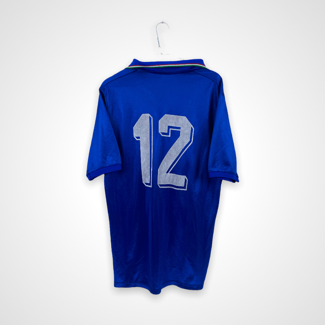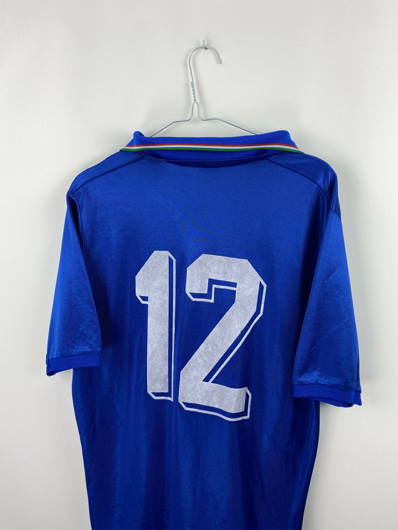 Dodatkowe informacje: Z numerem 12 występował wtedy Stefano Tacconi, czyli bramkarz, a nie zawodnik z pola. Jest to wersja turniejowa koszulki, w której nie jest widoczne logo producenta.