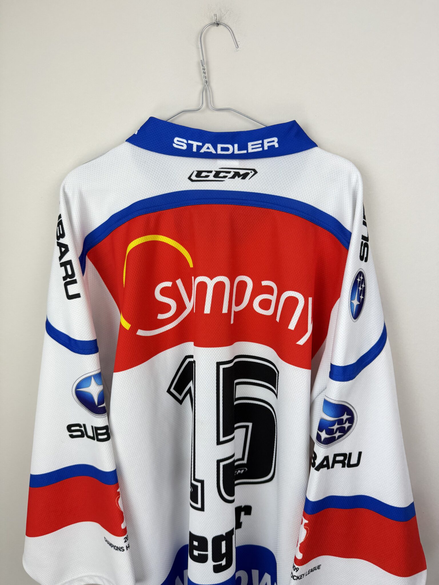 Egzemplarz posiada oficjalny nadruk Mathiasa Segera wraz z numerem 15 na plecach. Seger to legenda ZSC Lions oraz całego szwajcarskiego hokeja – wieloletni kapitan drużyny i reprezentacji narodowej, uczestnik wielu mistrzostw świata oraz igrzysk olimpijskich. W sezonie 2011/12 był kluczową postacią w defensywie „Lwów”, wnosząc do zespołu doświadczenie, siłę i pewność w grze w tyłach.
